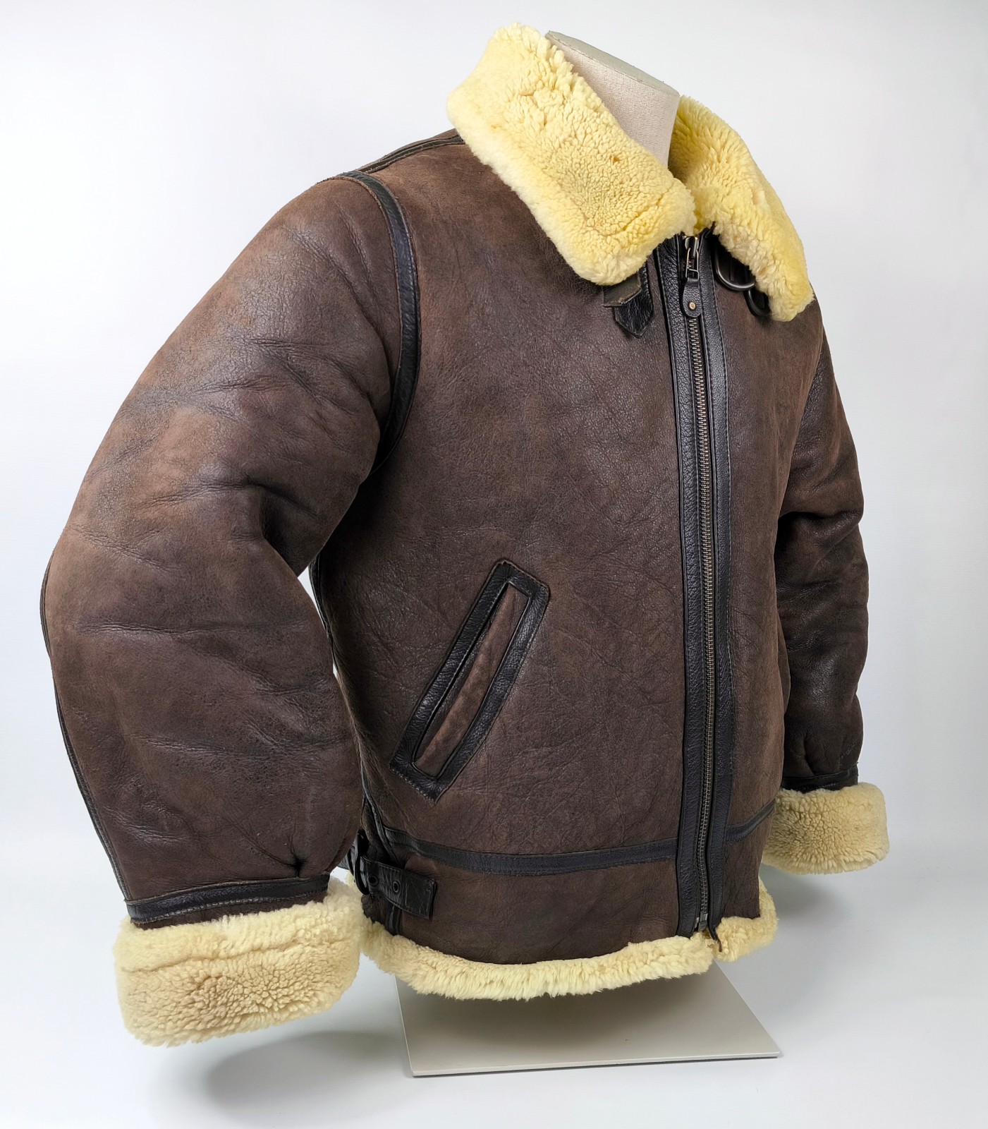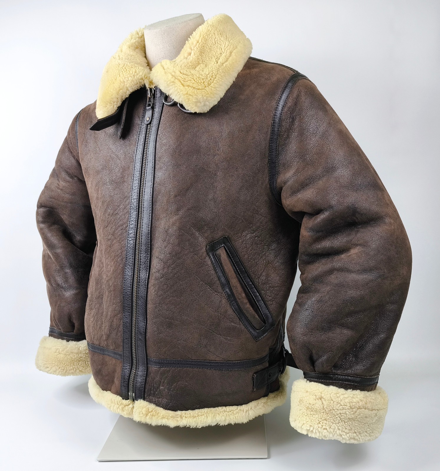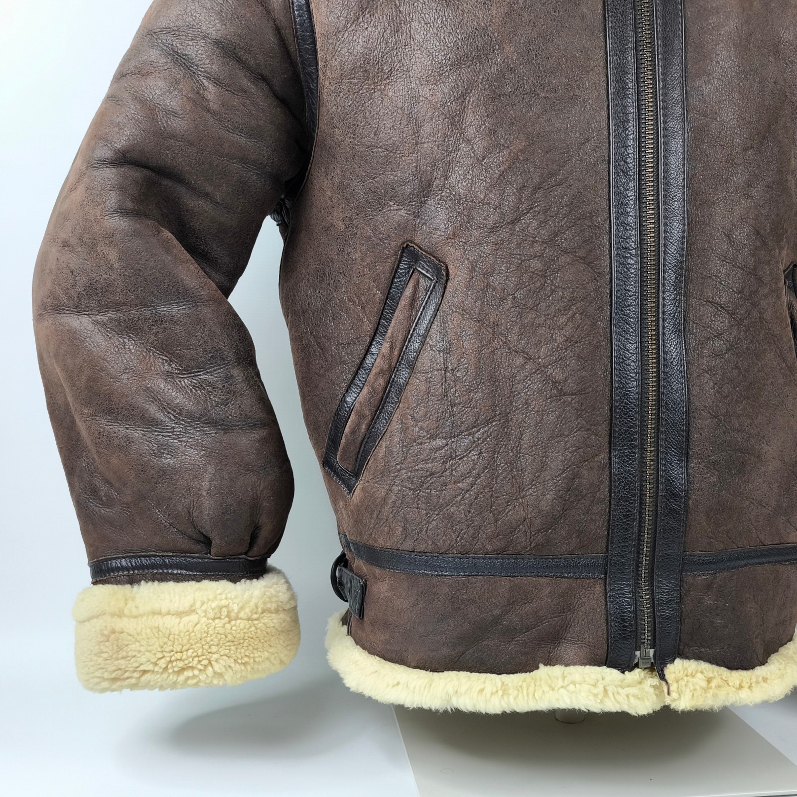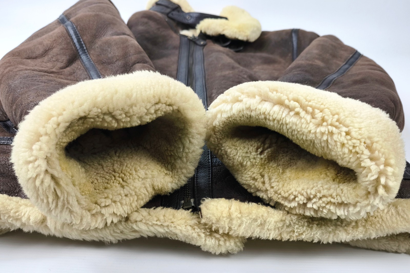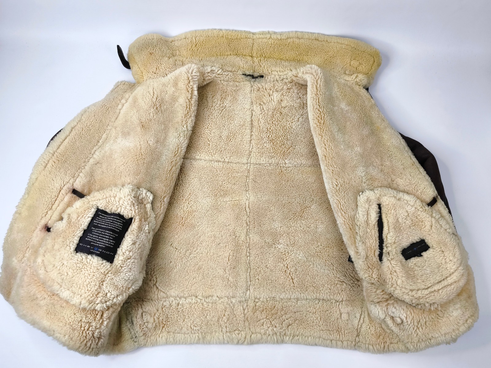 "Chevignon Lederjacke Lammfell braun Gr. XL (L) New Navy Flying Wear"