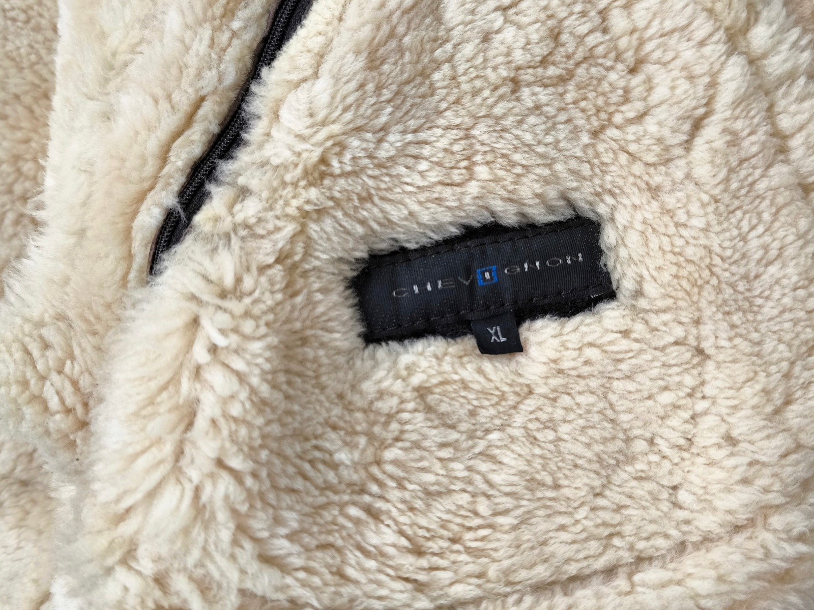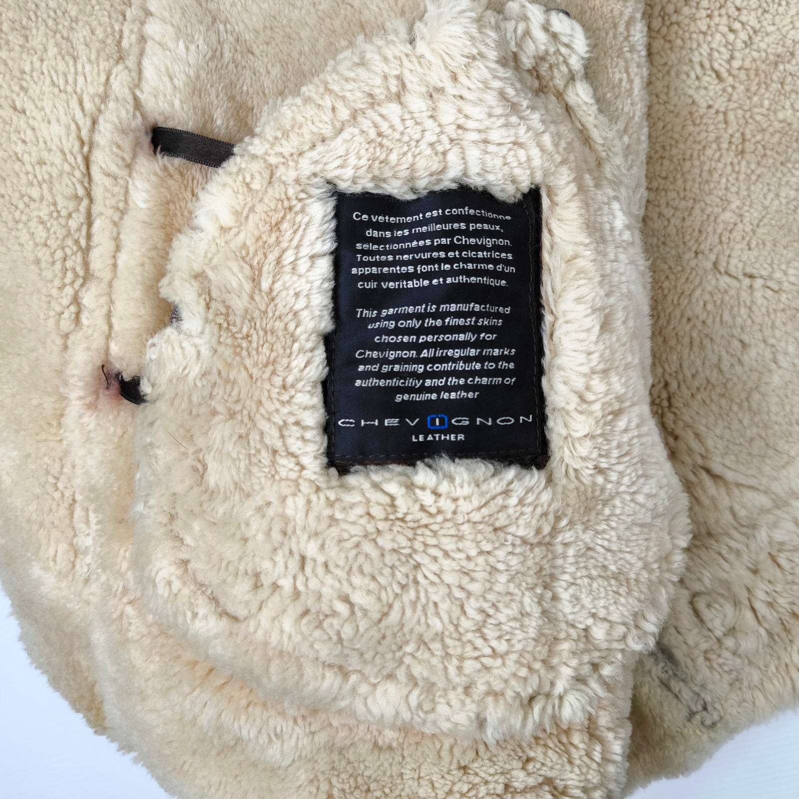 ________________________________________Marke: ChevignonModell: BoumeGröße: XXL (XL)Farbe: naturfaben Zustand: ausgezeichnet_______________________________________Beschreibung:Die Jacke befindet sich in einem ausgezeichneten Zustand. Es sind nur minimalste und nahezu nicht sichtbare Tragespuren zu erkennen.Außen sowie Innen !Reißverschlüsse und Druckknöpfe an den Taschen funktionieren tadellos.Lammfell Einsätze im Brustbereich, an den Ärmelenden und dem unteren Rücken.Braune Ledereinsätze im vorderen Bereich.Eine sehr schöne Materialkombination aus Lammfell, echtem Leder und Baumwolle.Tadelloser Zustand einer tollen Jacke !In der Jacke ist die Größe XXL angegeben. Im Vergleich mit anderen Chevignon Jacken von uns fällt sie etwas kleiner und tendiert ganz leicht zu einer Größe XL. Bitte die Maße beachten für eine perfekte Passform. _______________________________________Die ca. Maße sind wie folgt:Brustbreite von Achsel zu Achsel: 69cmÄrmellänge ab Höhe Schulter: 74cmRückenlänge inkl. Kragen und Bund: 78cm_______________________________________Material lt. Etikett:Oberstoff: 100% Leder (Lamm / Rind) / BaumwolleFutter+Füllung: 100% Polyester_______________________________________Pflegeanleitung:professionelle Textilreinigung