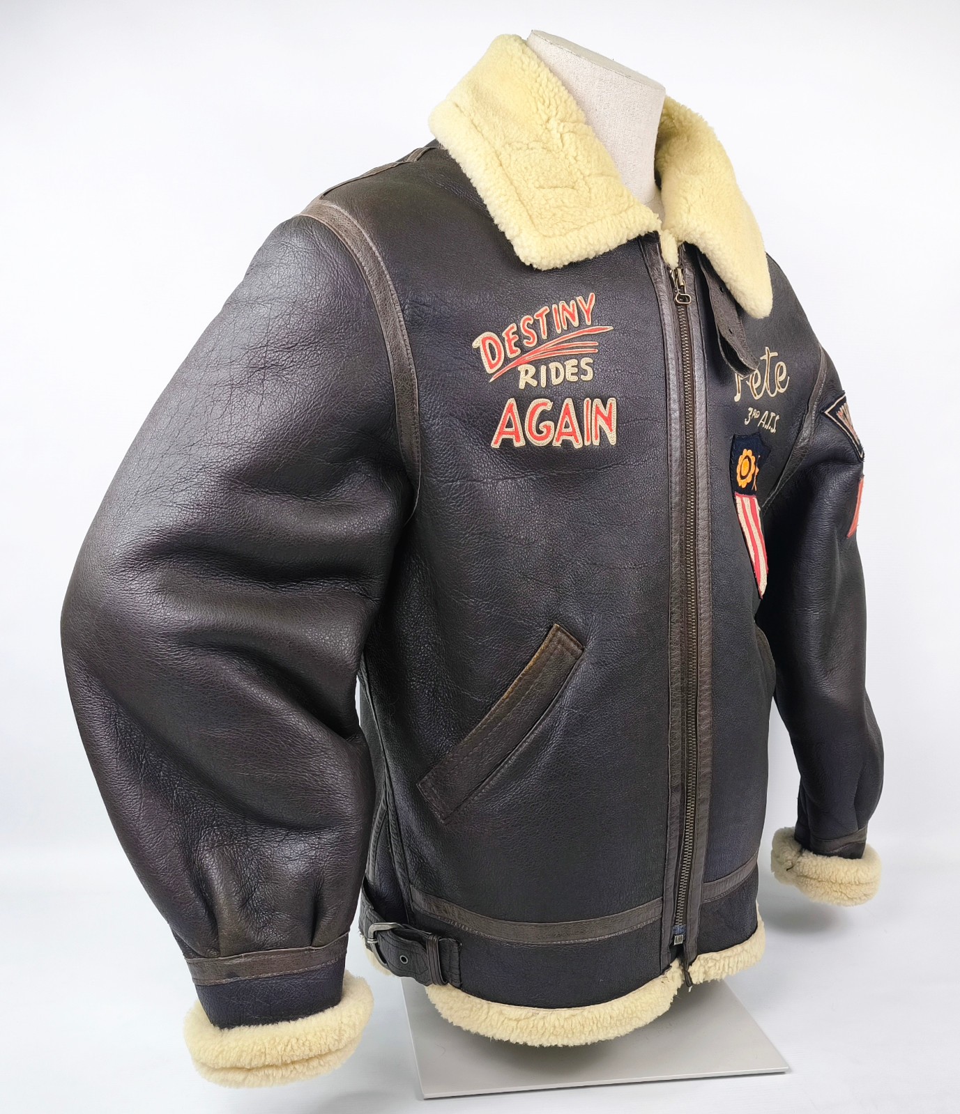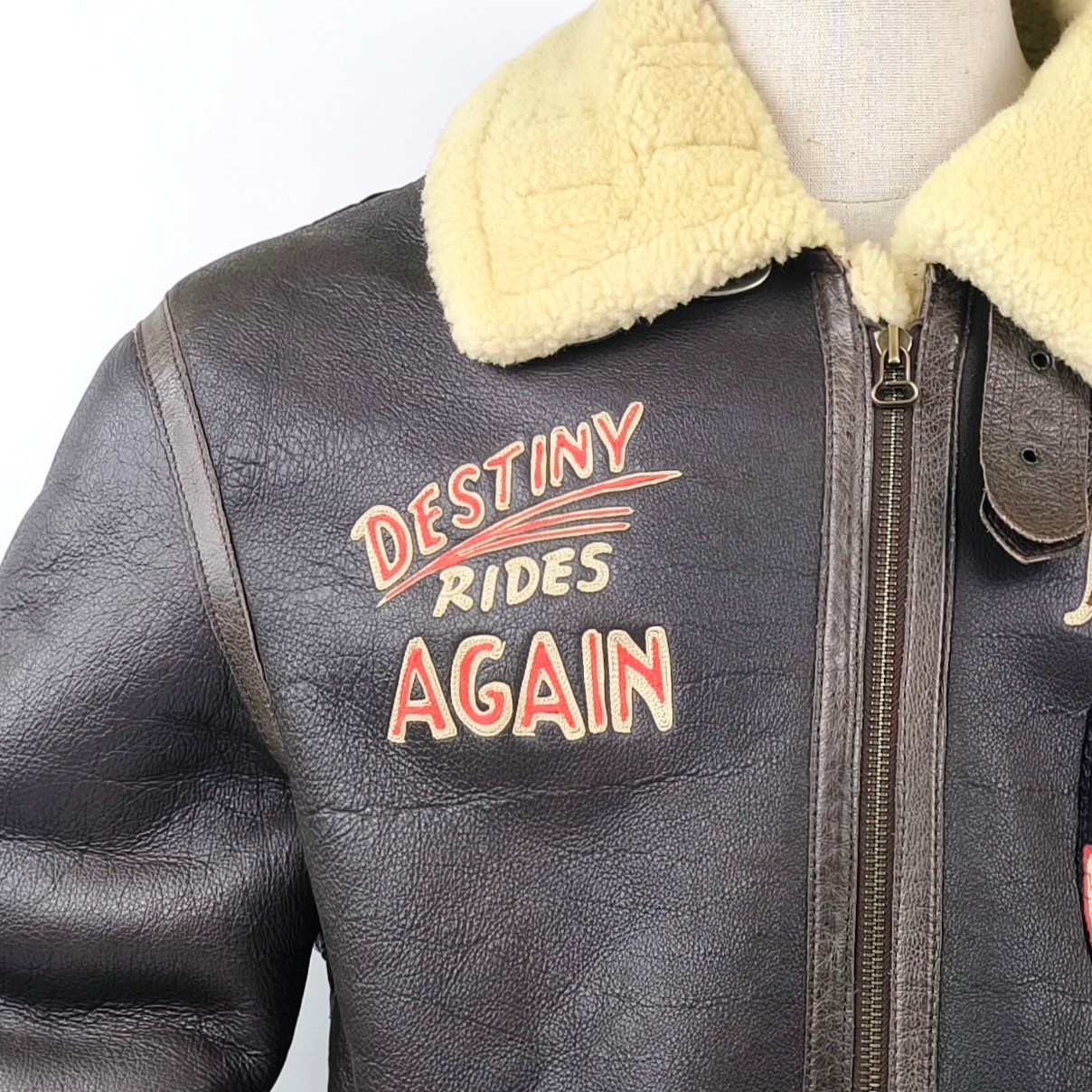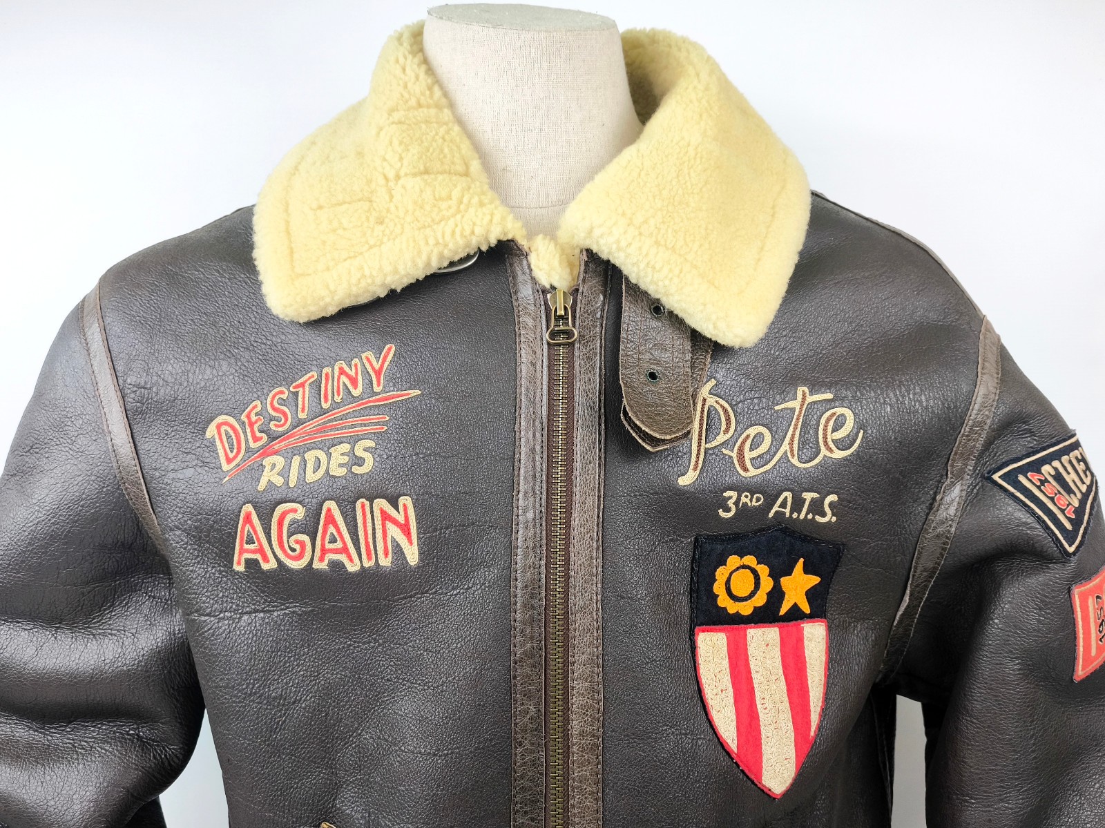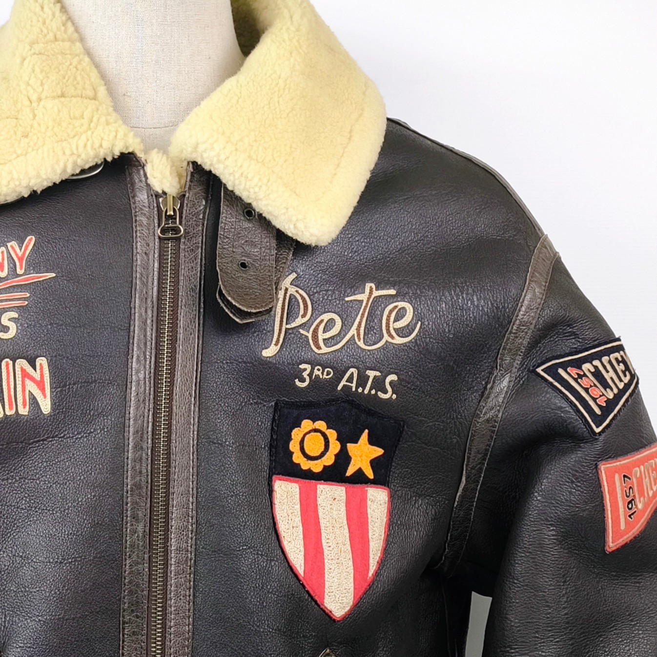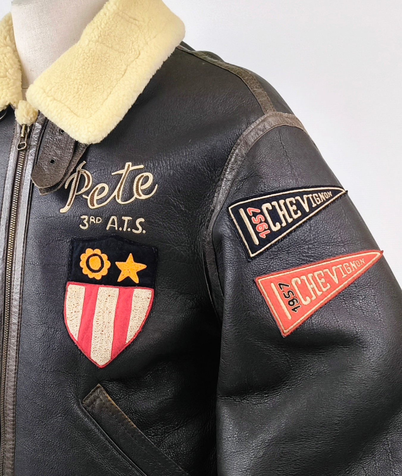 "Chevignon Lederjacke Lammfell braun Gr. XL Pete 3rd A.T.S. Flying Wear 90s"