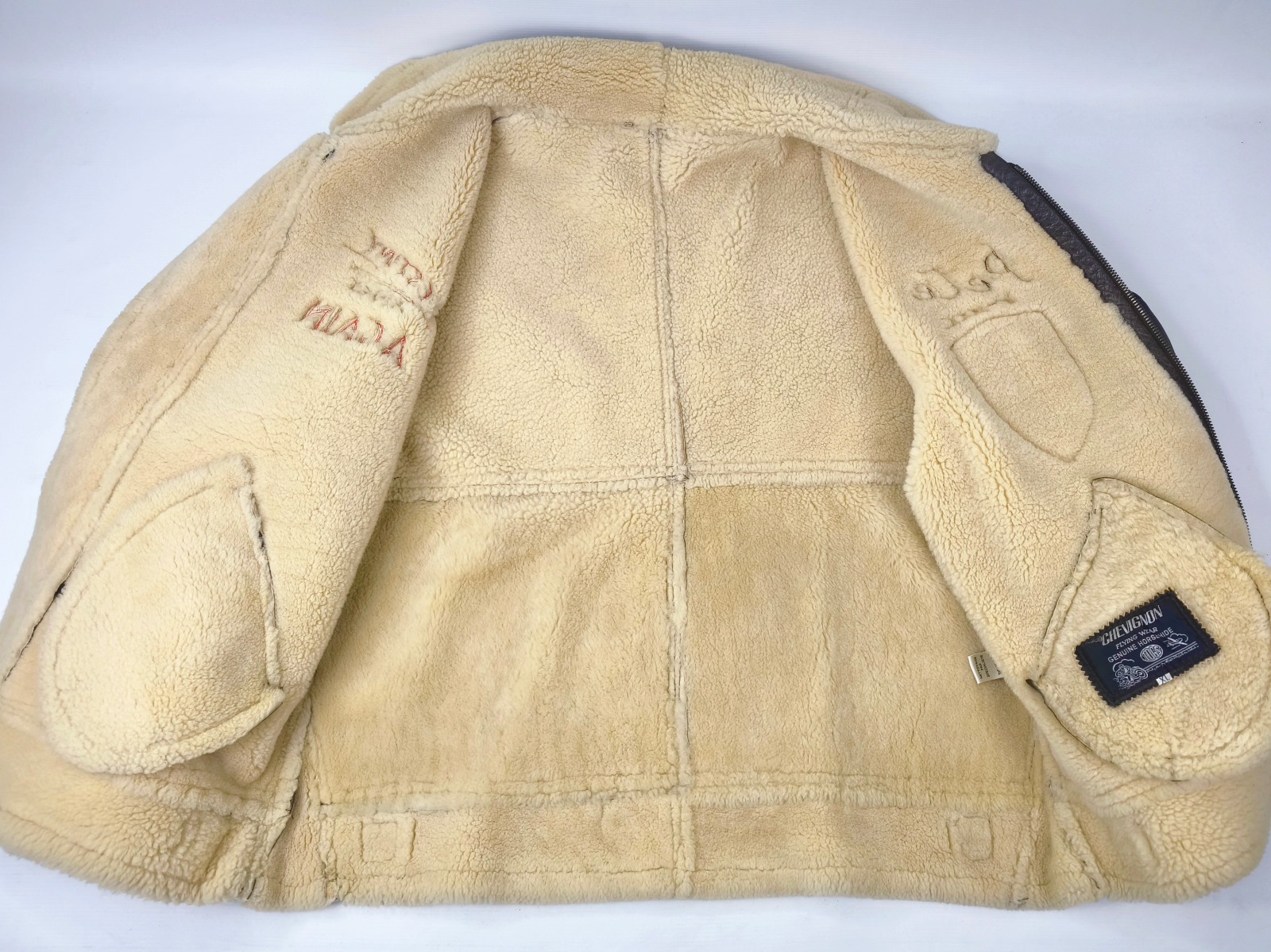 Chevignon Lederjacke Lammfell braun Gr. XL Pete 3rd A.T.S. Flying Wear 90s