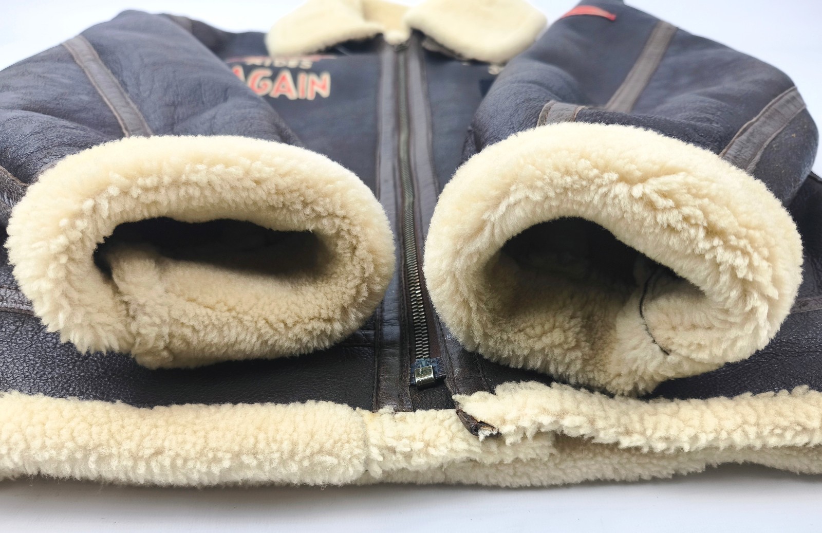Preisvorschlag für Chevignon Lederjacke Lammfell braun Gr. XL Pete 3rd A.T.S. Flying Wear 90s