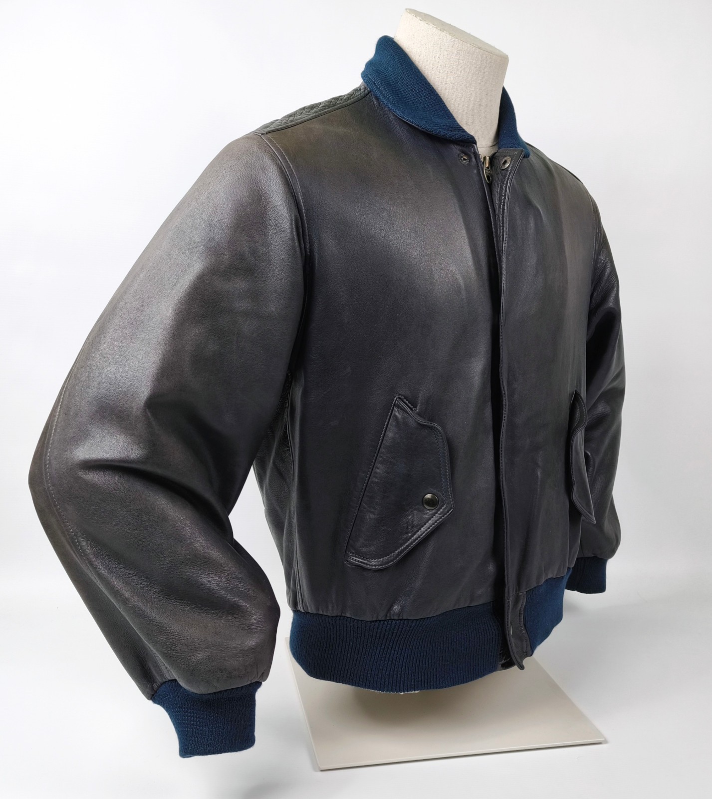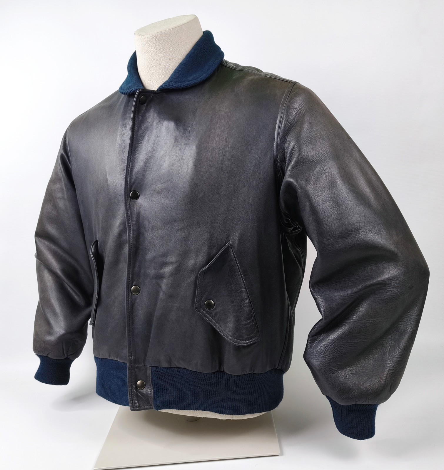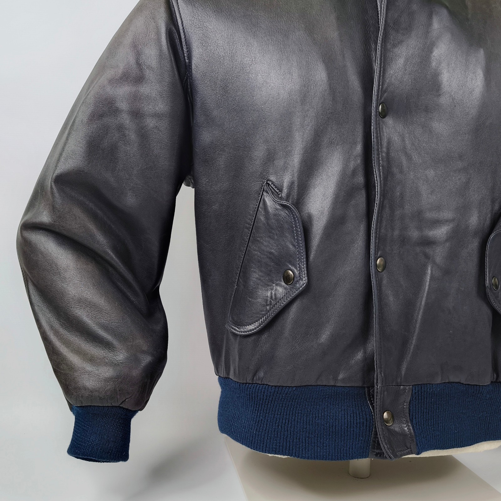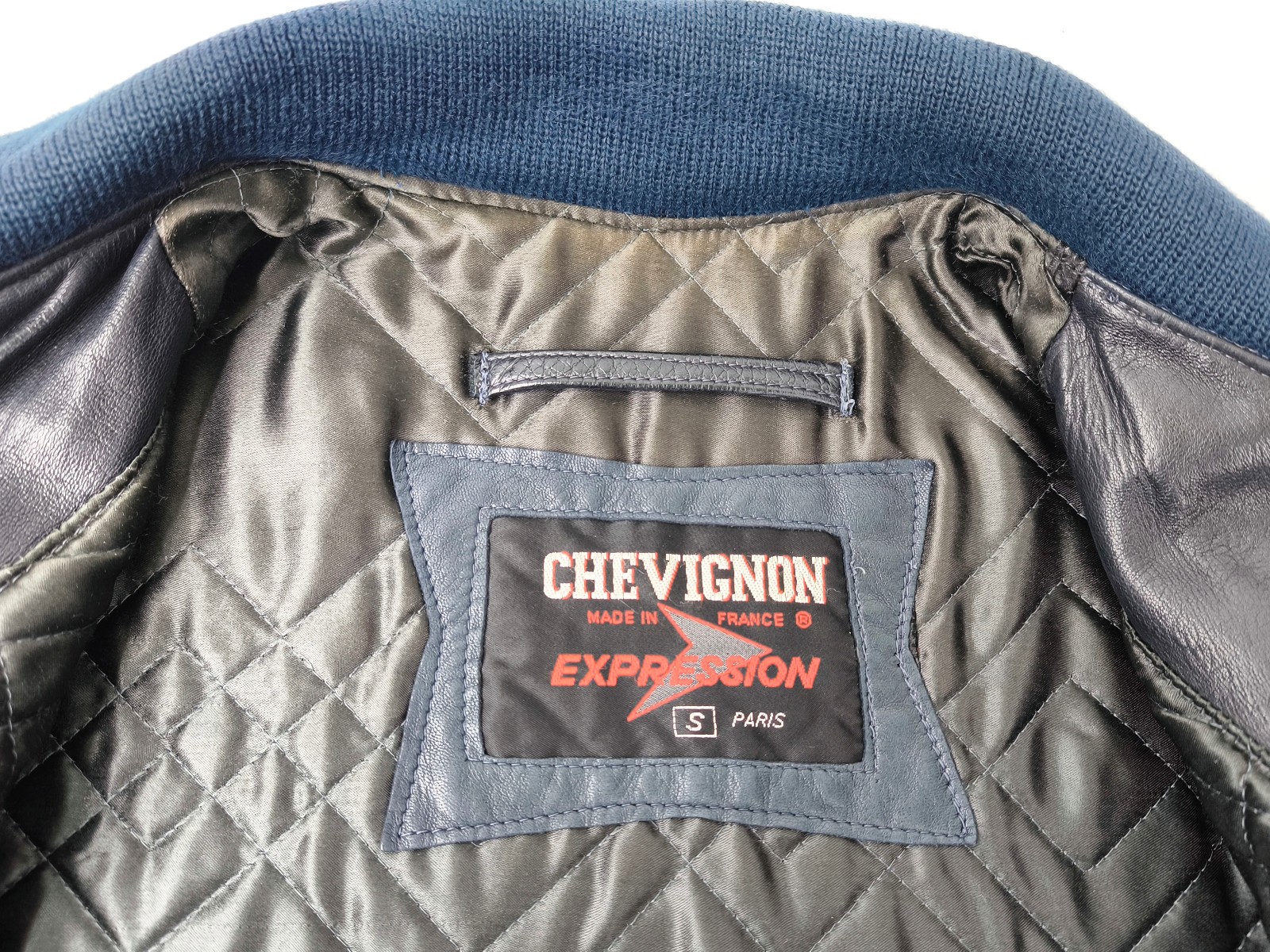 ________________________________________Marke: ChevignonFarbe: dunkelblauGröße: M Zustand: getragen_______________________________________Beschreibung:Die Jacke wurde getragen und befindet sich in einem sehr schönen Zustand. Es sind nur wenige und dann kleine Trage- und Gebrauchsspuren zu erkennen.Außen mit wenigen und kleinen Trage- und Gebrauchsspuren und super gut erhalten.Innenfutter im sehr guten Zustand.Ebenfalls die Bündchen, ganz leichte Trage- und Gebrauchsspuren und super gut erhalten.Reißverschluß funktioniert tadellos. Zwei Außen- und eine Innentasche.Lammfell / Lammleder im Kragenbereich.Lederabsetzung in schwarz an den Schultern und den Außentaschen mit wunderschöner leichter Patina.Typisch der Schnitte der damaligen Zeit, ist die Jacke im Brustbereich breit und vom Rücken her recht kurz geschnitten.Die Größe ist keine Größe zu finden. Im Vergleich mit anderen Chevignon Jacken von uns, fällt sie wie eine Größe M.Bitte die Maße prüfen für eine perfekte Passform._____________________________________Die ca. Maße sind wie folgt:Brustbreite von Achsel zu Achsel: 63cmÄrmellänge ab Höhe Schulter: 68cmRückenlänge inkl. Kragen und Bund: 67cm_______________________________________Material:Außen+Futter / Kragen / Schultern: 100% Nylon - 100% Baumwolle / 100% Lammleder / 100% Leder (Rind)_______________________________________Pflegeanleitung:professionelle Textilreinigung