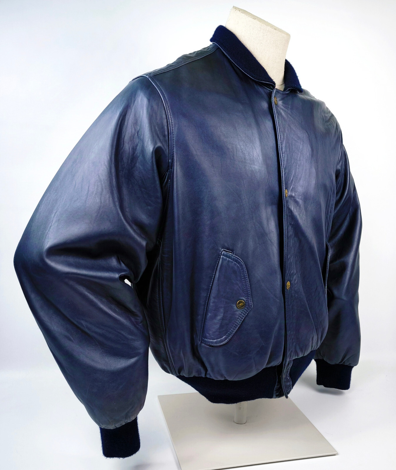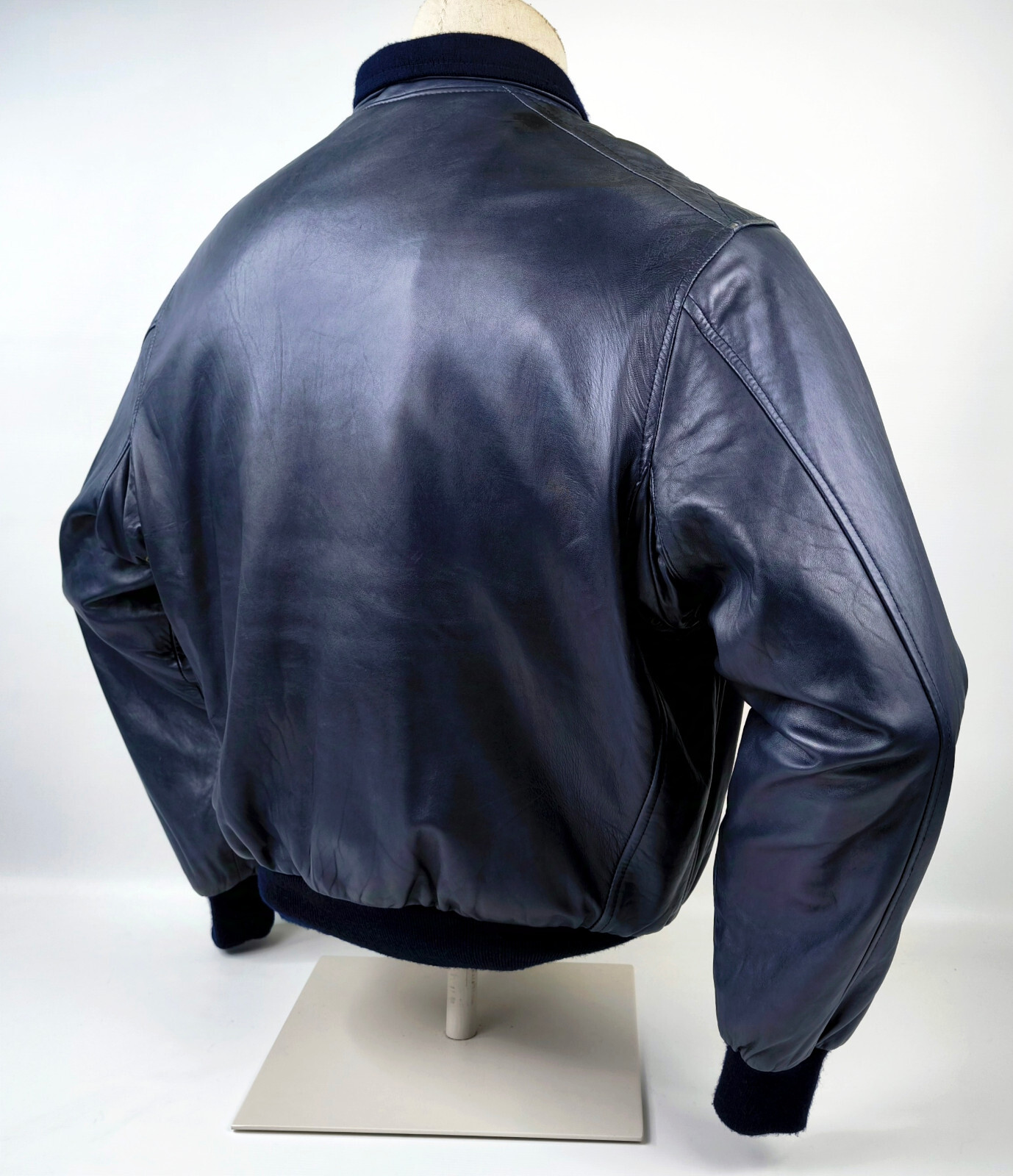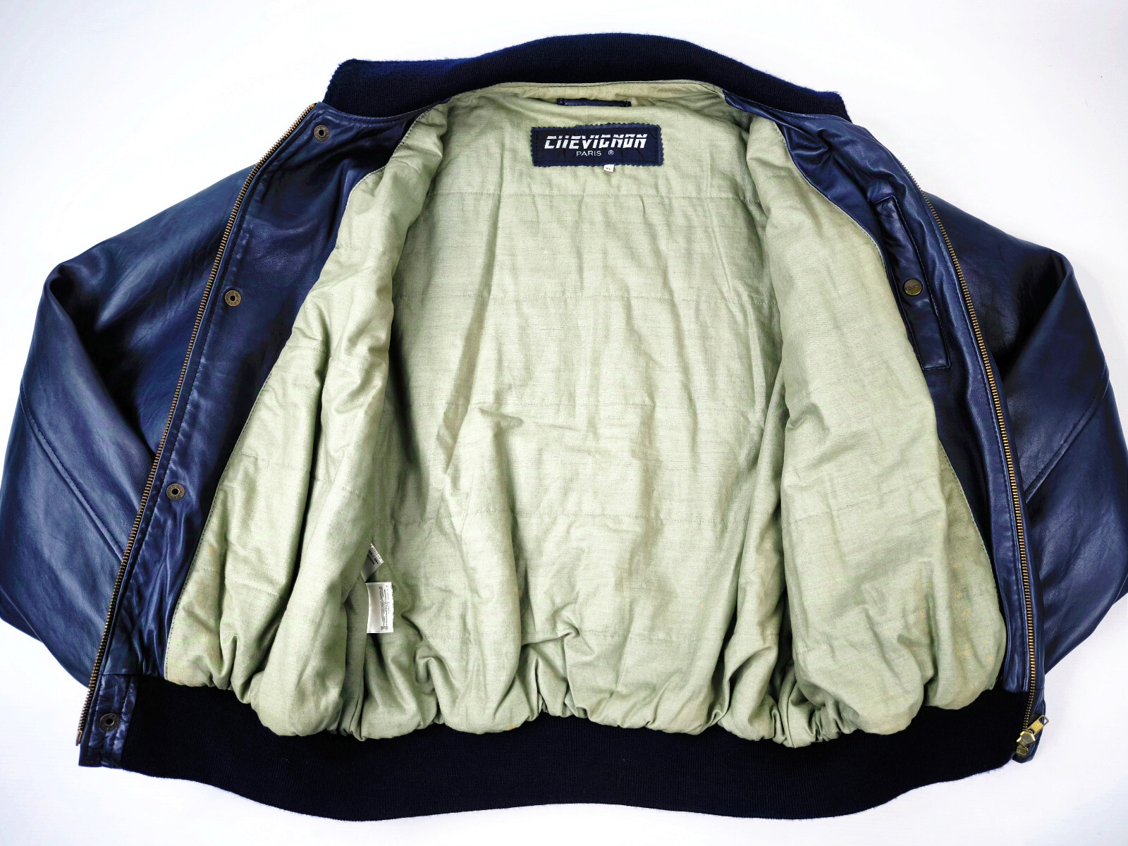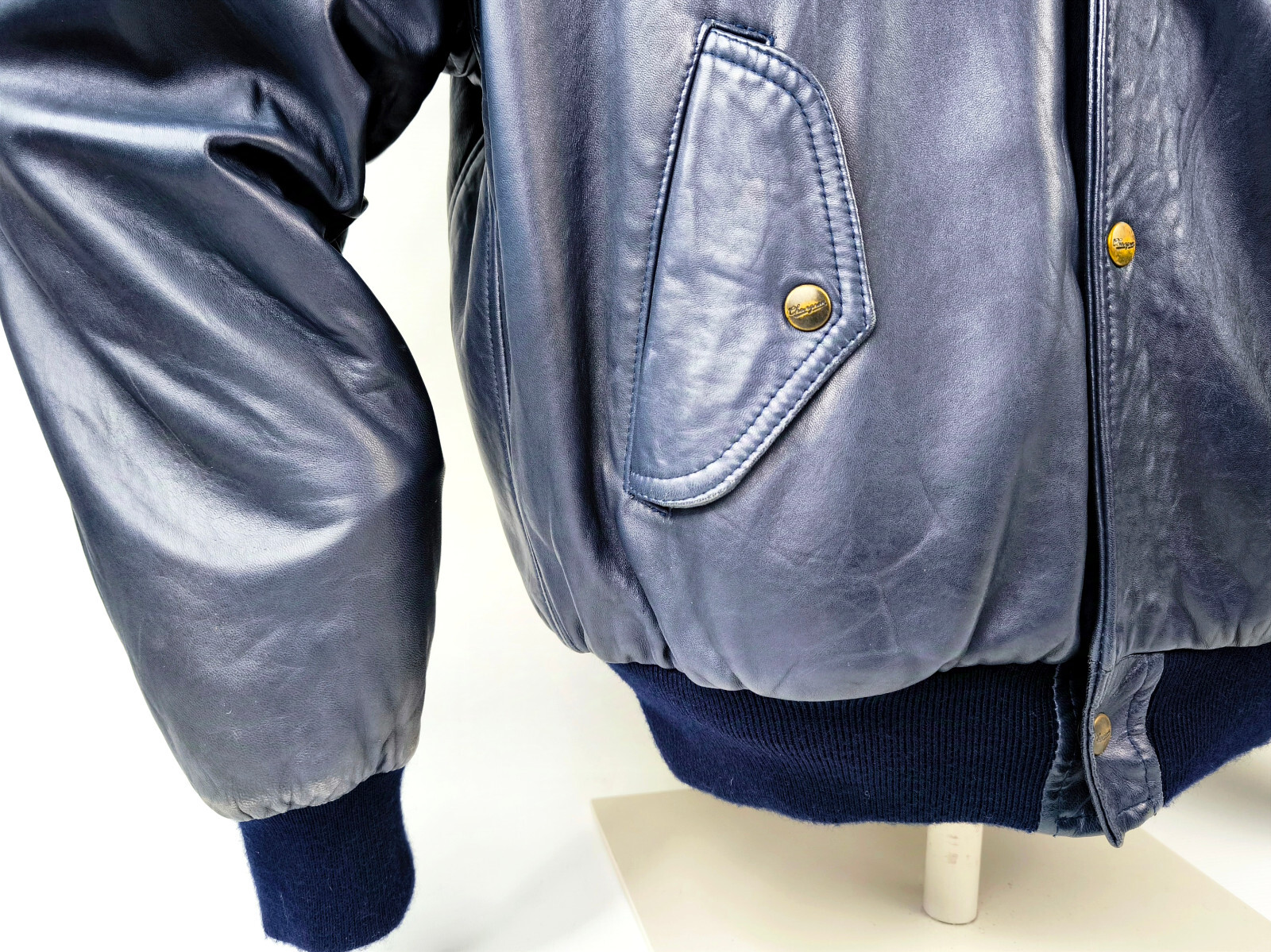 ________________________________________Marke: ChevignonFarbe: dunkelblauGröße: M Zustand: getragen_______________________________________Beschreibung:Die Jacke wurde getragen und befindet sich in einem sehr schönen Zustand. Es sind nur wenige und dann kleine Trage- und Gebrauchsspuren zu erkennen.Außen mit wenigen und kleinen Trage- und Gebrauchsspuren und super gut erhalten.Innenfutter im sehr guten Zustand.Ebenfalls die Bündchen, ganz leichte Trage- und Gebrauchsspuren und super gut erhalten.Reißverschluß funktioniert tadellos. Zwei Außen- und eine Innentasche.Lammfell / Lammleder im Kragenbereich.Lederabsetzung in schwarz an den Schultern und den Außentaschen mit wunderschöner leichter Patina.Typisch der Schnitte der damaligen Zeit, ist die Jacke im Brustbereich breit und vom Rücken her recht kurz geschnitten.Die Größe ist keine Größe zu finden. Im Vergleich mit anderen Chevignon Jacken von uns, fällt sie wie eine Größe M.Bitte die Maße prüfen für eine perfekte Passform._____________________________________Die ca. Maße sind wie folgt:Brustbreite von Achsel zu Achsel: 63cmÄrmellänge ab Höhe Schulter: 68cmRückenlänge inkl. Kragen und Bund: 67cm_______________________________________Material:Außen+Futter / Kragen / Schultern: 100% Nylon - 100% Baumwolle / 100% Lammleder / 100% Leder (Rind)_______________________________________Pflegeanleitung:professionelle Textilreinigung