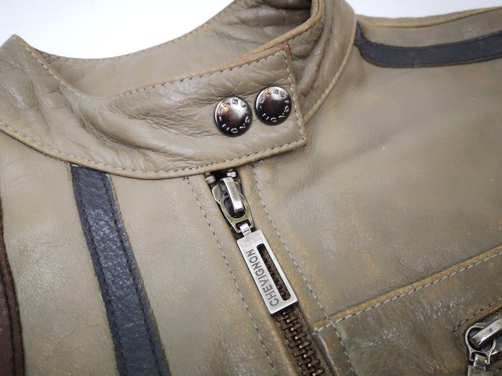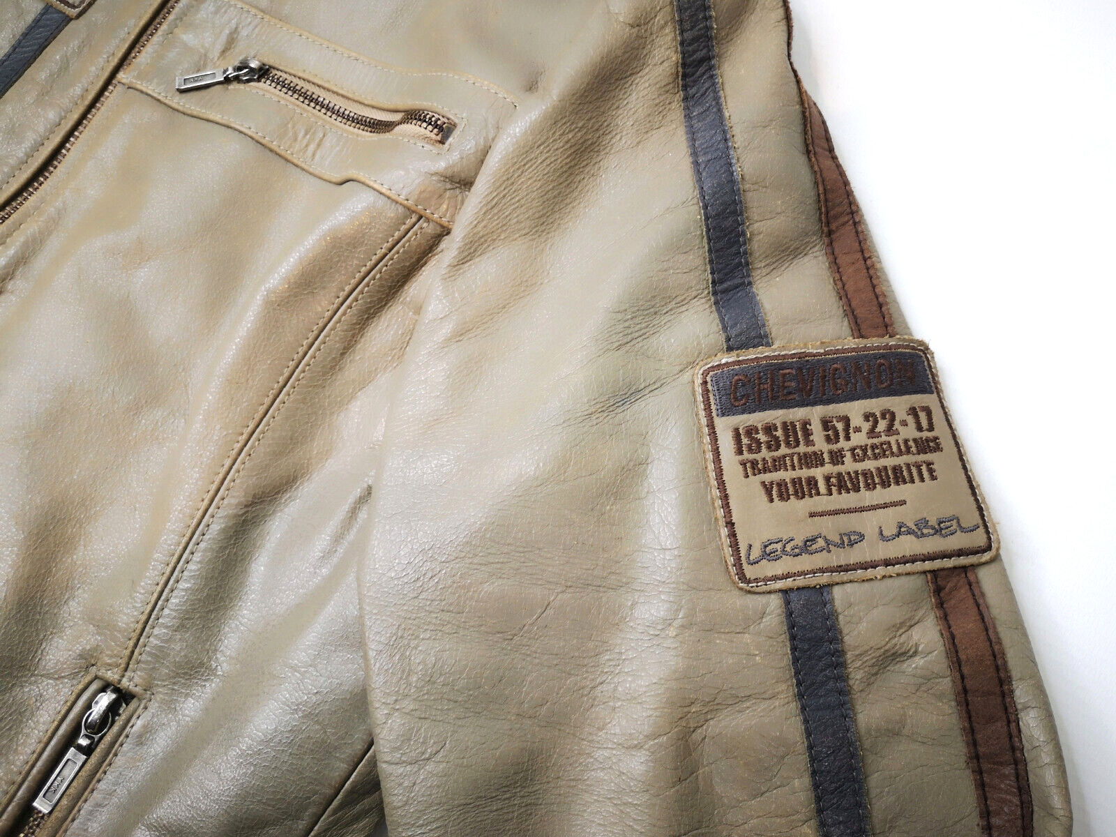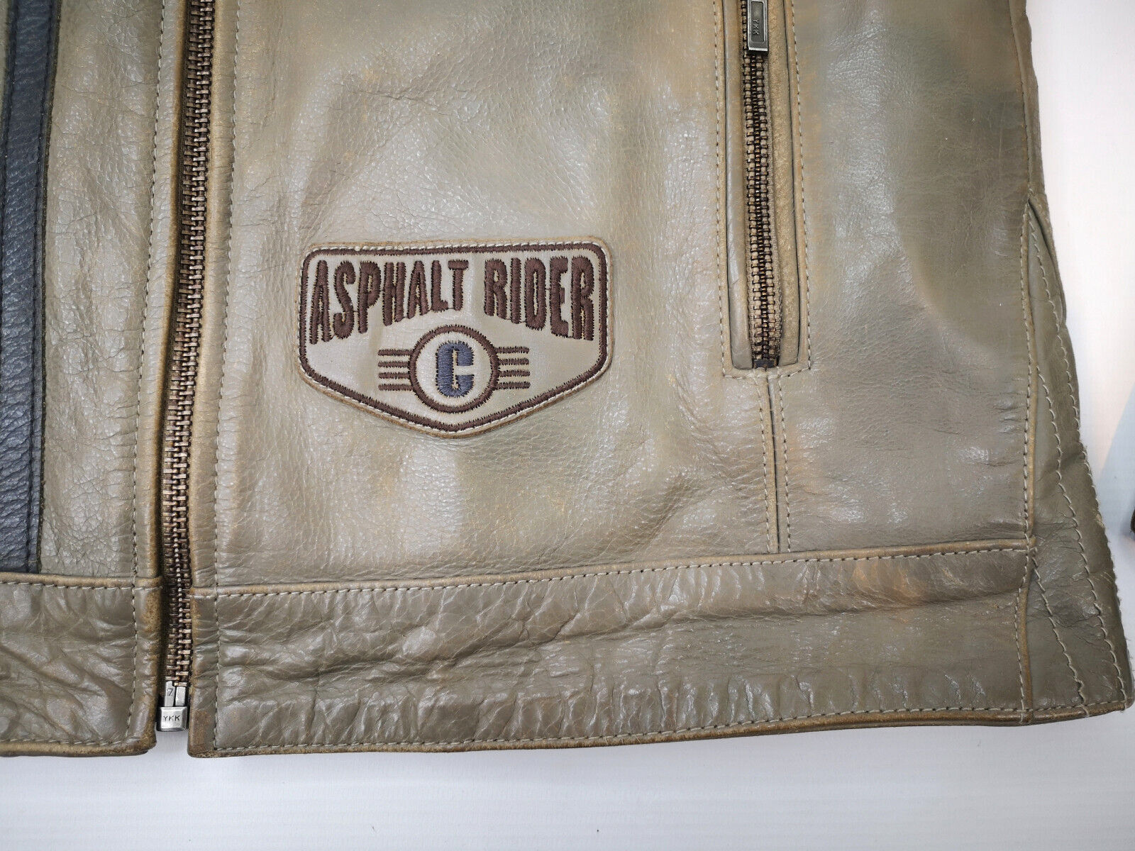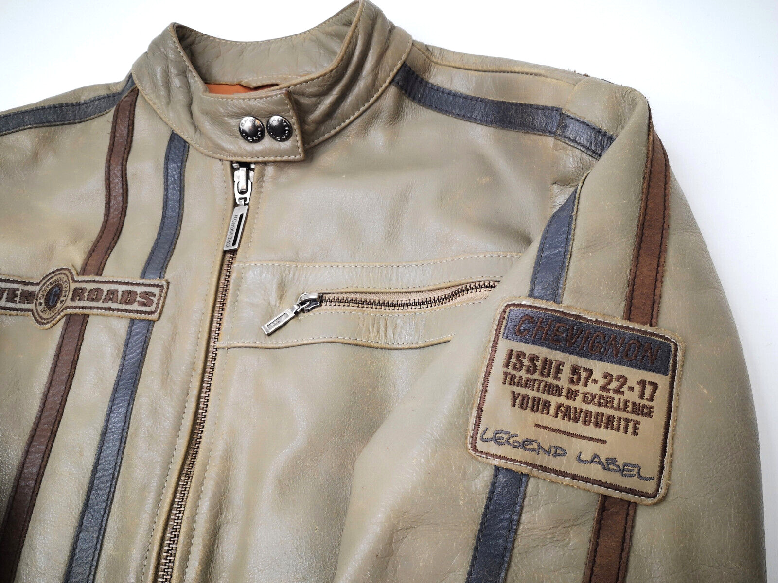 "Chevignon Lederjacke Seven Roads Asphalt Rider graugrün Gr. S/M Biker"