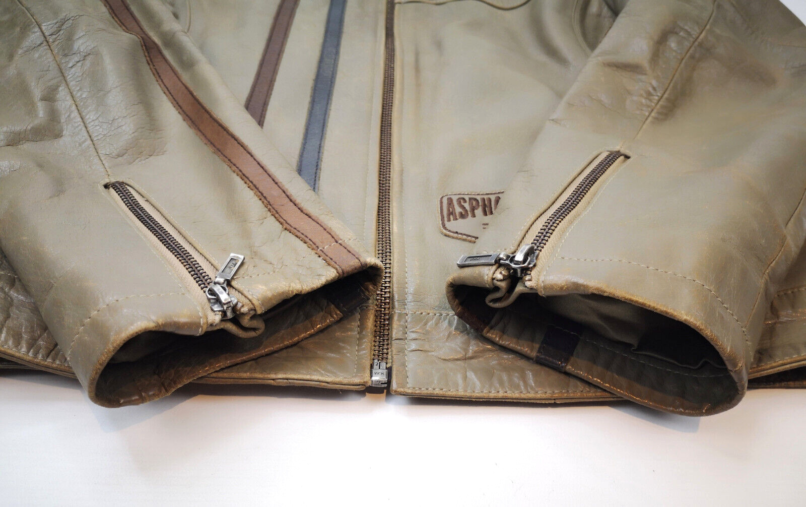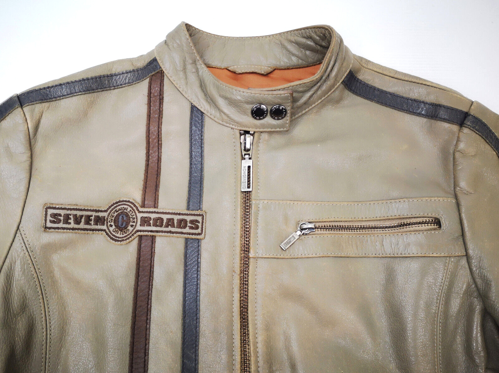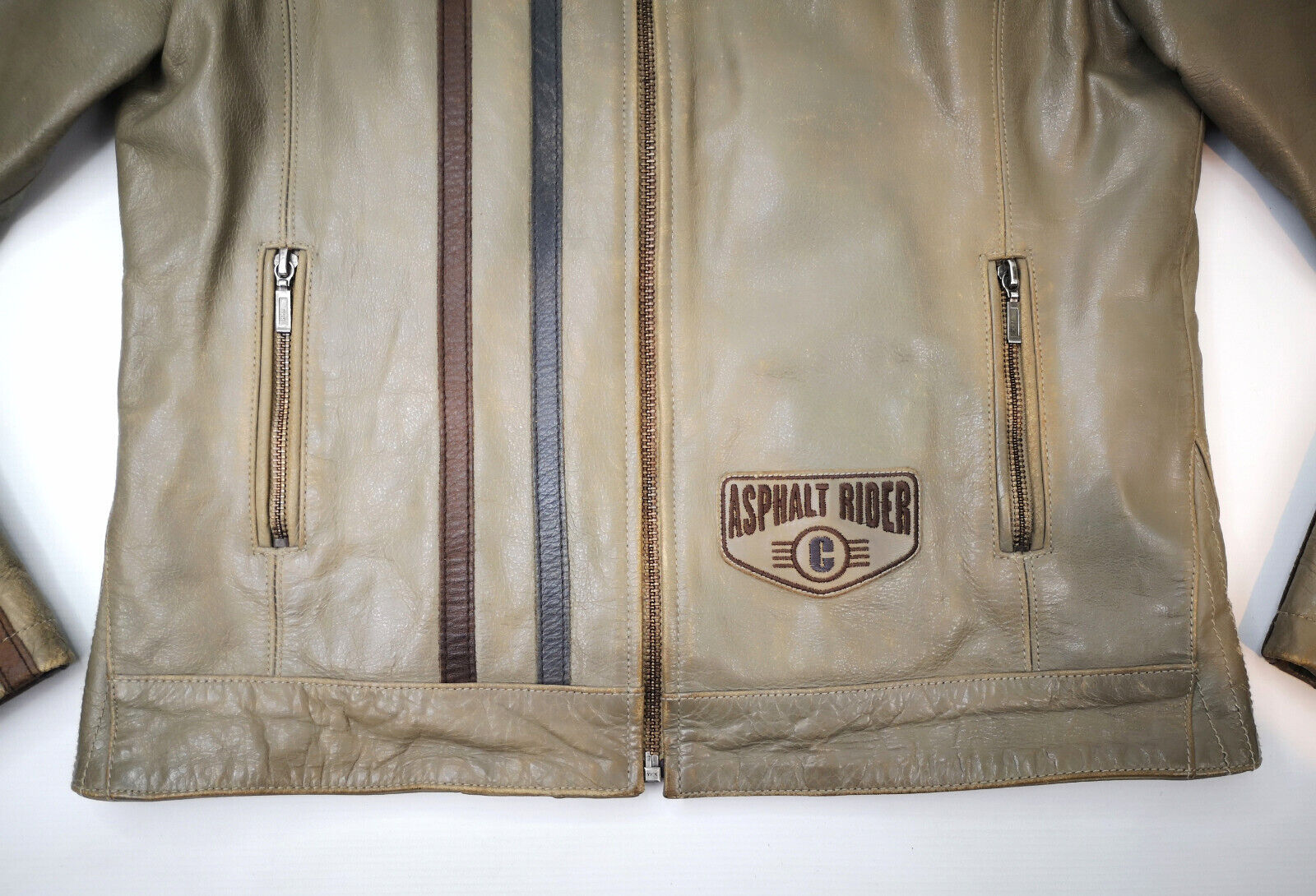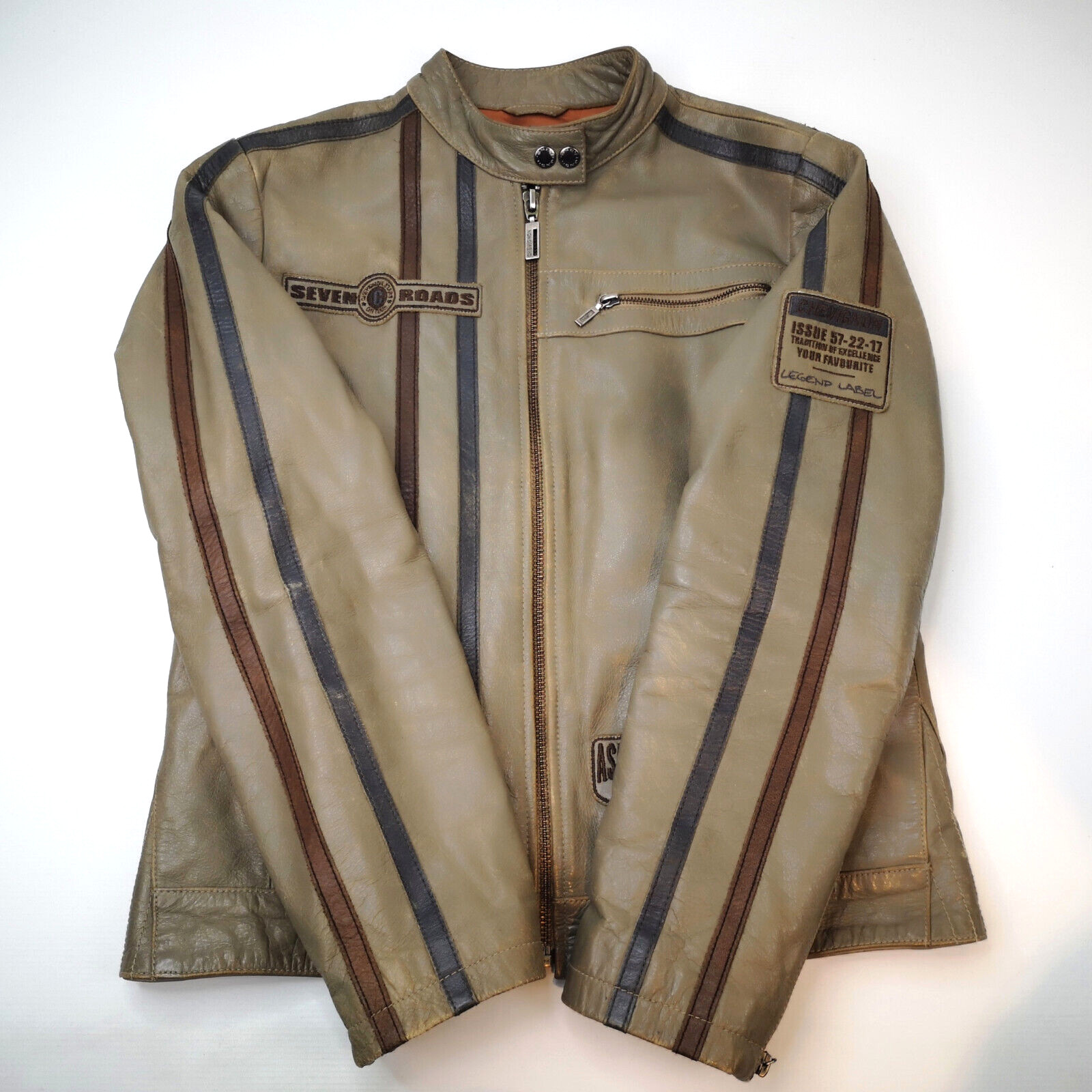 "Chevignon Lederjacke Seven Roads Asphalt Rider graugrün Gr. S/M Biker"