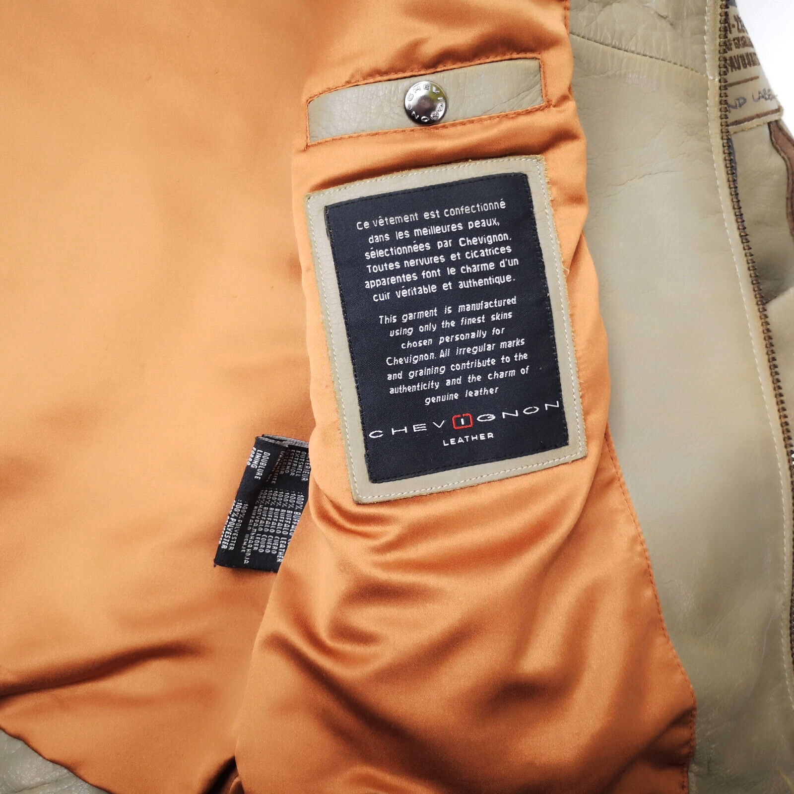 ________________________________________Marke: ChevignonModell: BarronarGröße: XL (L)Farbe: schwarz Zustand: sehr gut_______________________________________Beschreibung:Die Jacke befindet sich in einem sehr guten Zustand. Es sind nur wenige und dann sehr kleine Tragespuren zu erkennen.Innenfutter mit minimalsten Tragespuren und sehr gut erhalten.Leder außen mit ganz leichter Patina, antik (light used) hergestellt und sehr gut im Zustand.Breitenverstellbare Bündchen ebenfalls sehr gut erhalten.Reißverschlüsse und funktionieren tadellos.Sehr robuste Lederjacke aus Büffel-Leder.In der Jacke ist die Größe XL angegeben. Im Vergleich mit anderen Chevignon Jacken von uns fällt sie etwas kleiner und tendiert zu einer Größe XL, da sie auch etwas schmaler geschnitten ist. Bitte die Maße beachten für eine perfekte Passform. _______________________________________Die ca. Maße sind wie folgt:Brustbreite von Achsel zu Achsel: 56cmÄrmellänge ab Höhe Schulter: 70cmRückenlänge inkl. Kragen und Bund: 70cm_______________________________________Material lt. Etikett:Oberstoff: 100% Leder (Büffel-Leder)Futter+Füllung: 100% Polyester_______________________________________Pflegeanleitung:professionelle Lederreinigung