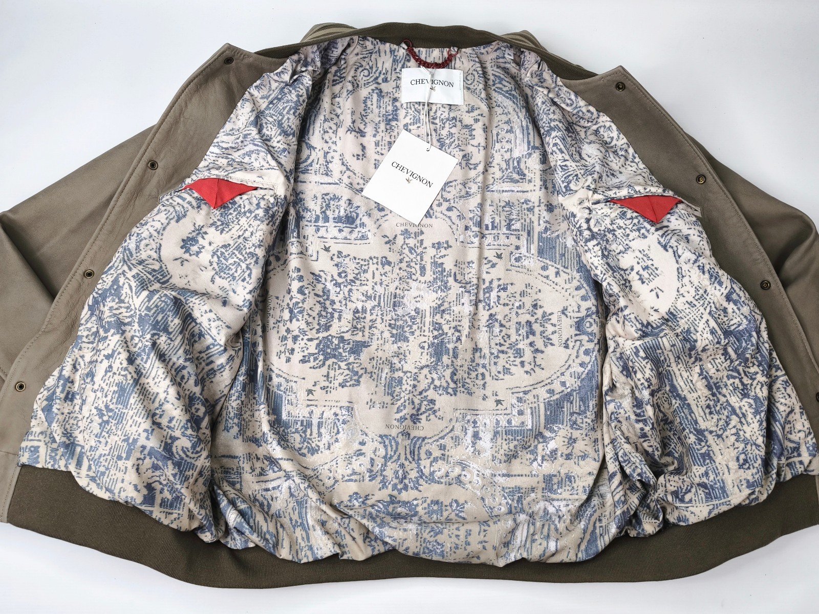 "Chevignon Lederjacke Teddy 90 beige-grau Gr. XXL (XL) großes Rückenlogo NEU"