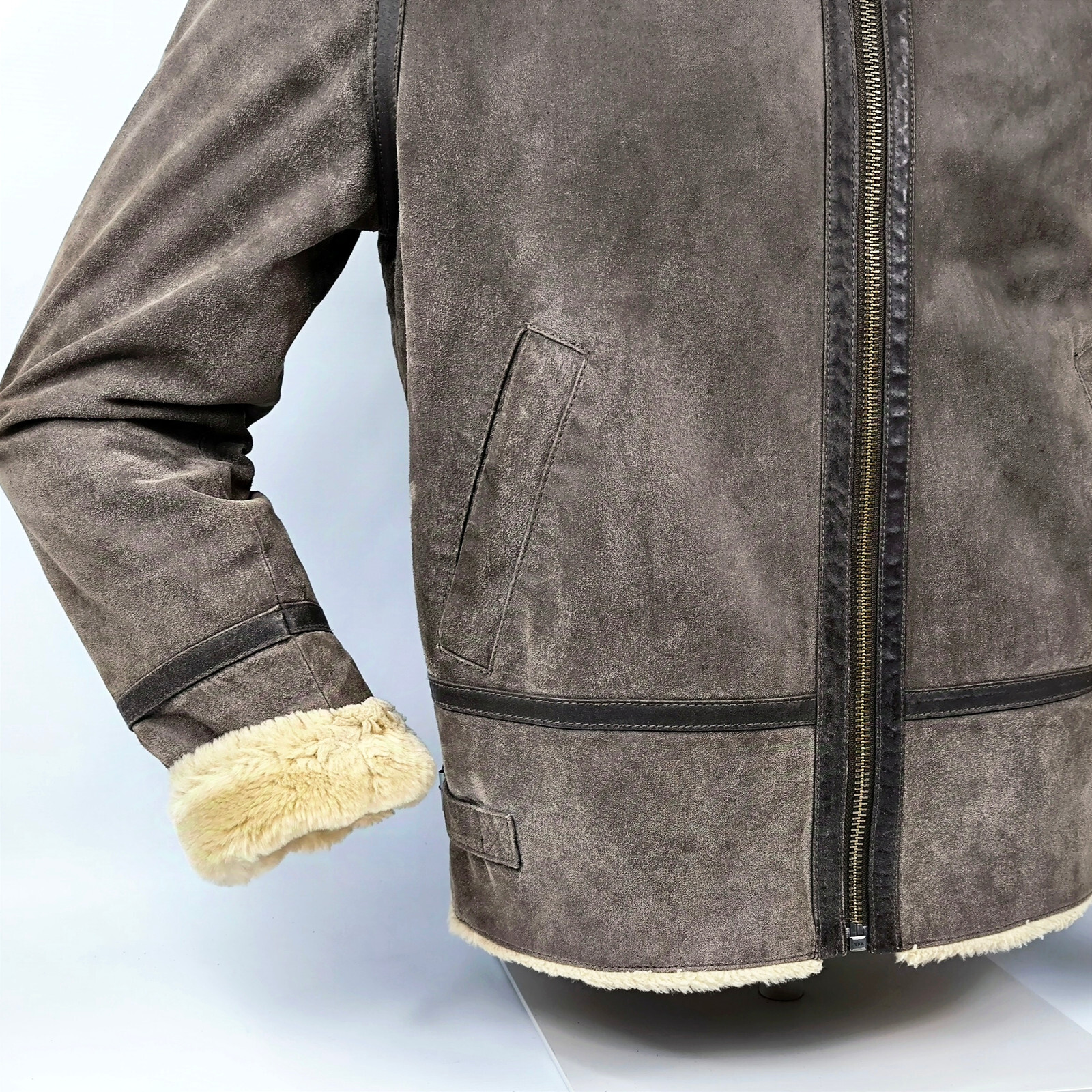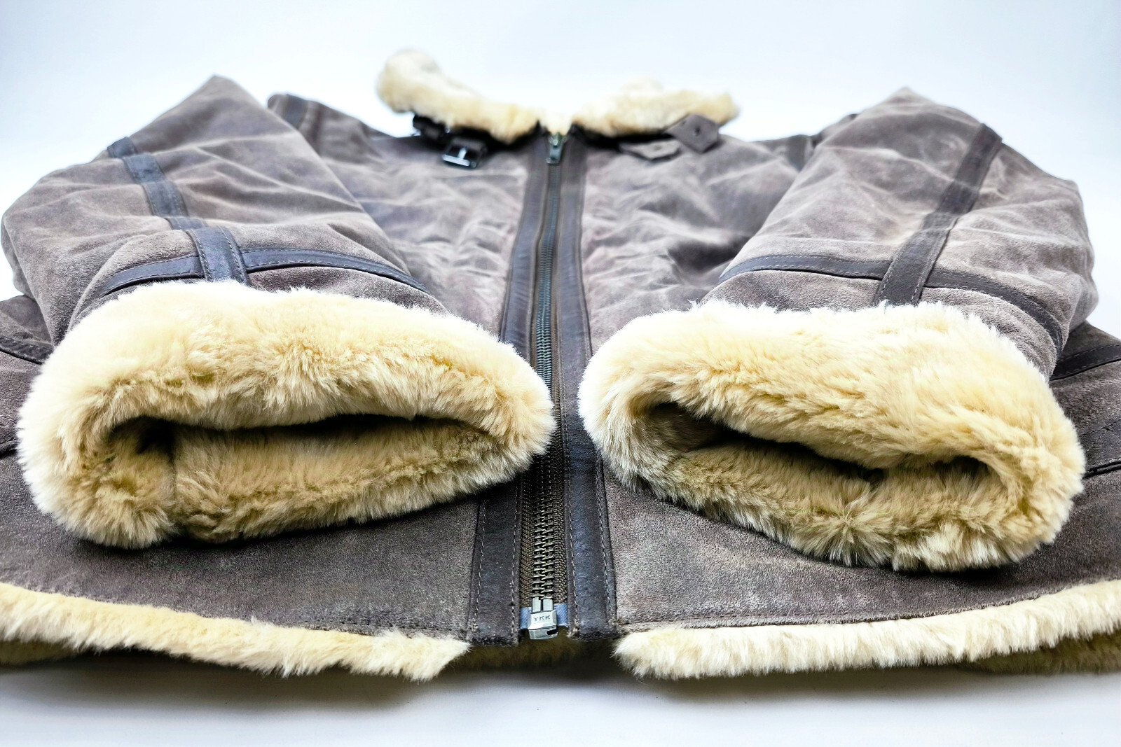 ________________________________________Marke: ChevignonModell: BoumeGröße: XXL (XL)Farbe: naturfaben Zustand: ausgezeichnet_______________________________________Beschreibung:Die Jacke befindet sich in einem ausgezeichneten Zustand. Es sind nur minimalste und nahezu nicht sichtbare Tragespuren zu erkennen.Außen sowie Innen !Reißverschlüsse und Druckknöpfe an den Taschen funktionieren tadellos.Lammfell Einsätze im Brustbereich, an den Ärmelenden und dem unteren Rücken.Braune Ledereinsätze im vorderen Bereich.Eine sehr schöne Materialkombination aus Lammfell, echtem Leder und Baumwolle.Tadelloser Zustand einer tollen Jacke !In der Jacke ist die Größe XXL angegeben. Im Vergleich mit anderen Chevignon Jacken von uns fällt sie etwas kleiner und tendiert ganz leicht zu einer Größe XL. Bitte die Maße beachten für eine perfekte Passform. _______________________________________Die ca. Maße sind wie folgt:Brustbreite von Achsel zu Achsel: 69cmÄrmellänge ab Höhe Schulter: 74cmRückenlänge inkl. Kragen und Bund: 78cm_______________________________________Material lt. Etikett:Oberstoff: 100% Leder (Lamm / Rind) / BaumwolleFutter+Füllung: 100% Polyester_______________________________________Pflegeanleitung:professionelle Textilreinigung