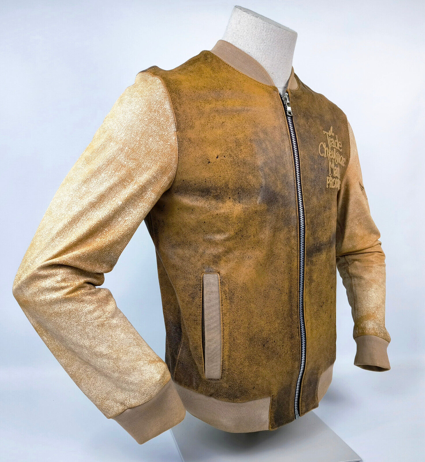 ________________________________________Marke: Jc de CastelbajacGröße: 50 (L)Farbe: blau / braun Zustand: sehr gut________________________________________Beschreibung:Die Jacke befindet sich in einem sehr guten Zustand.Es sind nur sehr wenige und dann kleine Trage- und Gebrauchsspuren zu erkennen.Außenbereich mit wenigen und dann kleinen Tragespuren und sehr gut erhalten.Innenfutter und Bündchen ebenfalls, sehr guter Zustand !Reißverschluß funktioniert tadellos.Materialmix aus Leder, Baumwolle und Polyamid.Ein tolles Motiv mit Wile E. Coyote.Castelbajac...Made in Italy...90s.In der Jacke ist die Größe 50 angegeben, was einer Größe L entspricht.Bitte die Maße prüfen für eine perfekte Passform.________________________________________Die ca. Maße sind wie folgt:Brustbreite von Achsel zu Achsel: 64cmÄrmellänge ab Höhe Schulter: 71cmRückenlänge inkl. Kragen und Bund: 70cm________________________________________Material lt. Innenlabel:Oberstoff: 100% Leder (brauner Bereich)100% Baumwolle (Bereich innen Cord Optik) 65% Polyamid / 35% Polyester (Ärmel)_______________________________________Pflegeanleitung:professionelle Textilreinigung