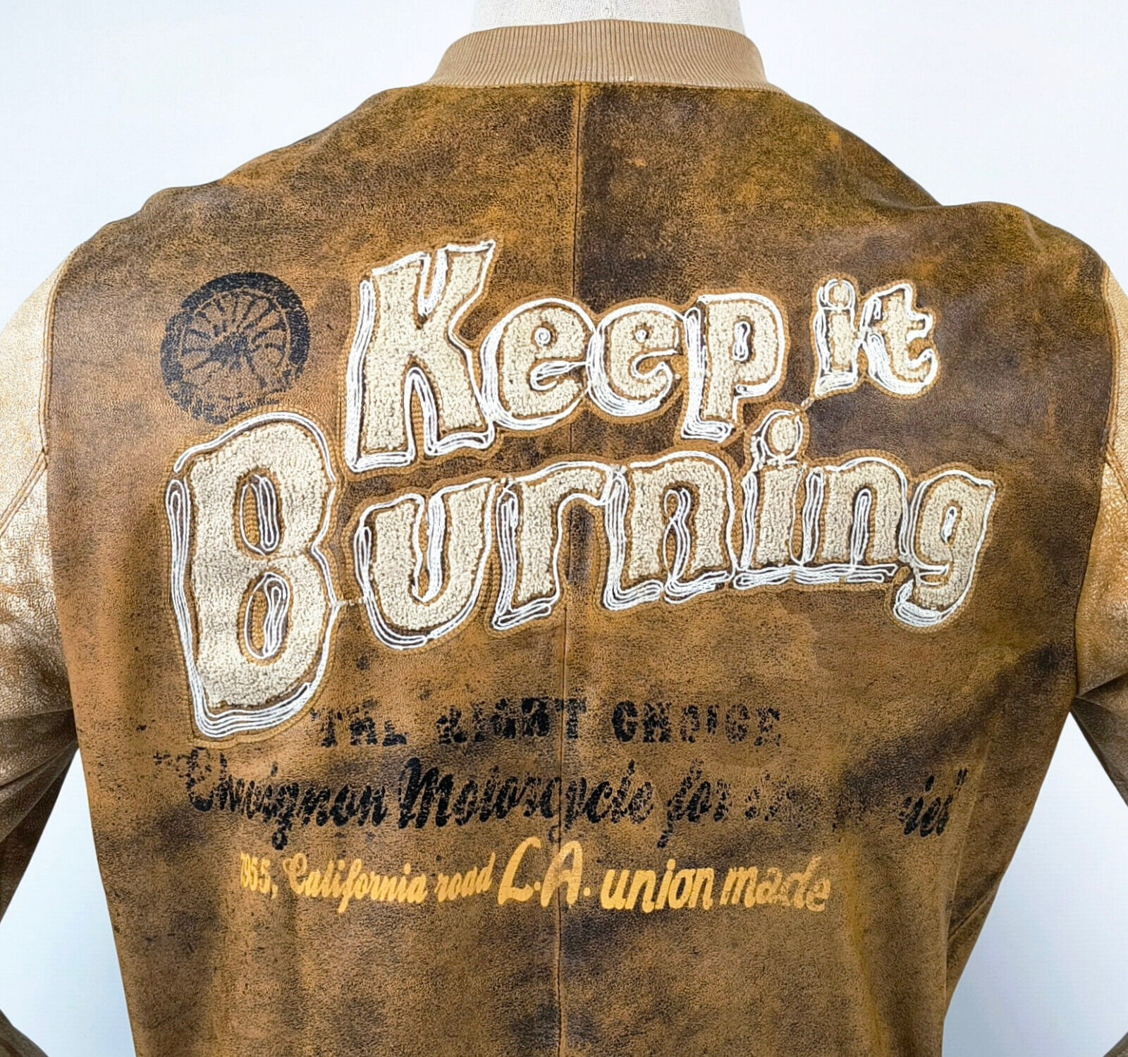 "Chevignon Lederjacke braun antik Gr. M Keep it Burning Biker"