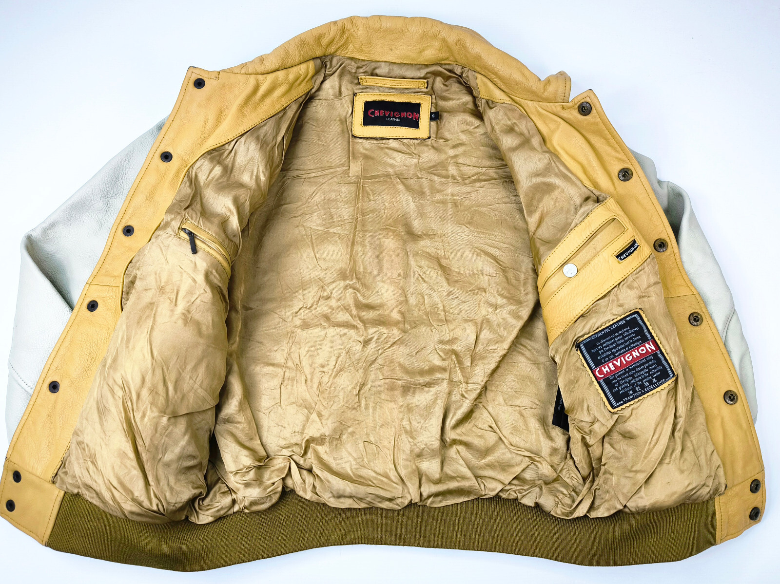 Chevignon Lederjacke gelb / natur Gr. S vintage `57