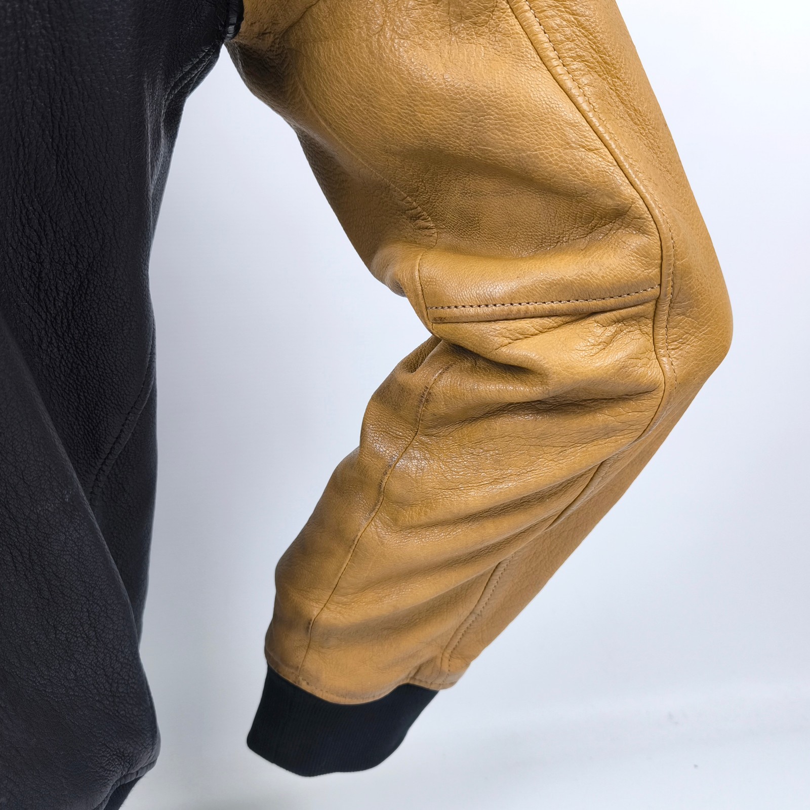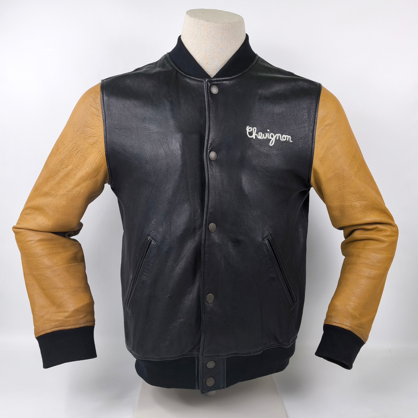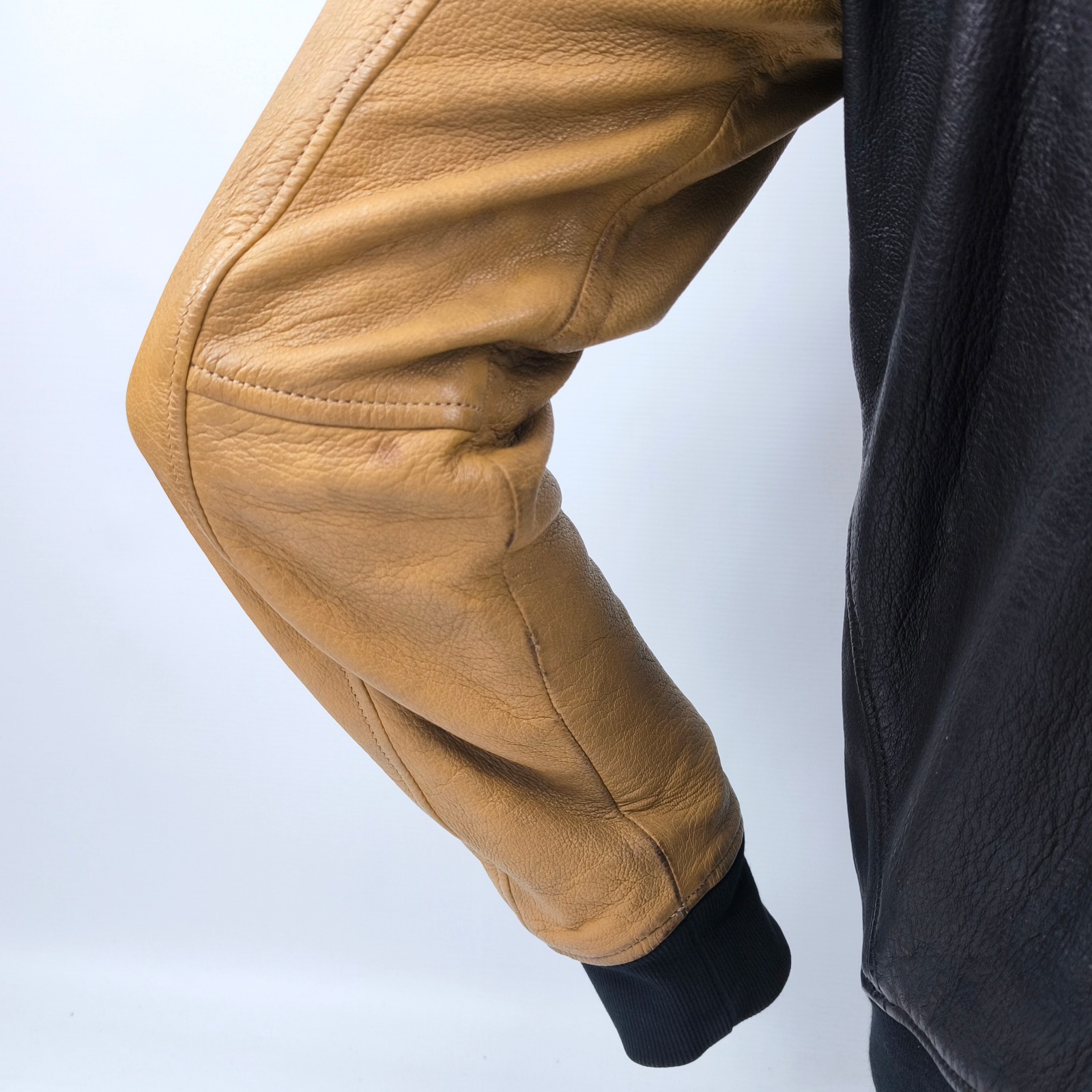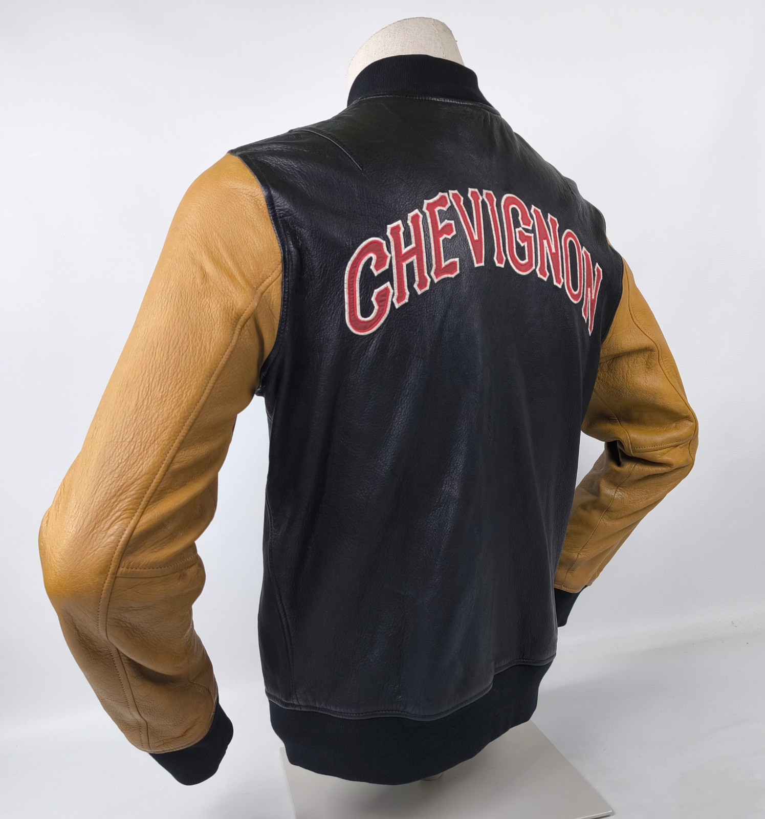 Chevignon Lederjacke schwarz / ocker Gr. M B-Denis großes Rückenlogo