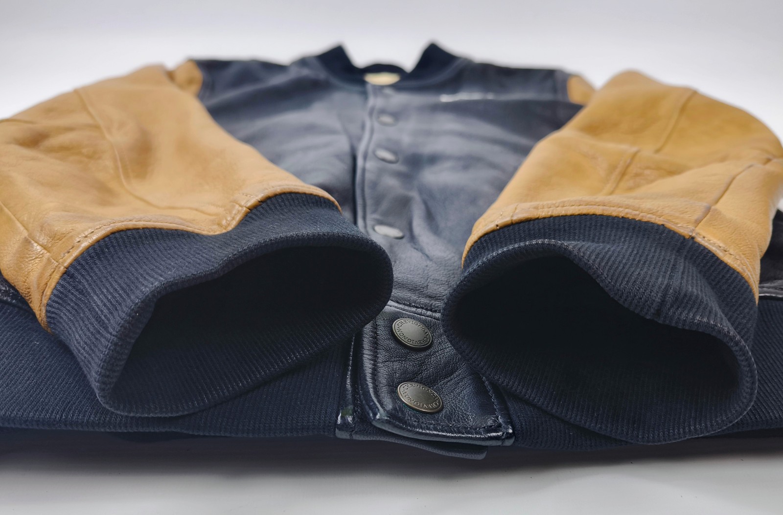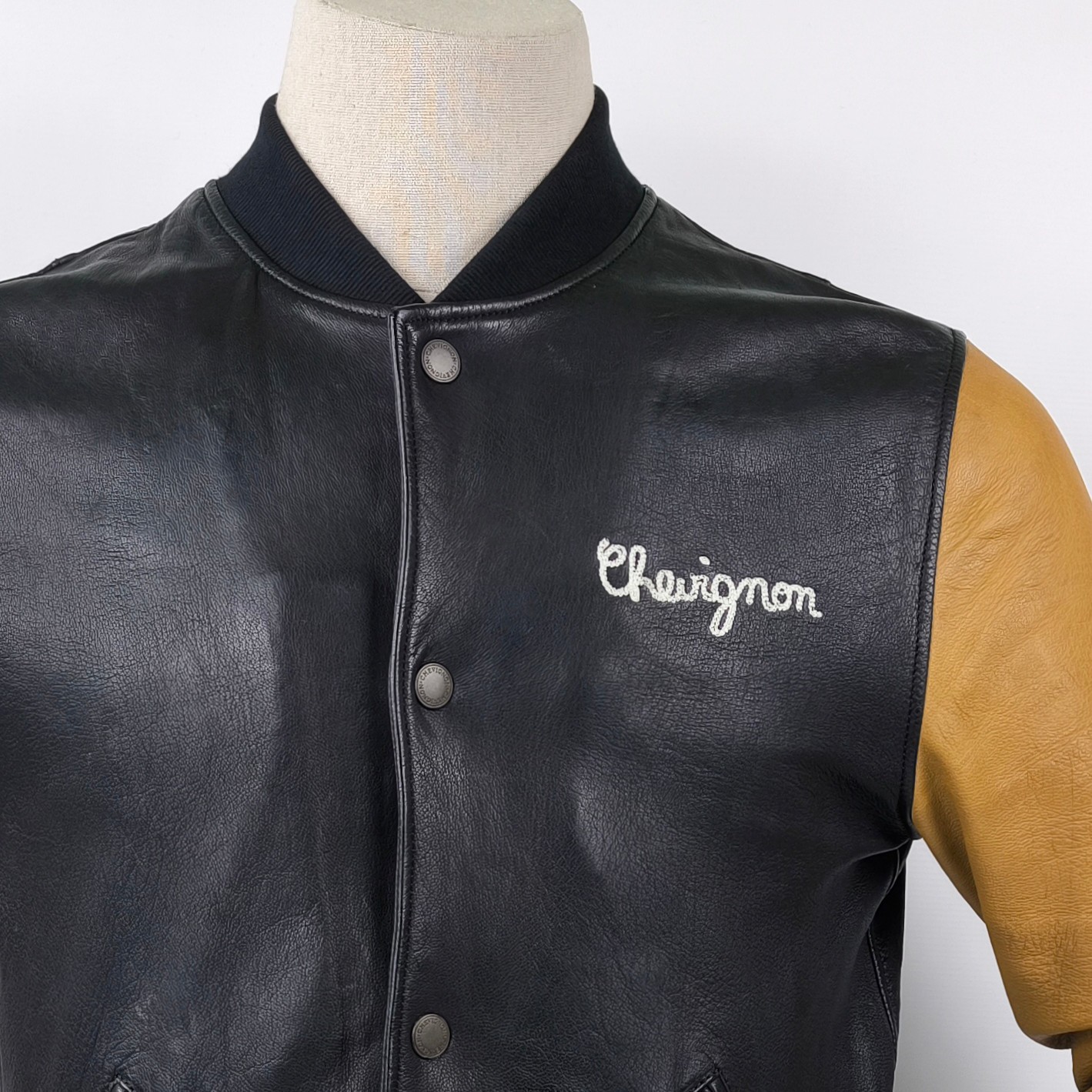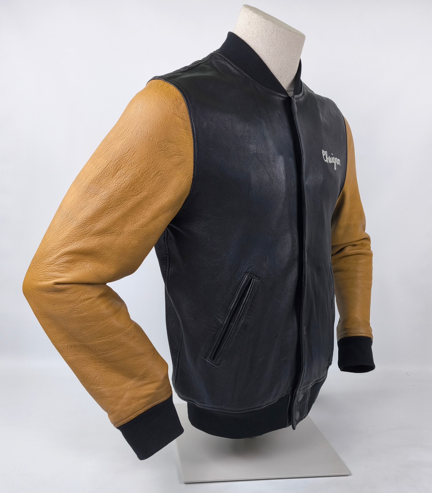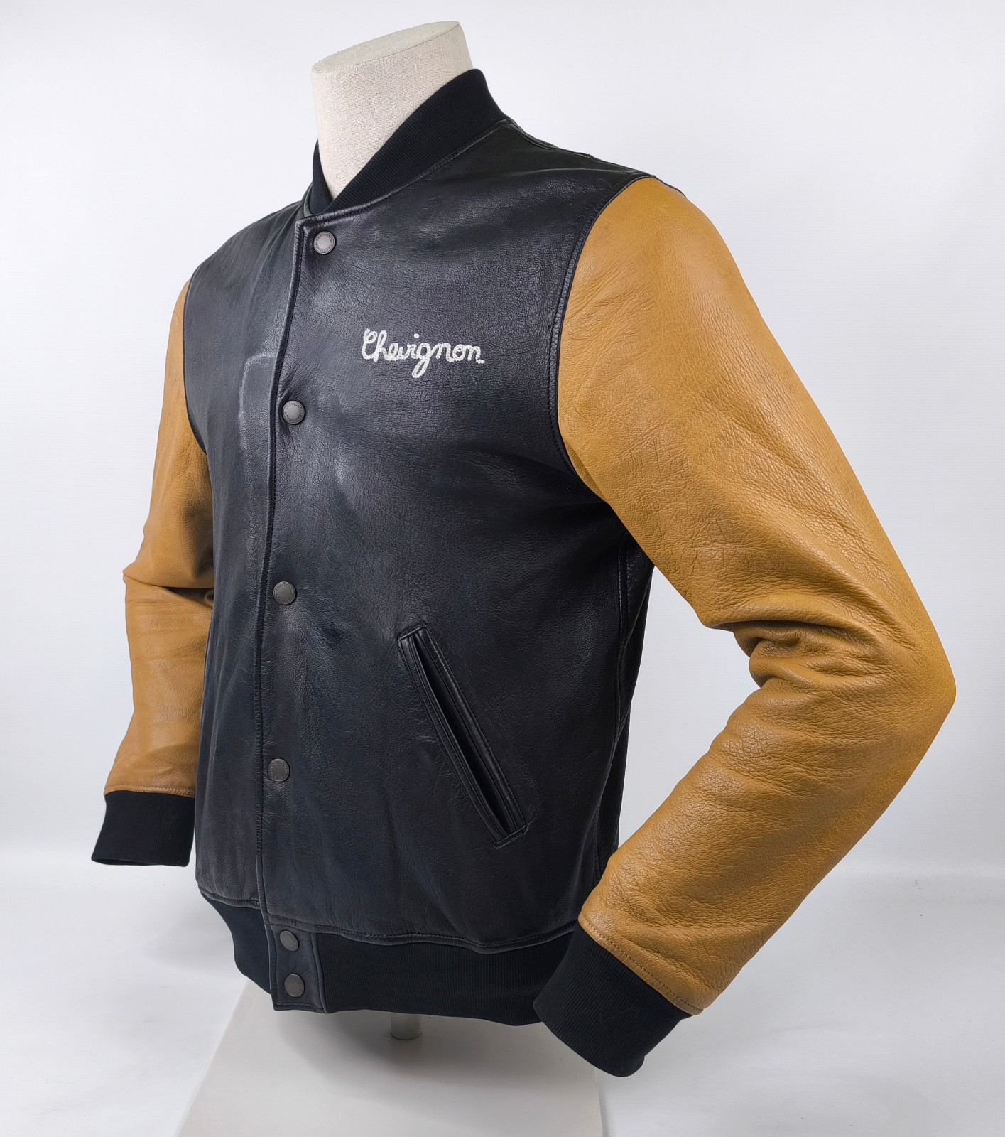 Chevignon Lederjacke schwarz / ocker Gr. M B-Denis großes Rückenlogo
