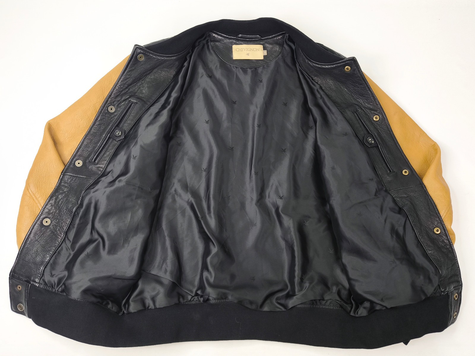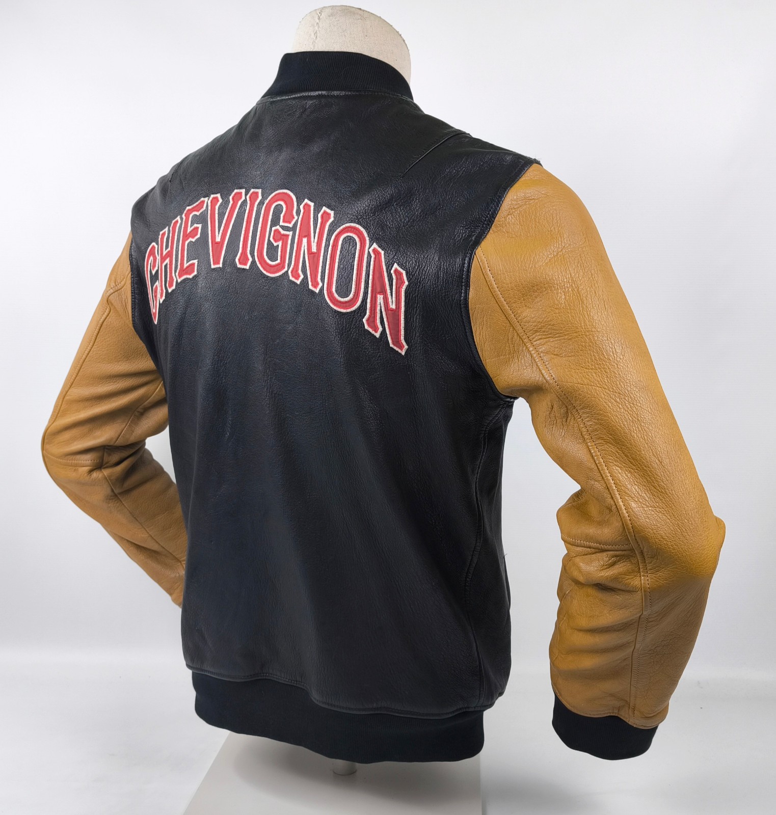 "Chevignon Lederjacke schwarz / ocker Gr. M B-Denis großes Rückenlogo"