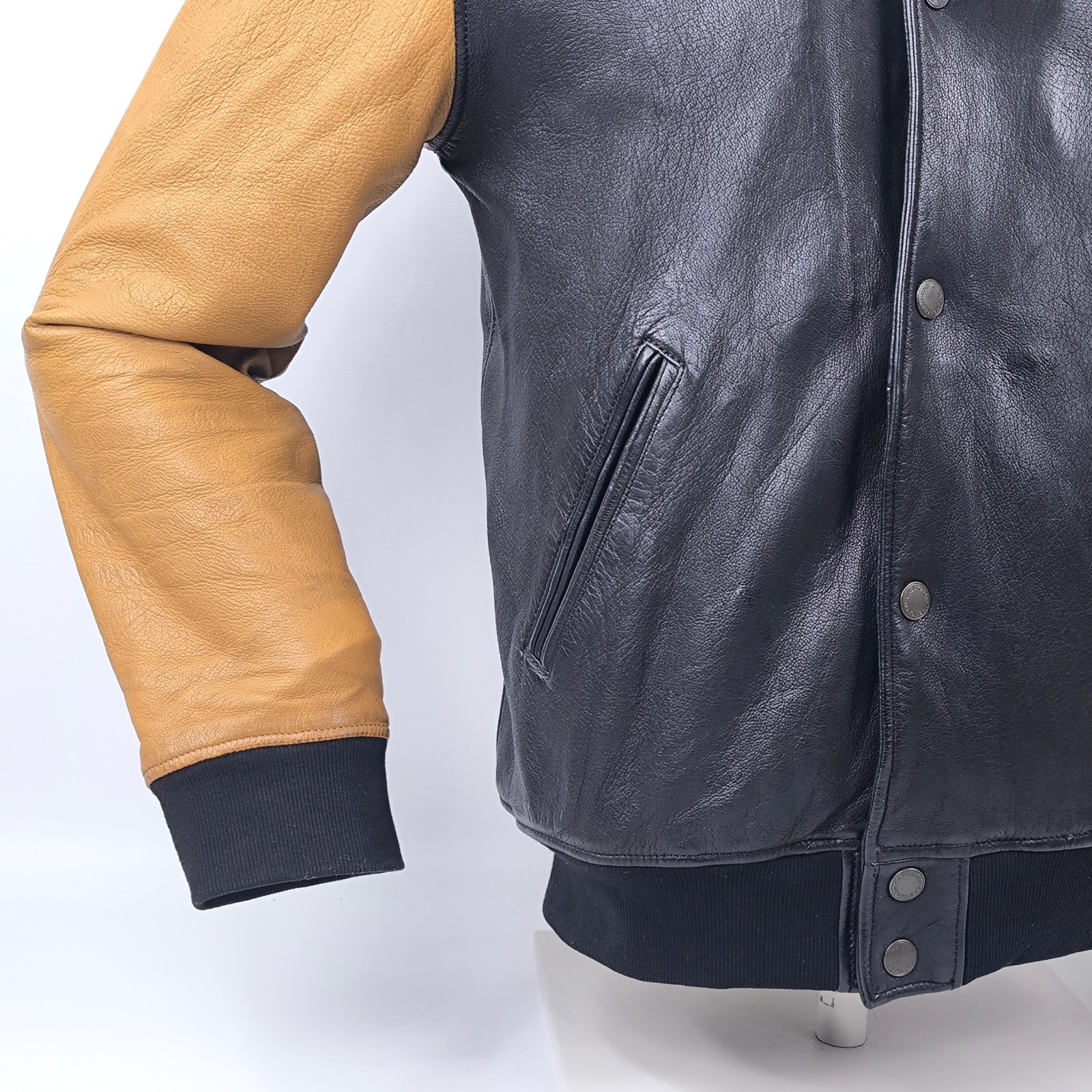 Preisvorschlag für Chevignon Lederjacke schwarz / ocker Gr. M B-Denis großes Rückenlogo
