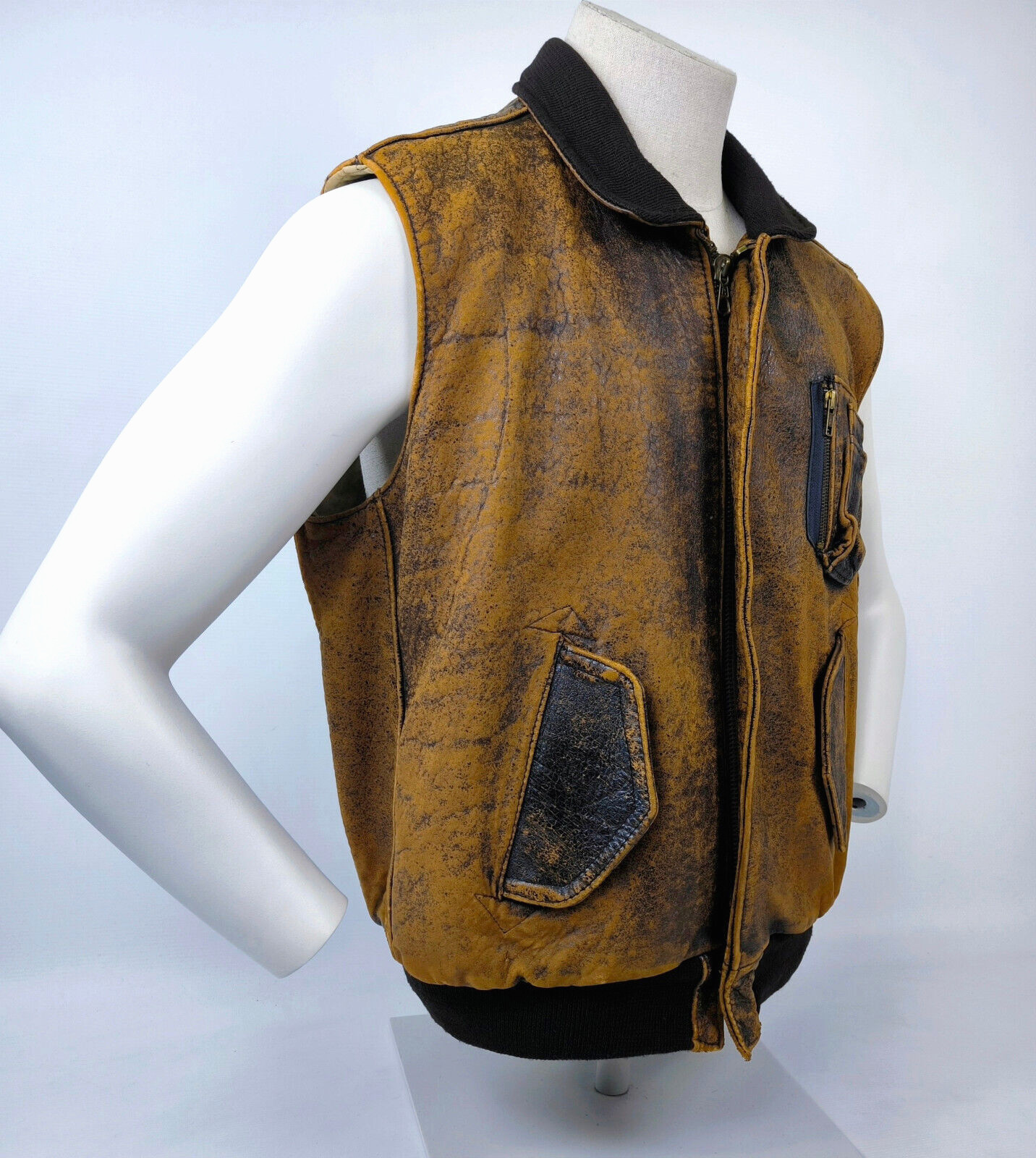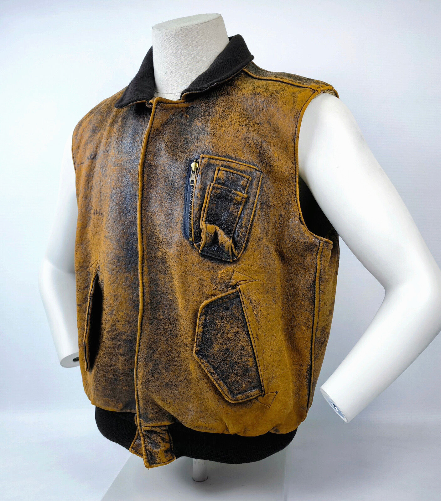 Preisvorschlag für Chevignon Lederweste braun Gr. XL (L) 80er vintage Old Flight jacket Weste Leder