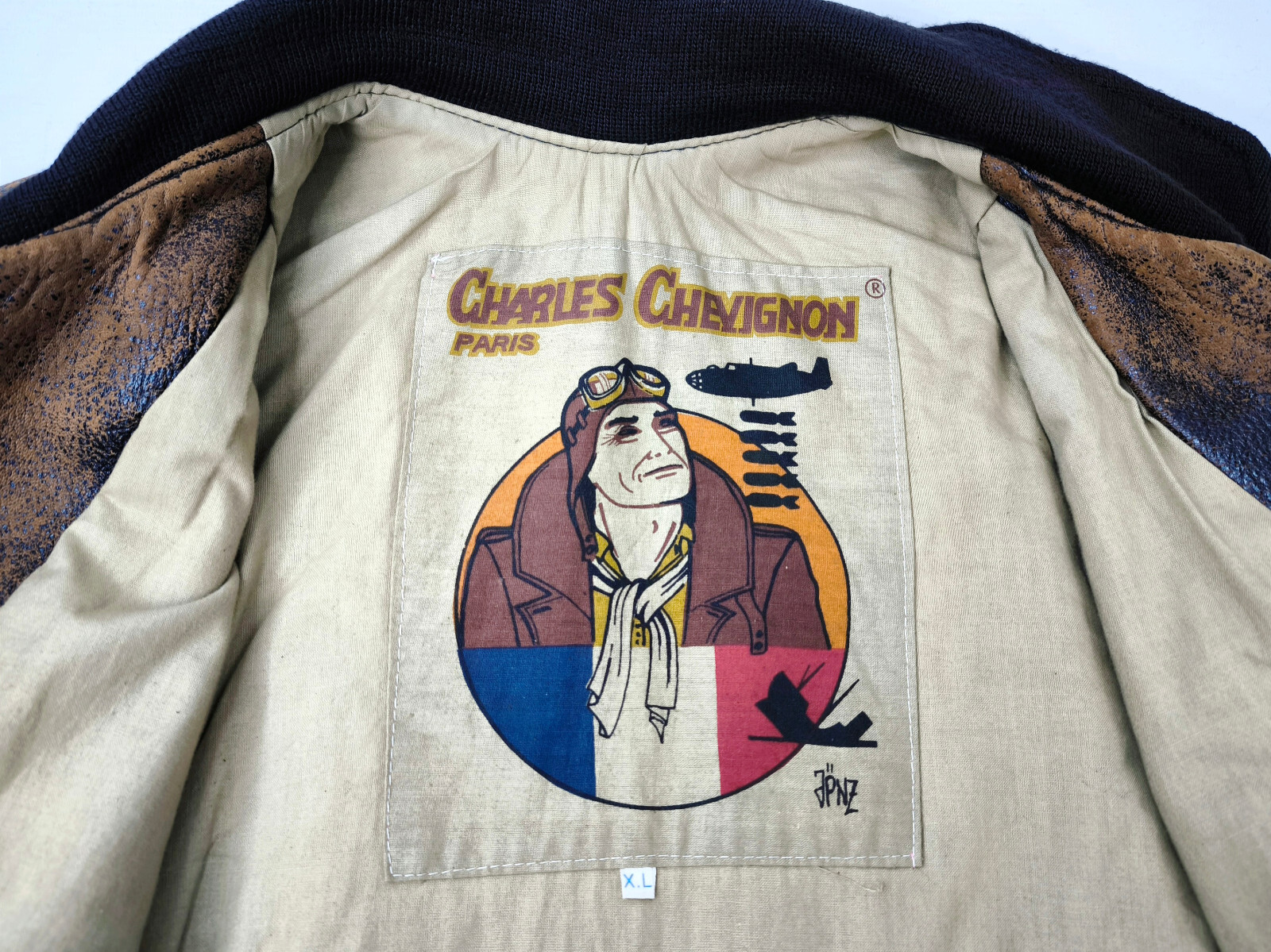 ________________________________________Marke: ChevignonFarbe: dunkelblauGröße: M Zustand: getragen_______________________________________Beschreibung:Die Jacke wurde getragen und befindet sich in einem sehr schönen Zustand. Es sind nur wenige und dann kleine Trage- und Gebrauchsspuren zu erkennen.Außen mit wenigen und kleinen Trage- und Gebrauchsspuren und super gut erhalten.Innenfutter im sehr guten Zustand.Ebenfalls die Bündchen, ganz leichte Trage- und Gebrauchsspuren und super gut erhalten.Reißverschluß funktioniert tadellos. Zwei Außen- und eine Innentasche.Lammfell / Lammleder im Kragenbereich.Lederabsetzung in schwarz an den Schultern und den Außentaschen mit wunderschöner leichter Patina.Typisch der Schnitte der damaligen Zeit, ist die Jacke im Brustbereich breit und vom Rücken her recht kurz geschnitten.Die Größe ist keine Größe zu finden. Im Vergleich mit anderen Chevignon Jacken von uns, fällt sie wie eine Größe M.Bitte die Maße prüfen für eine perfekte Passform._____________________________________Die ca. Maße sind wie folgt:Brustbreite von Achsel zu Achsel: 63cmÄrmellänge ab Höhe Schulter: 68cmRückenlänge inkl. Kragen und Bund: 67cm_______________________________________Material:Außen+Futter / Kragen / Schultern: 100% Nylon - 100% Baumwolle / 100% Lammleder / 100% Leder (Rind)_______________________________________Pflegeanleitung:professionelle Textilreinigung