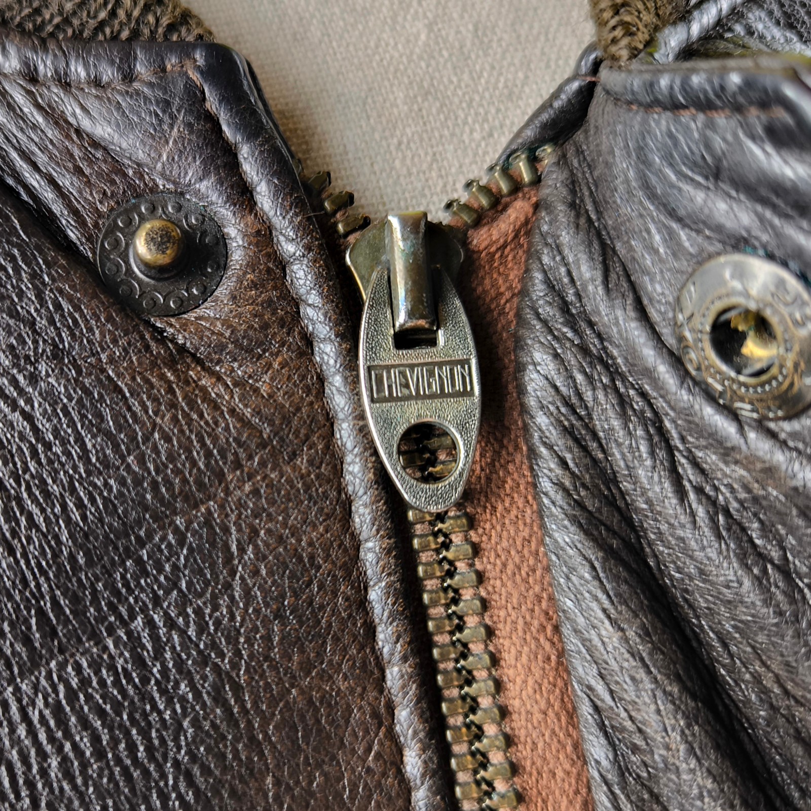 ________________________________________Marke: ChevignonGröße: LFarbe: braun Zustand: sehr gut_______________________________________Beschreibung:Die Jacke befindet sich in einem sehr guten Zustand.Leder außen mit minimaler und ganz leichter Patina und sehr gut erhalten.Sehr weiches, anschmiegsames und trotzdem sehr robustes Leder.Innenfutter und auch die Bündchen, ebenfalls sehr gut im Zustand !Reißverschlüsse und Druckknöpfe an den Innentaschen funktionieren tadellos.Ein Chevignon Flieger Blouson aus den späten 1980er Jahren.Die Jacke hat eine sehr gute Größe L und sitzt relaxed.Bitte die Maße prüfen für eine perfekte Passform._______________________________________Die ca. Maße sind wie folgt:Brustbreite von Achsel zu Achsel: 65cmÄrmellänge ab Höhe Schulter: 71cmRückenlänge inkl. Kragen und Bund: 71cm_______________________________________Material lt. Etikett:Außen / Innen:100% Leder / 100% Baumwolle-AcetatFüllung: 100% Polyester_______________________________________Pflegeanleitung: professionelle Textilreinigung
