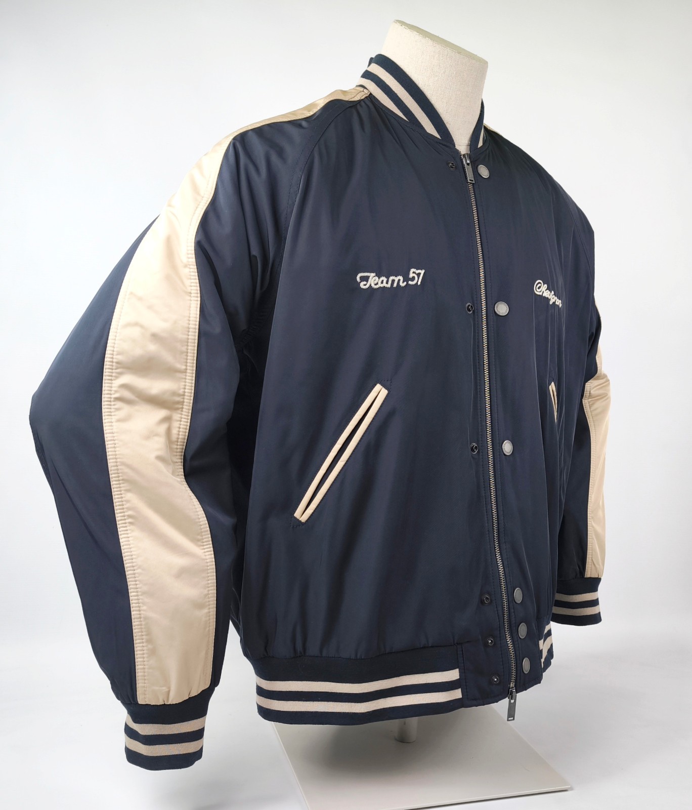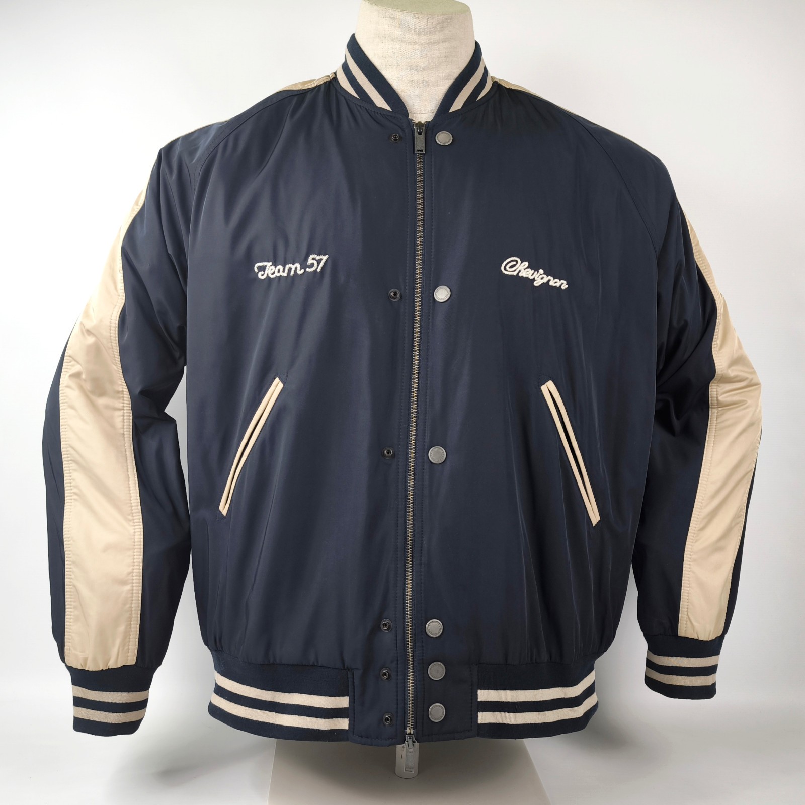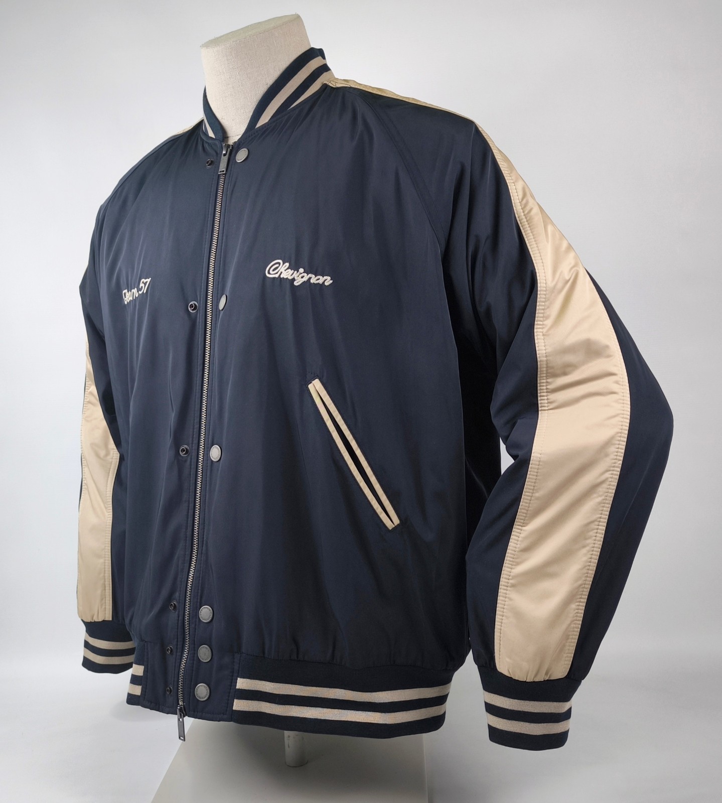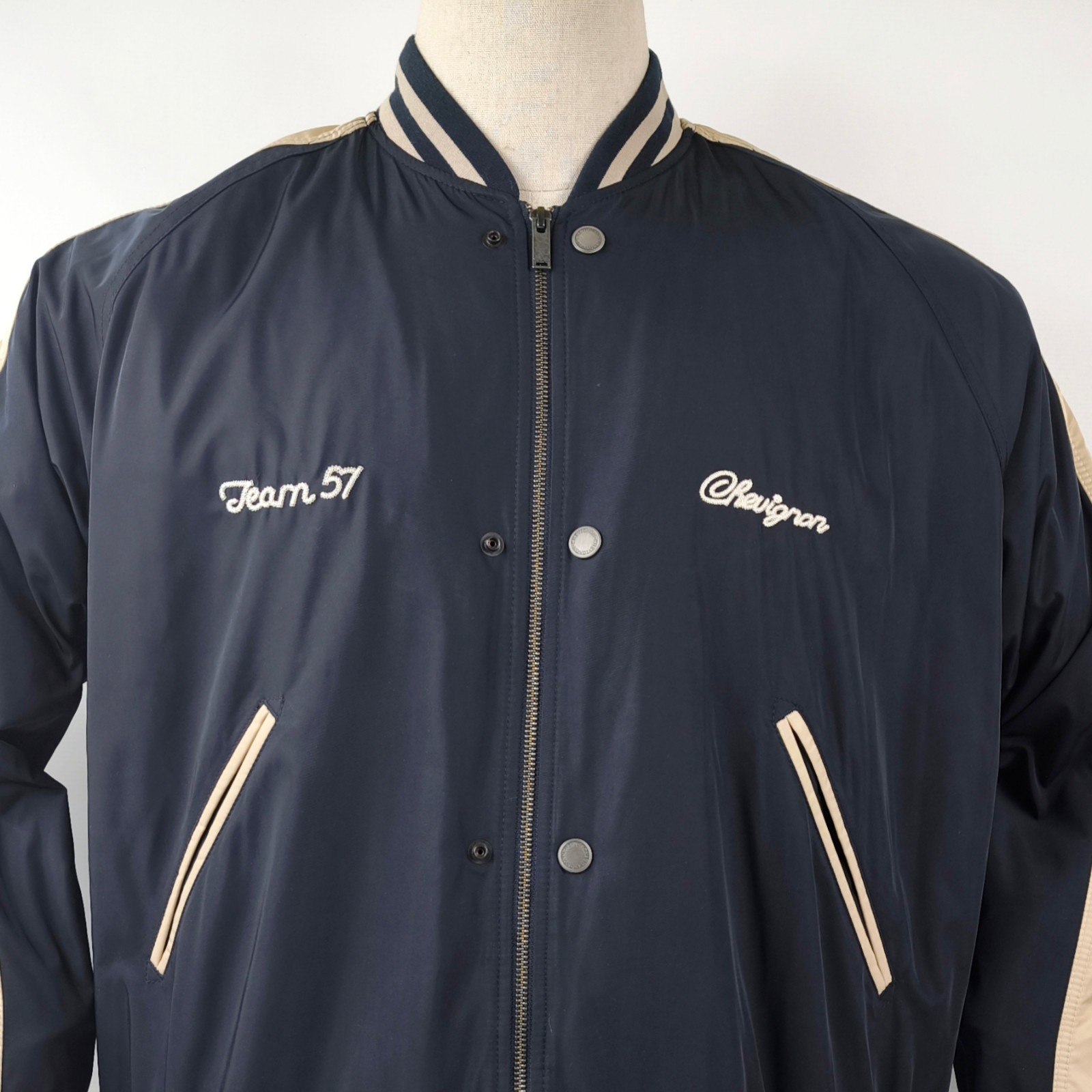 Im Vergleich mit anderen Chevignon Jacken von uns, fällt sie kleiner und ist ganz klar eher eine Größe XXL.