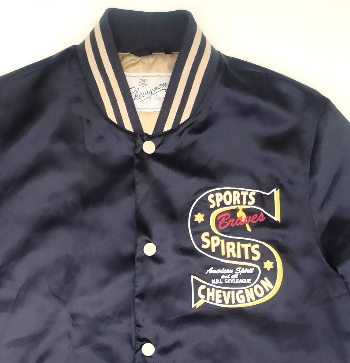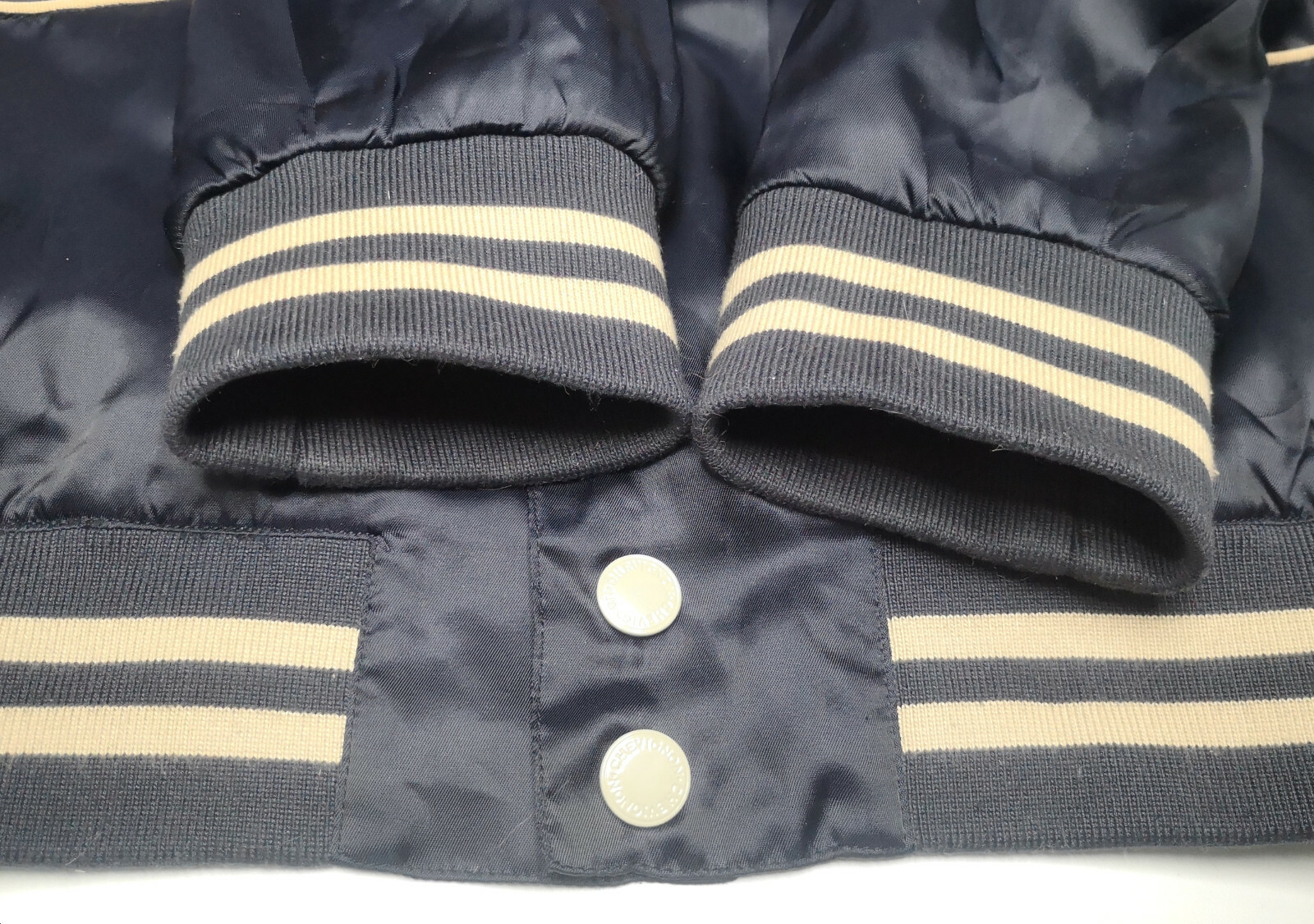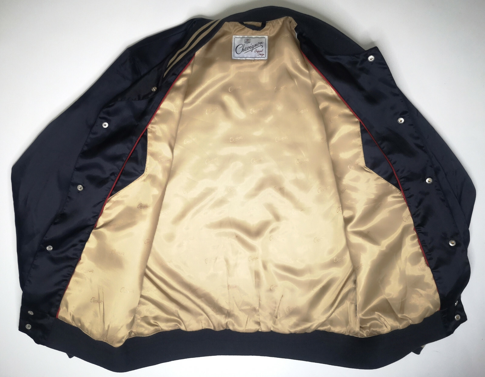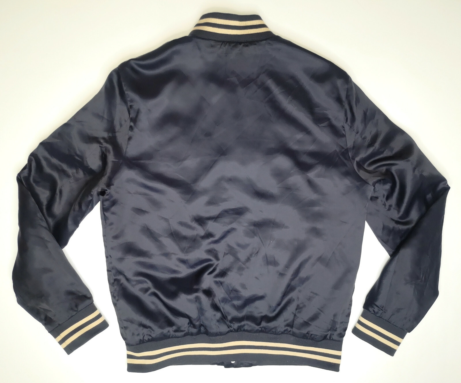 ________________________________________Marke: ChevignonFarbe: dunkelblauGröße: M (S) Zustand: getragen_______________________________________Beschreibung:Die Jacke wurden getragen und befindet sich in einem sehr schönen Zustand. Außen mit ganz leichten Trage- und Gebrauchsspuren und super gut erhalten.Innenfutter in einem sehr guten Zustand.Ebenfalls die Bündchen, sehr sehr gut erhalten !Reißverschluß und Druckknöpfe an den Taschen funktionieren tadellos. In der Jacke ist die Größe M angegeben. Im Vergleich mit anderen Chevignon Jacken von uns, fällt sie etwas kleiner und tendiert leicht zur Größe S.Typisch der Schnitte der damaligen Zeit ist sie im Brustbereich eher breit und dafür vom Rücken her kürzer geschnitten.Bitte die Maße prüfen für eine perfekte Passform._______________________________________Die ca. Maße sind wie folgt:Brustbreite von Achsel zu Achsel: 58cmÄrmellänge ab Höhe Schulter: 66cmRückenlänge inkl. Kragen und Bund: 63cm_______________________________________Material lt. Etikett:Außen / Innen: 100% Nylon_______________________________________Pflegeanleitung:Maschinenwäsche 30 Grad