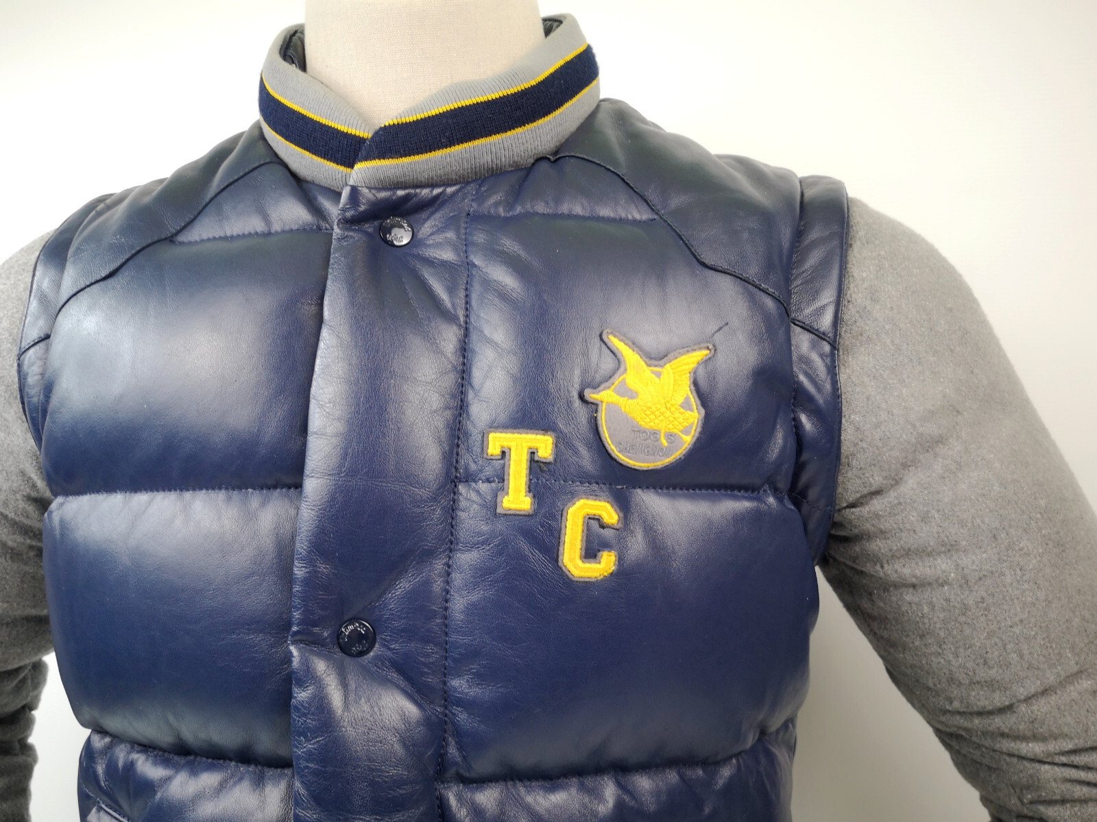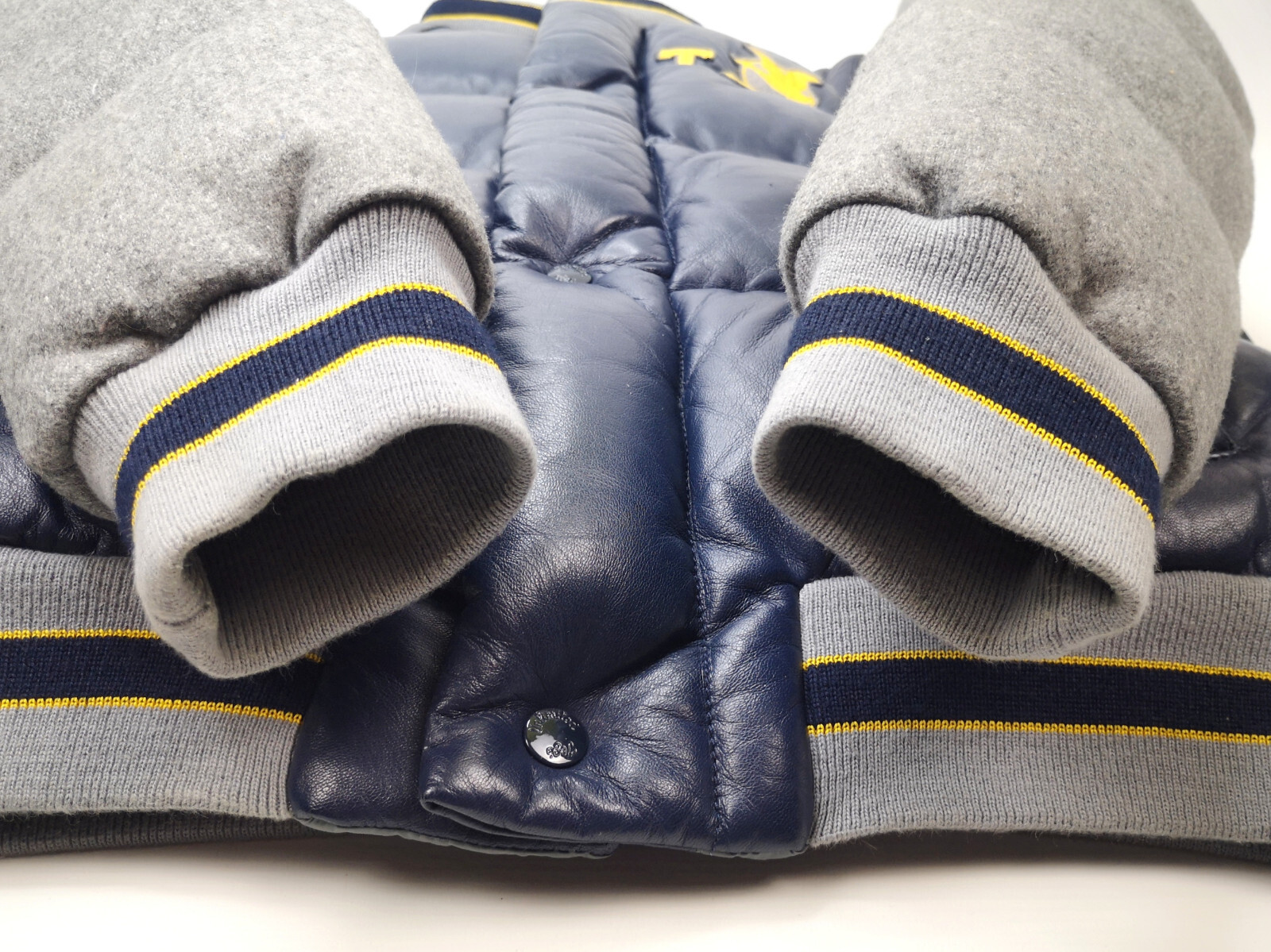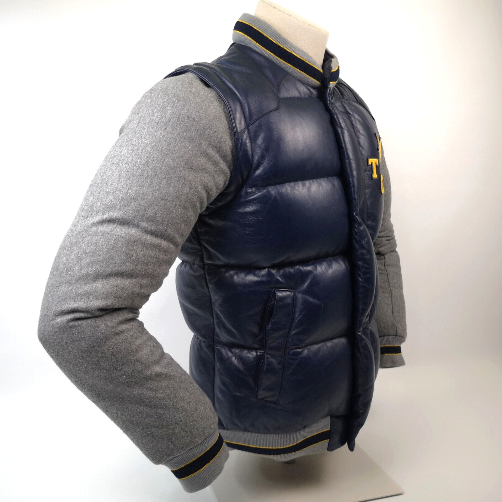 ________________________________________Marke: ChevignonFarbe: dunkelblauGröße: M Zustand: getragen_______________________________________Beschreibung:Die Jacke wurde getragen und befindet sich in einem sehr schönen Zustand. Es sind nur wenige und dann kleine Trage- und Gebrauchsspuren zu erkennen.Außen mit wenigen und kleinen Trage- und Gebrauchsspuren und super gut erhalten.Innenfutter im sehr guten Zustand.Ebenfalls die Bündchen, ganz leichte Trage- und Gebrauchsspuren und super gut erhalten.Reißverschluß funktioniert tadellos. Zwei Außen- und eine Innentasche.Lammfell / Lammleder im Kragenbereich.Lederabsetzung in schwarz an den Schultern und den Außentaschen mit wunderschöner leichter Patina.Typisch der Schnitte der damaligen Zeit, ist die Jacke im Brustbereich breit und vom Rücken her recht kurz geschnitten.Die Größe ist keine Größe zu finden. Im Vergleich mit anderen Chevignon Jacken von uns, fällt sie wie eine Größe M.Bitte die Maße prüfen für eine perfekte Passform._____________________________________Die ca. Maße sind wie folgt:Brustbreite von Achsel zu Achsel: 63cmÄrmellänge ab Höhe Schulter: 68cmRückenlänge inkl. Kragen und Bund: 67cm_______________________________________Material:Außen+Futter / Kragen / Schultern: 100% Nylon - 100% Baumwolle / 100% Lammleder / 100% Leder (Rind)_______________________________________Pflegeanleitung:professionelle Textilreinigung