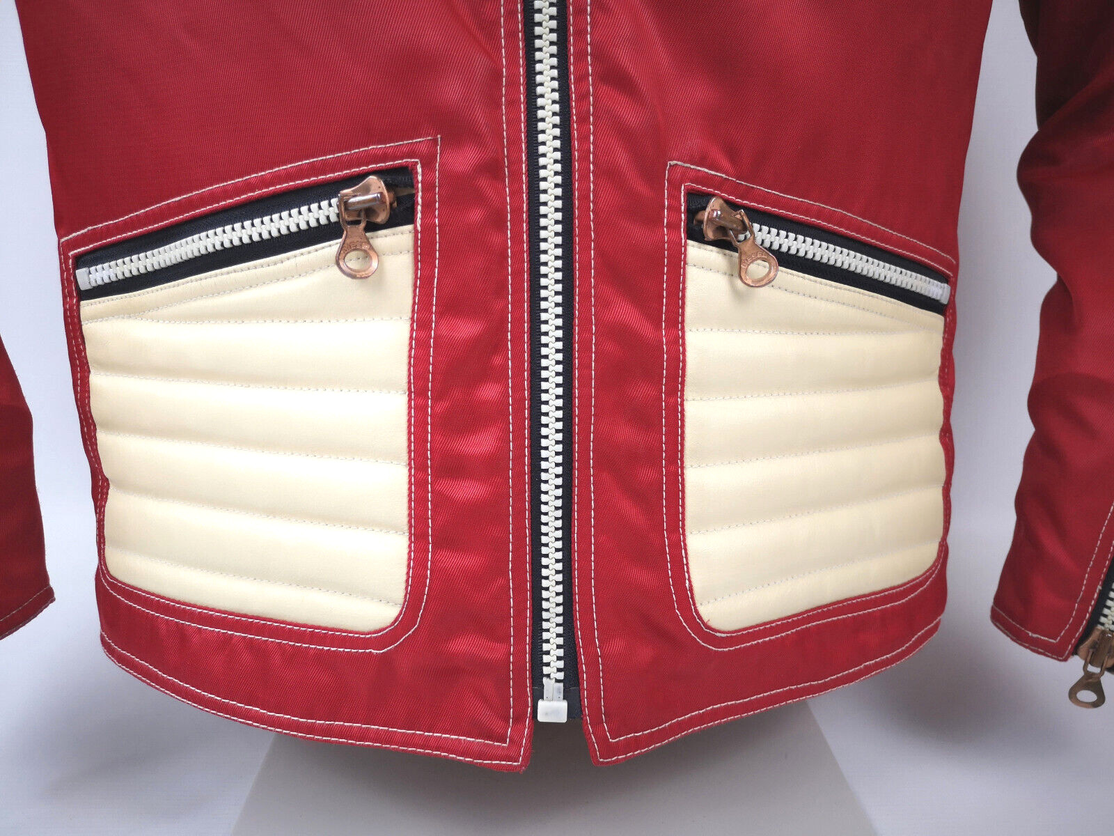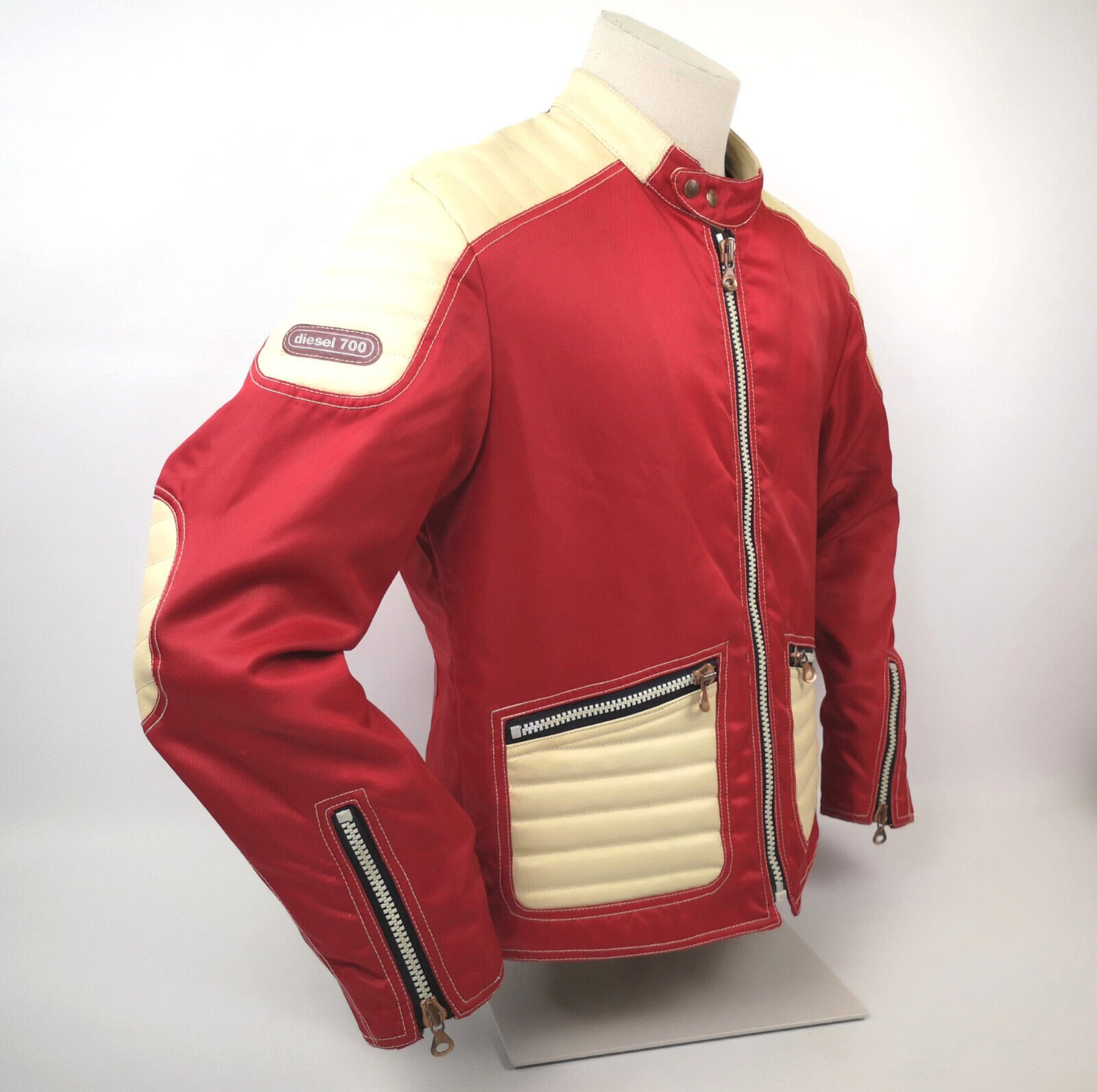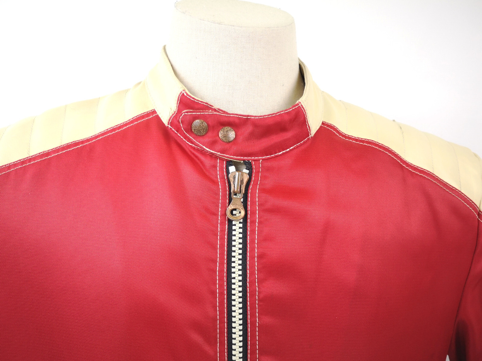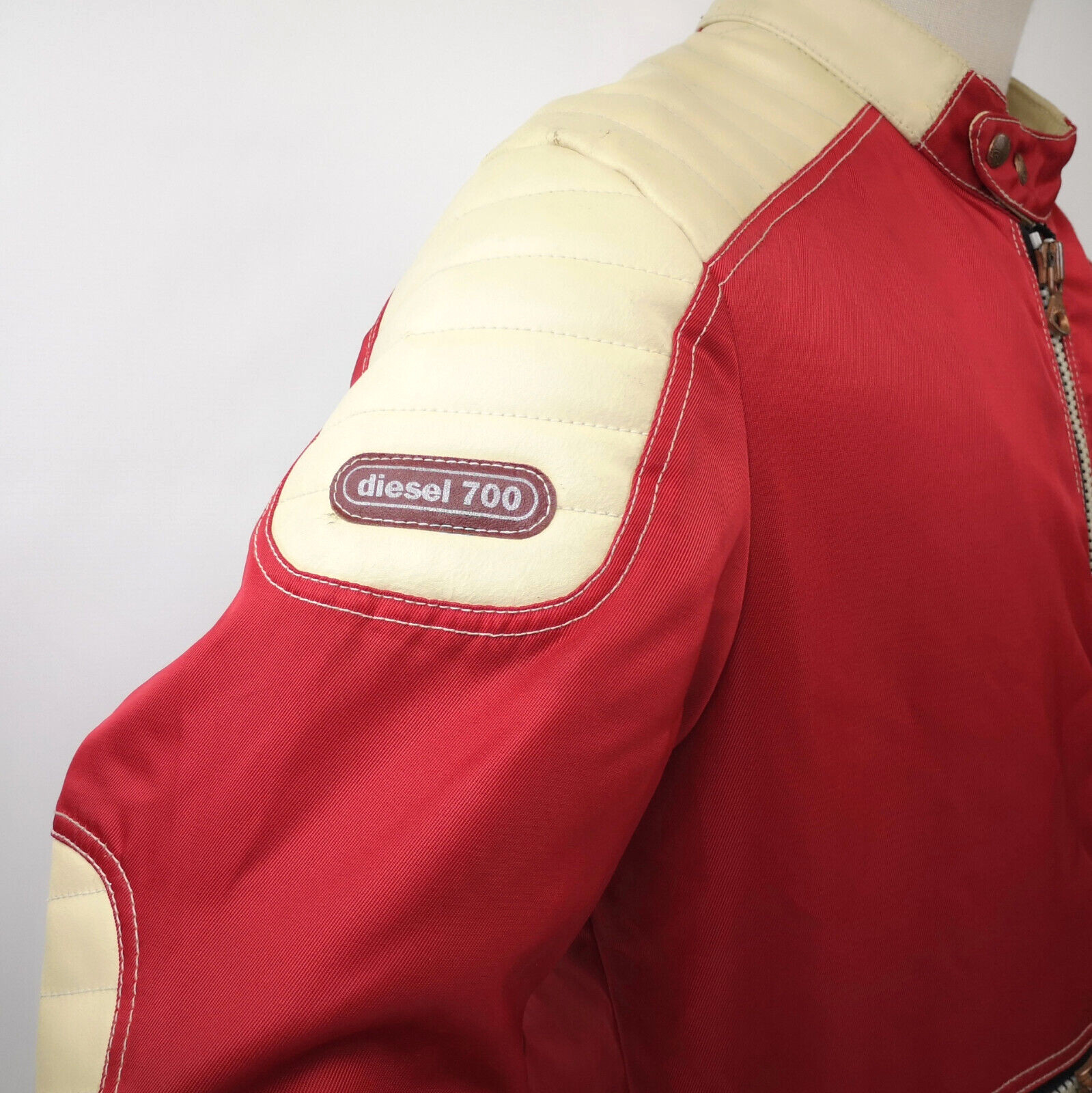 Diesel 700 Jacke Leder Nylon Mix rot /creme Gr. L 90er vintage Biker
