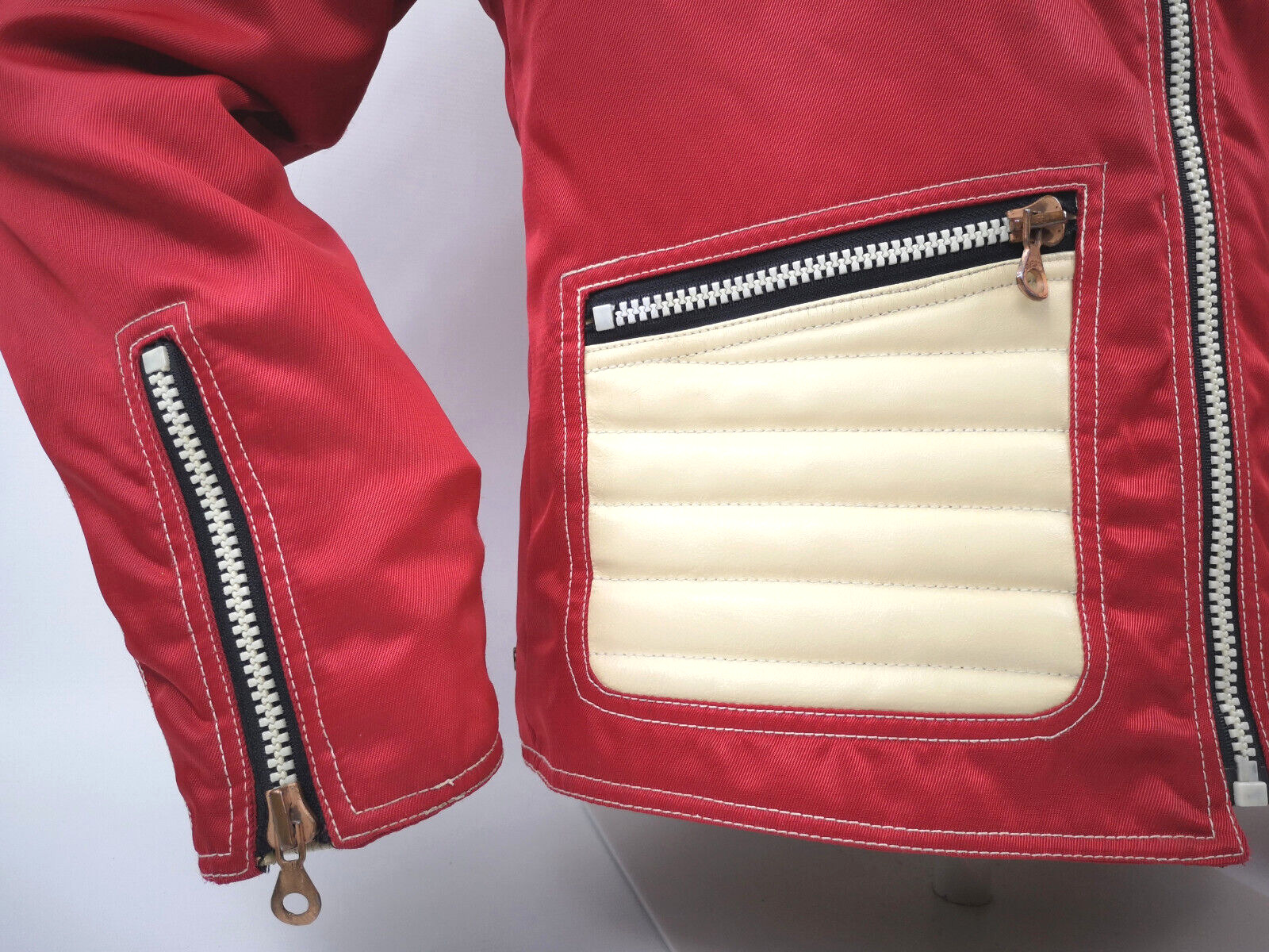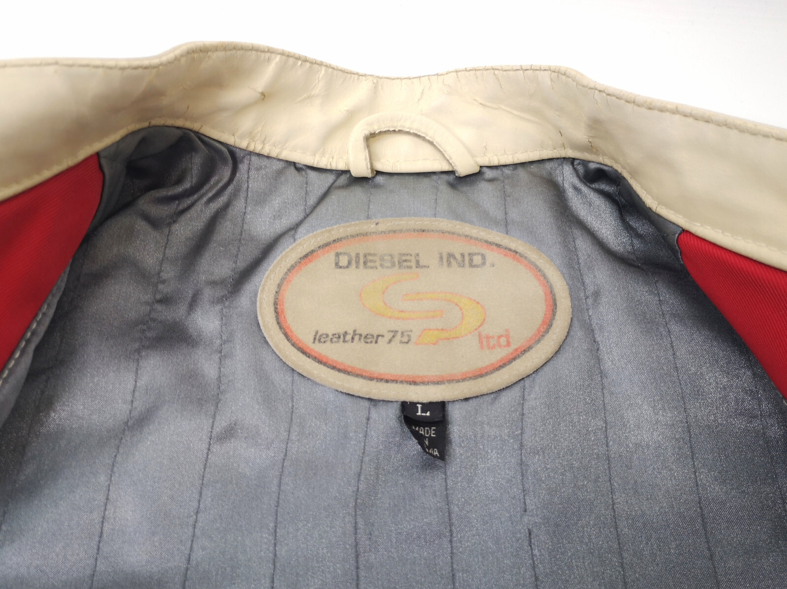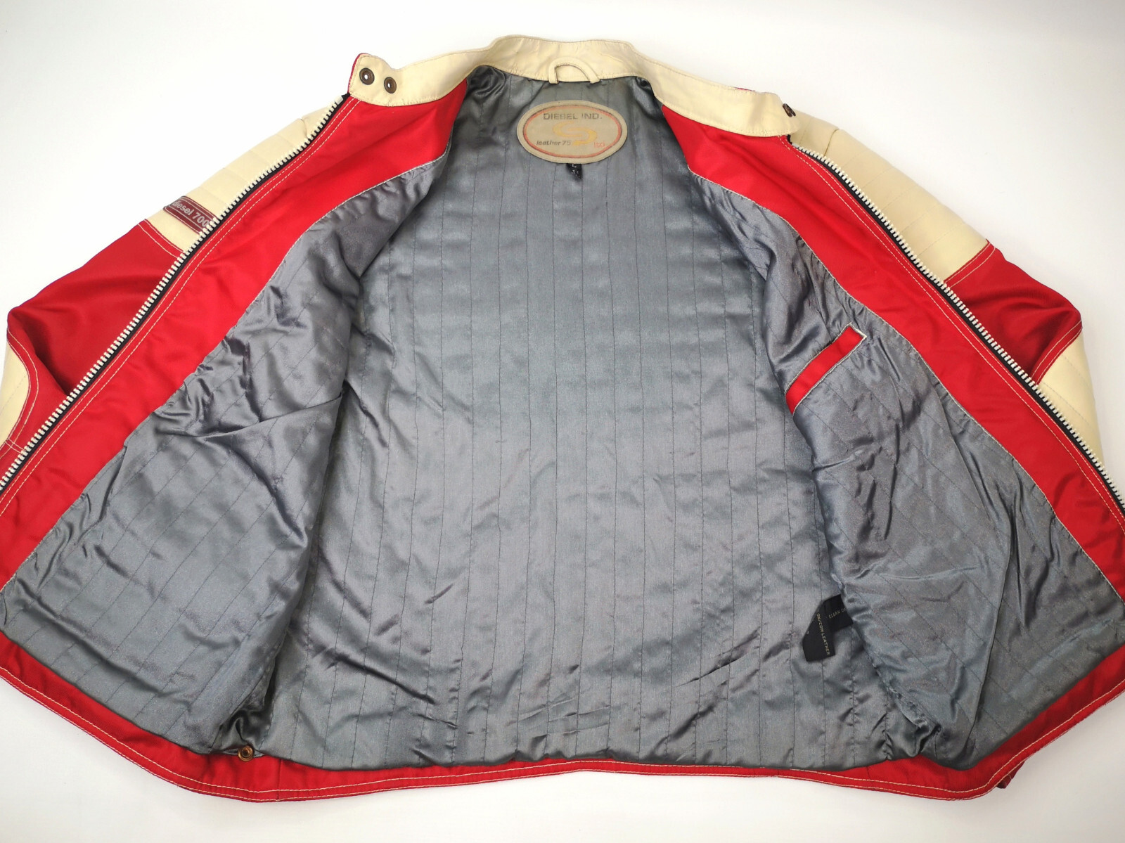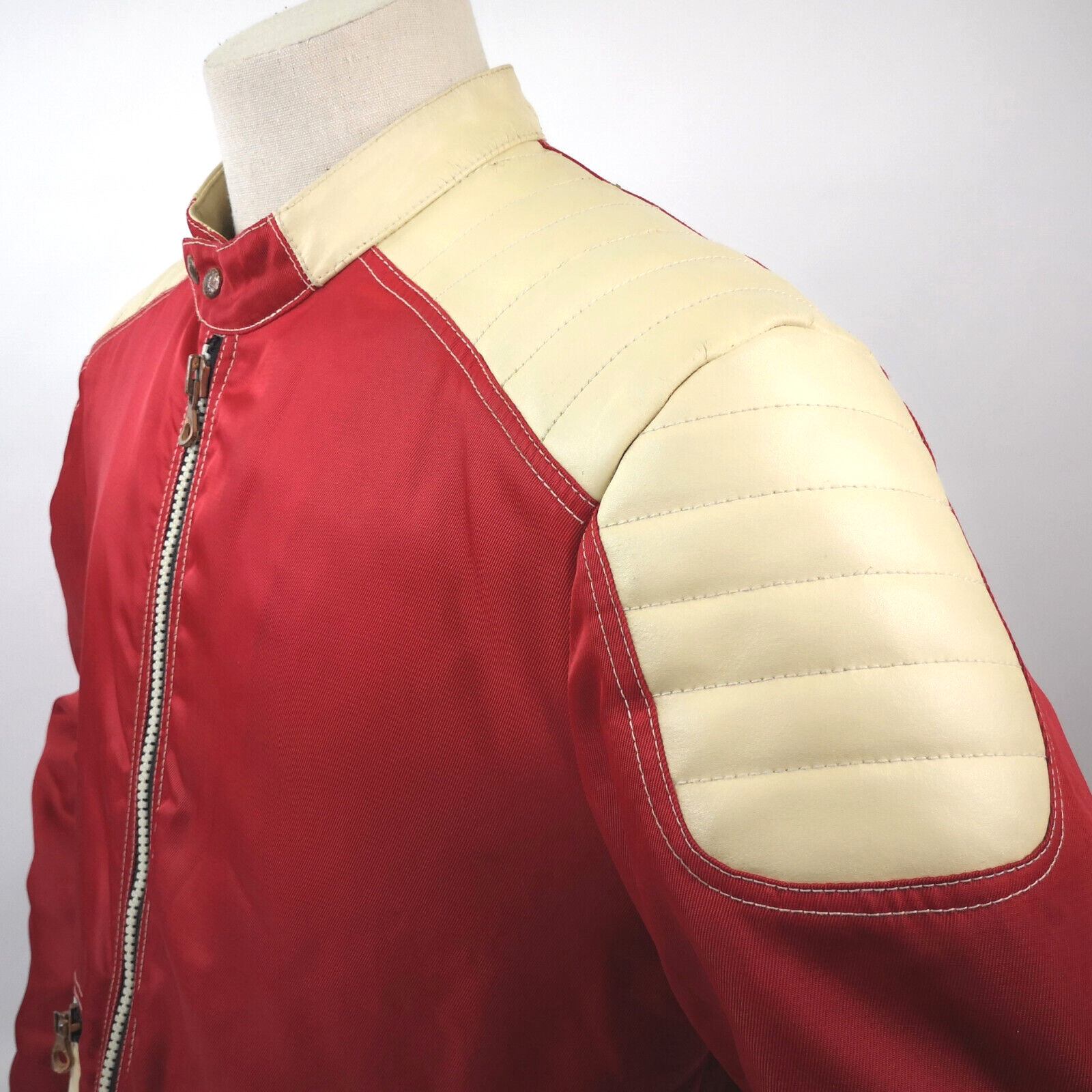 Diesel 700 Jacke Leder Nylon Mix rot /creme Gr. L 90er vintage Biker