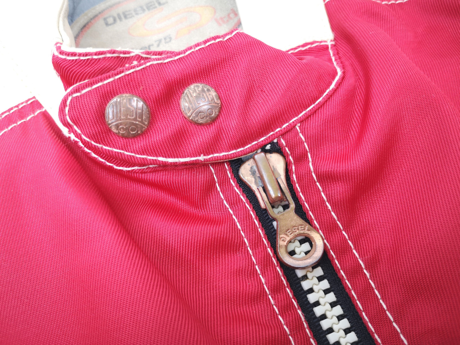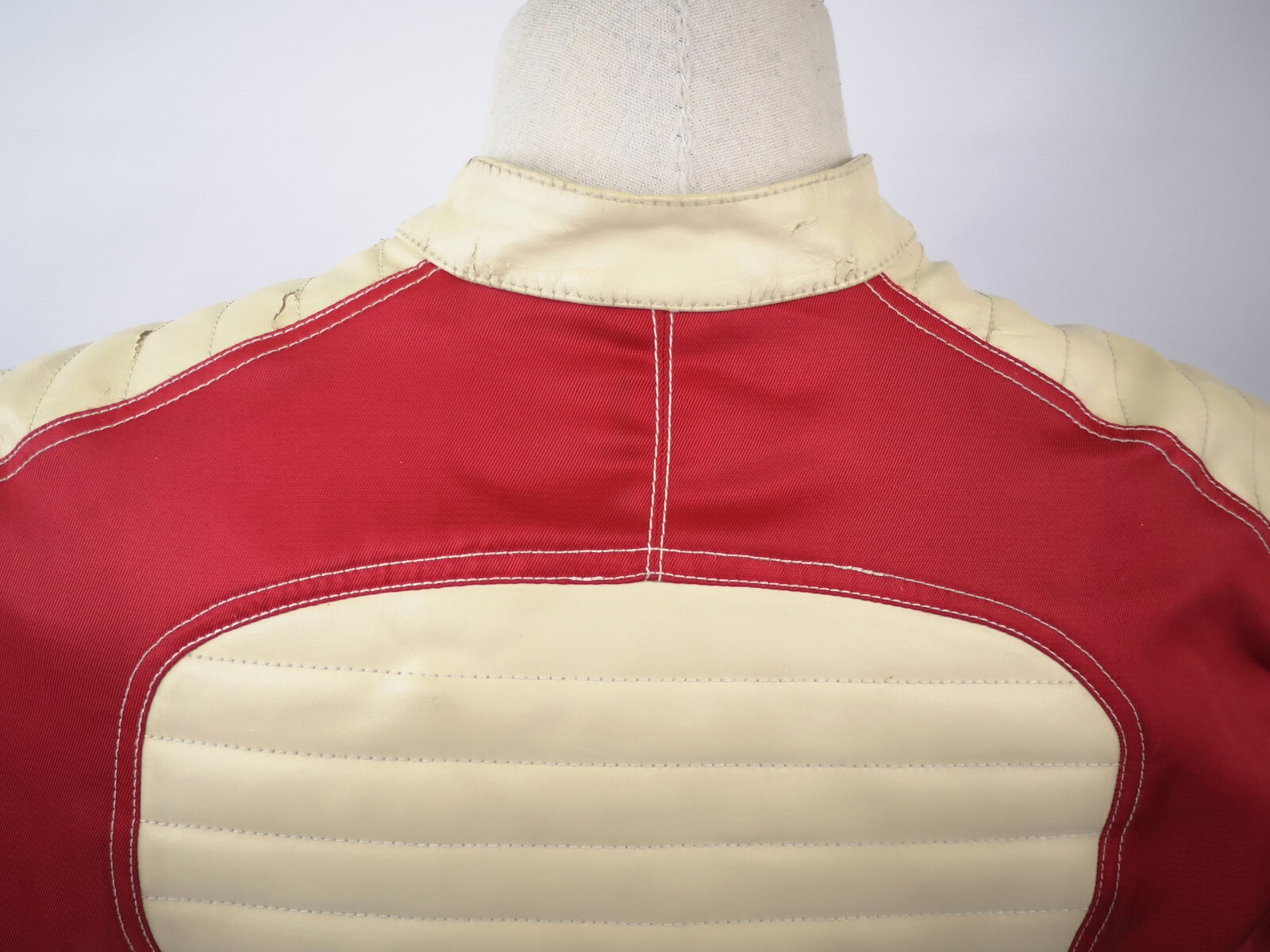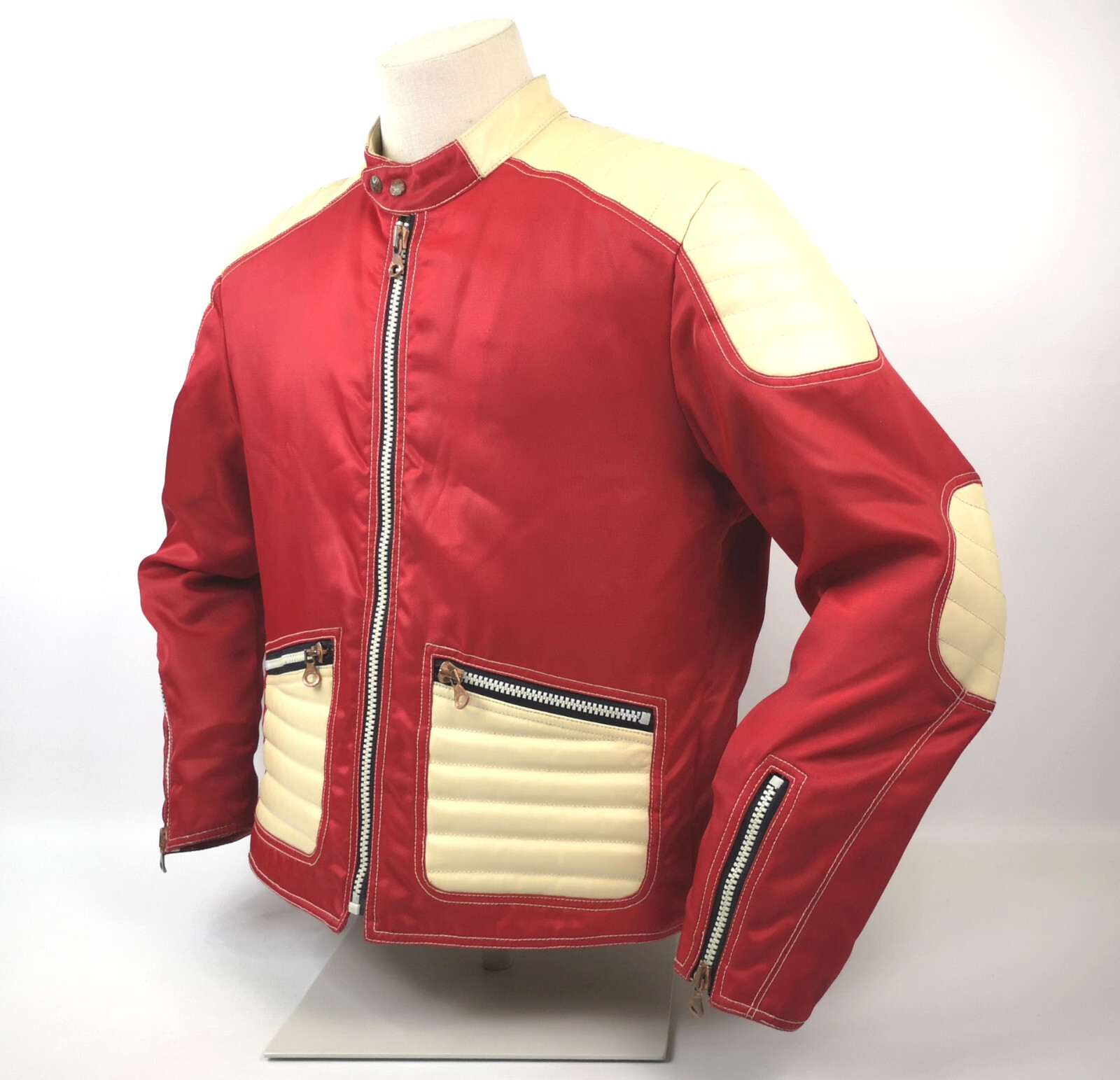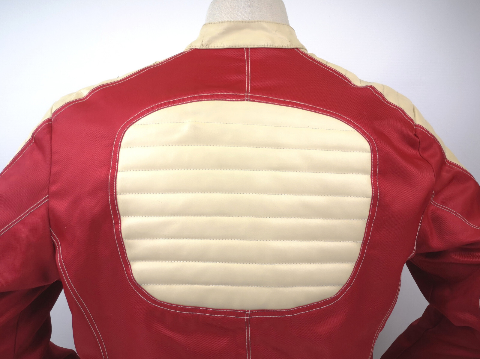 Diesel 700 Jacke Leder Nylon Mix rot /creme Gr. L 90er vintage Biker