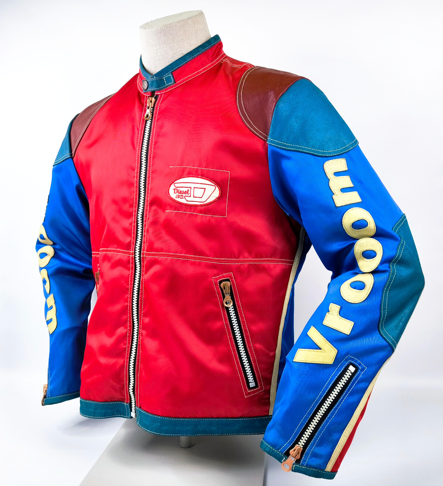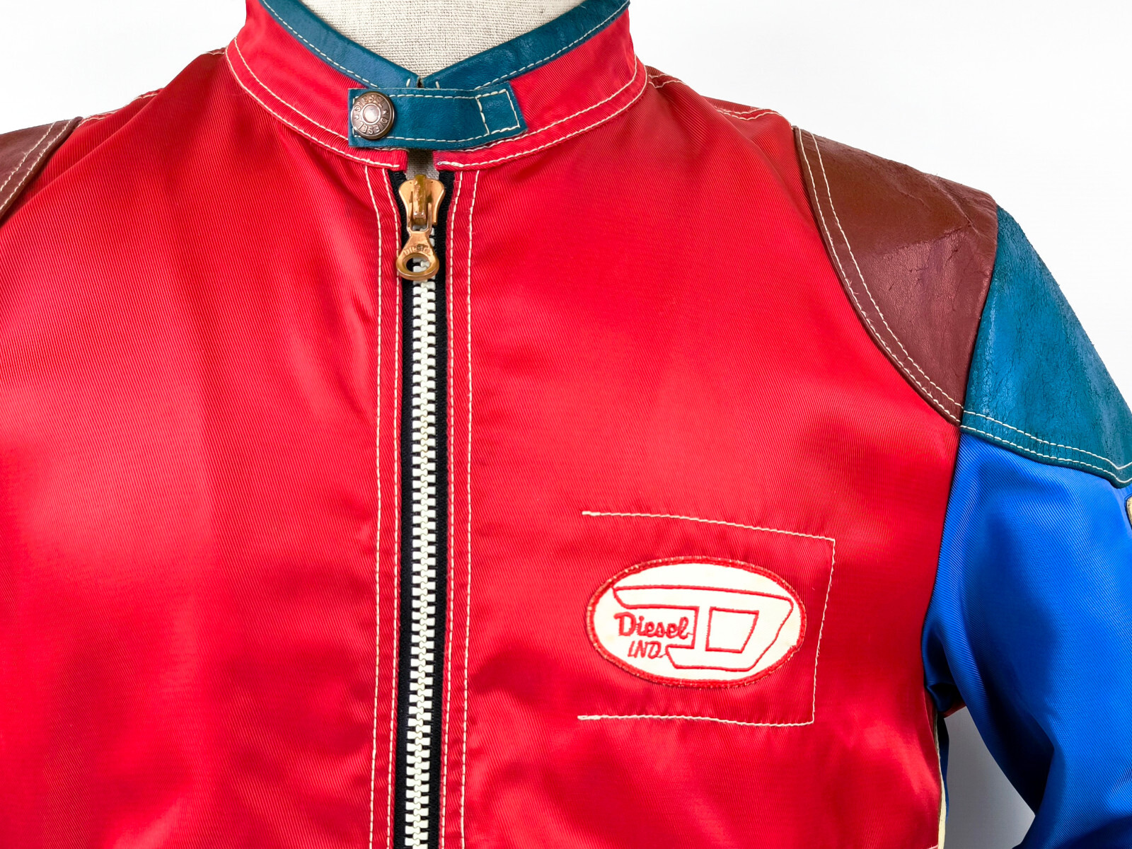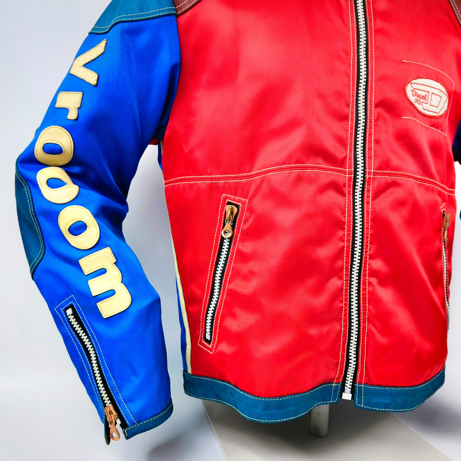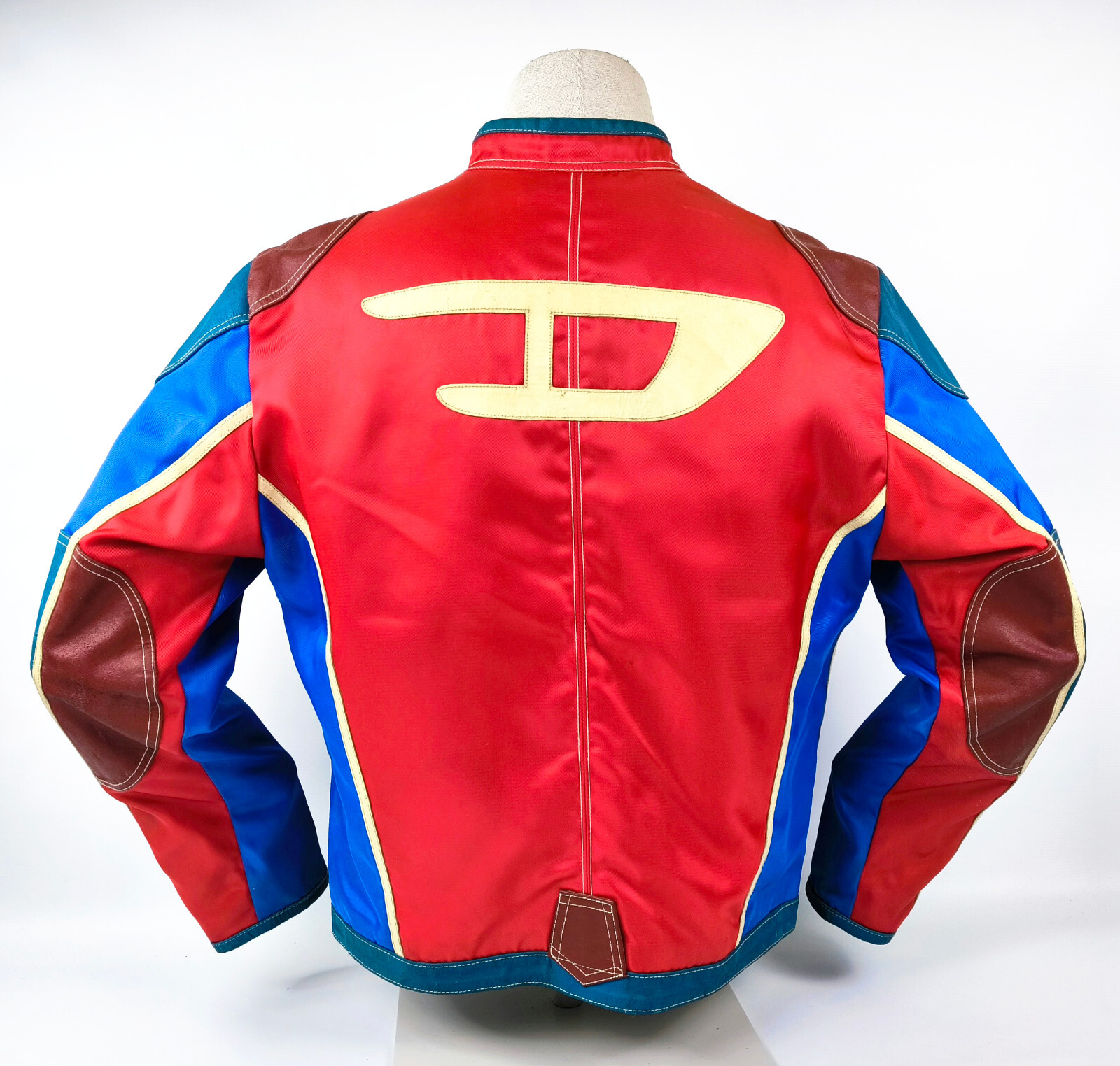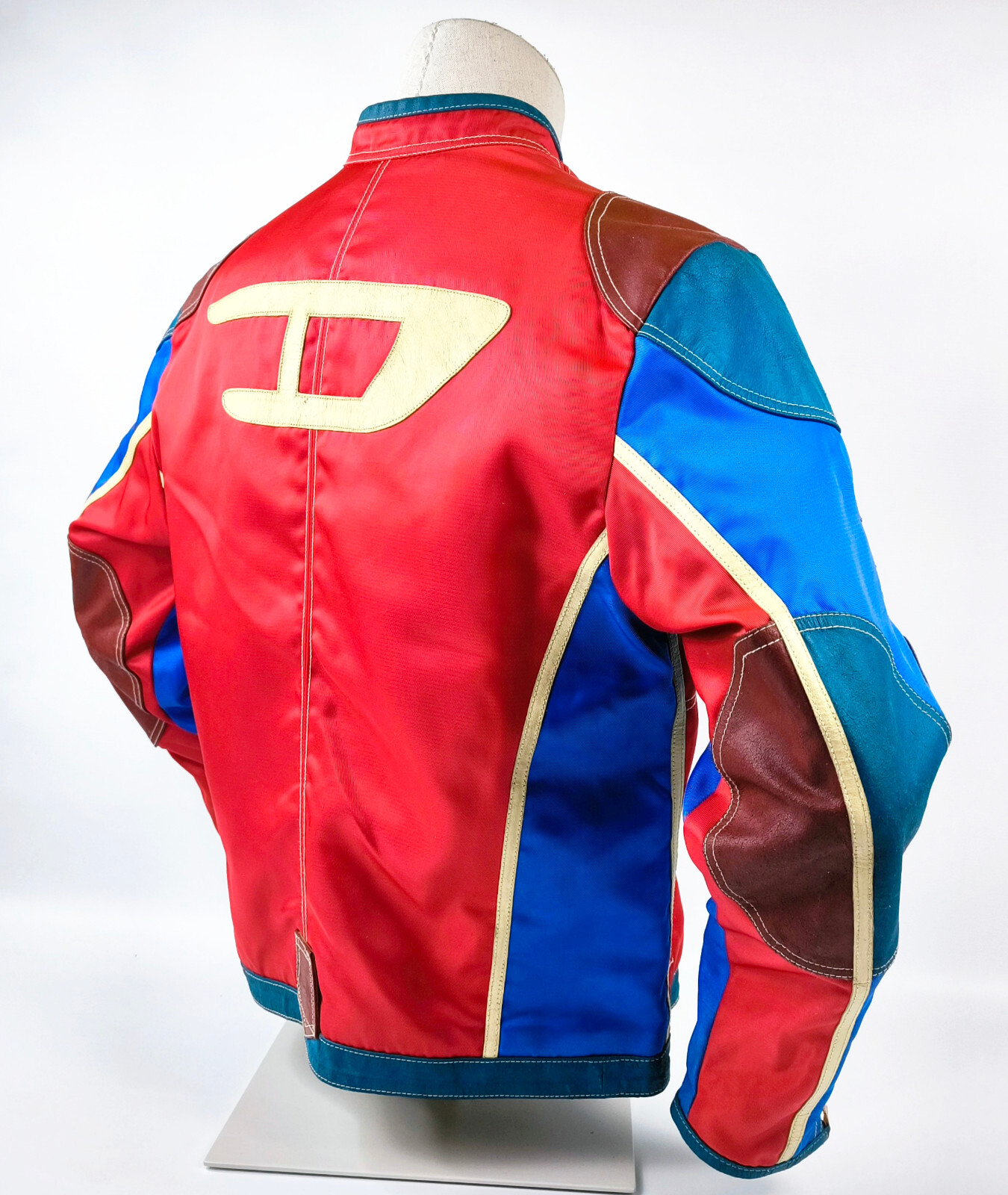 "Diesel Jacke Vrooom Leder Nylon Mix Gr. L rot / blau / creme 90er vintage Biker"