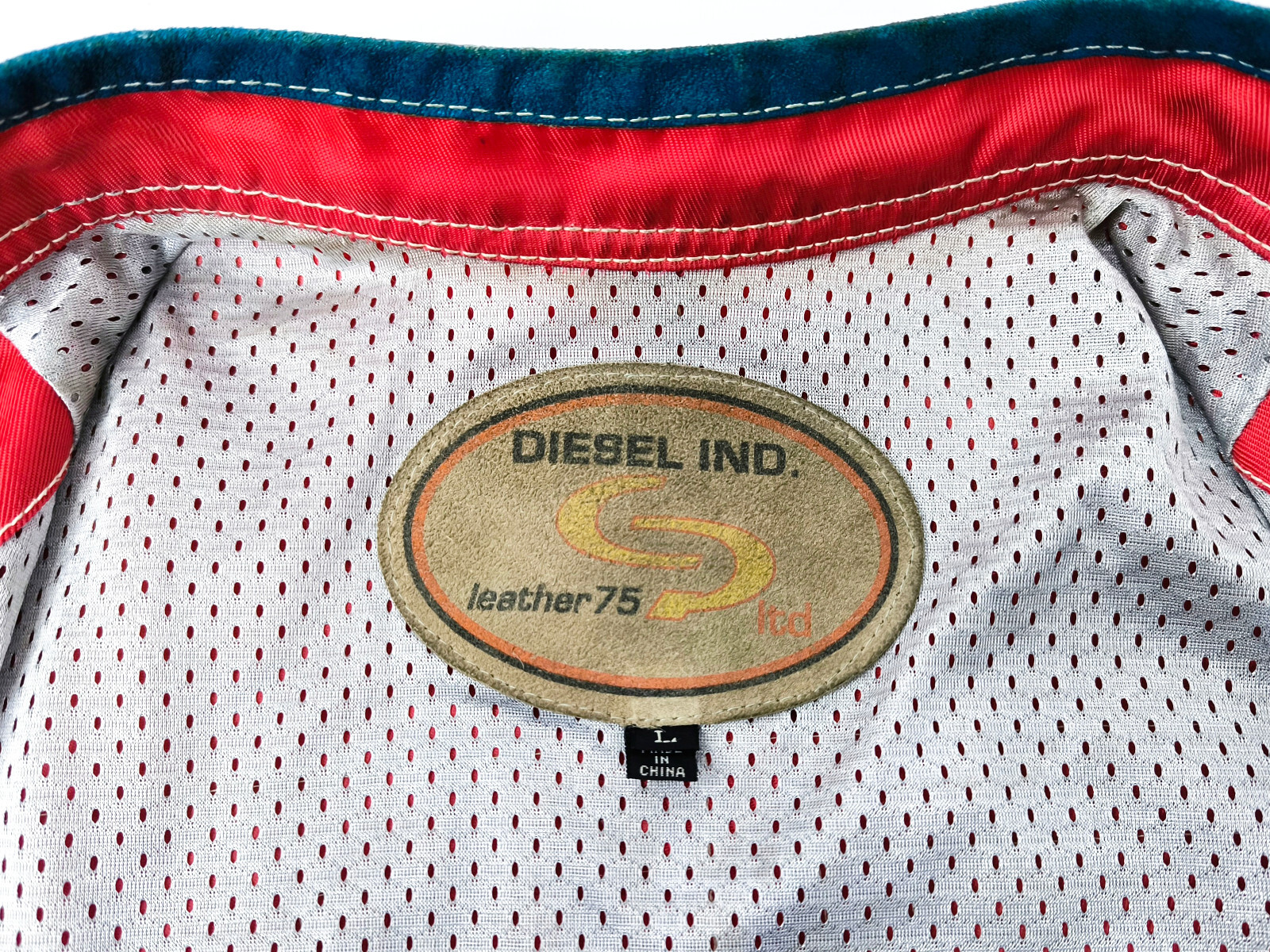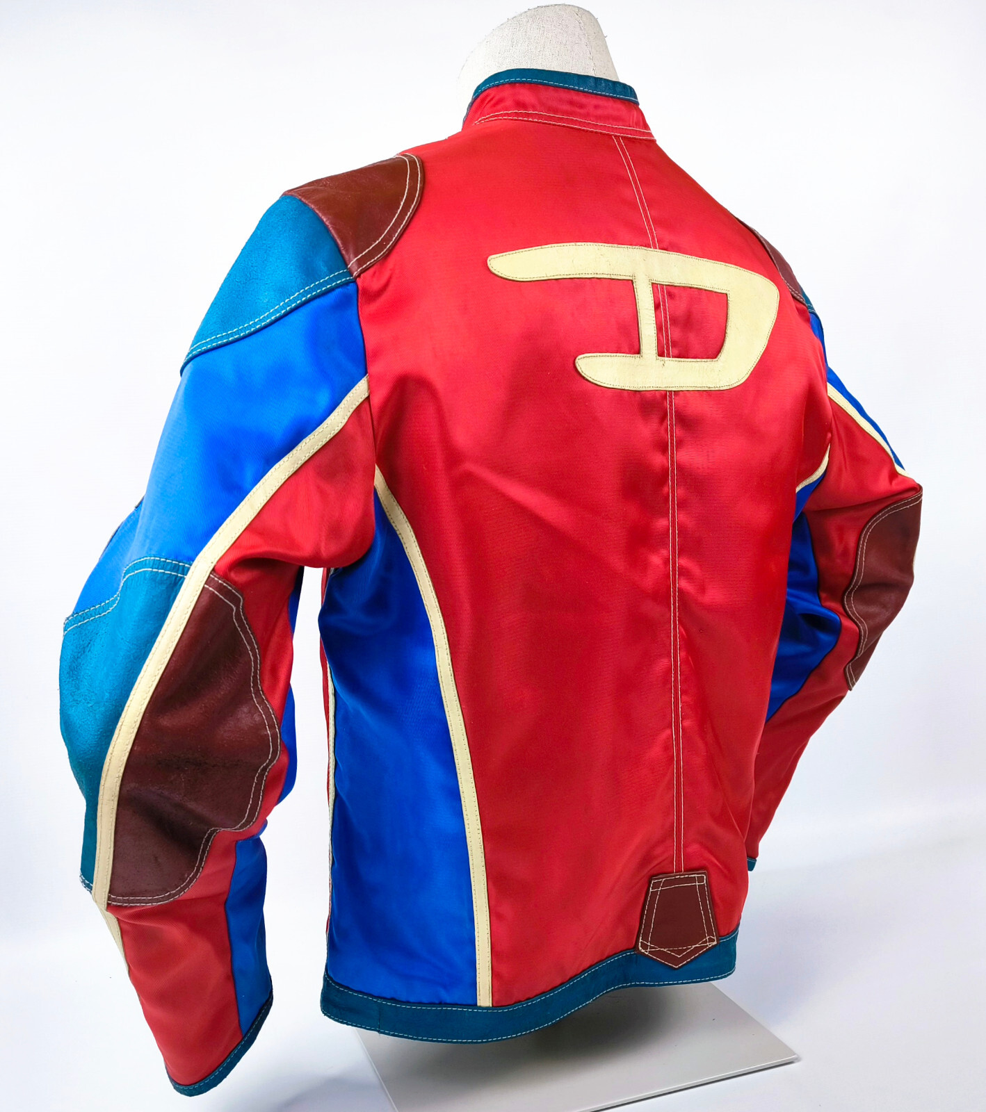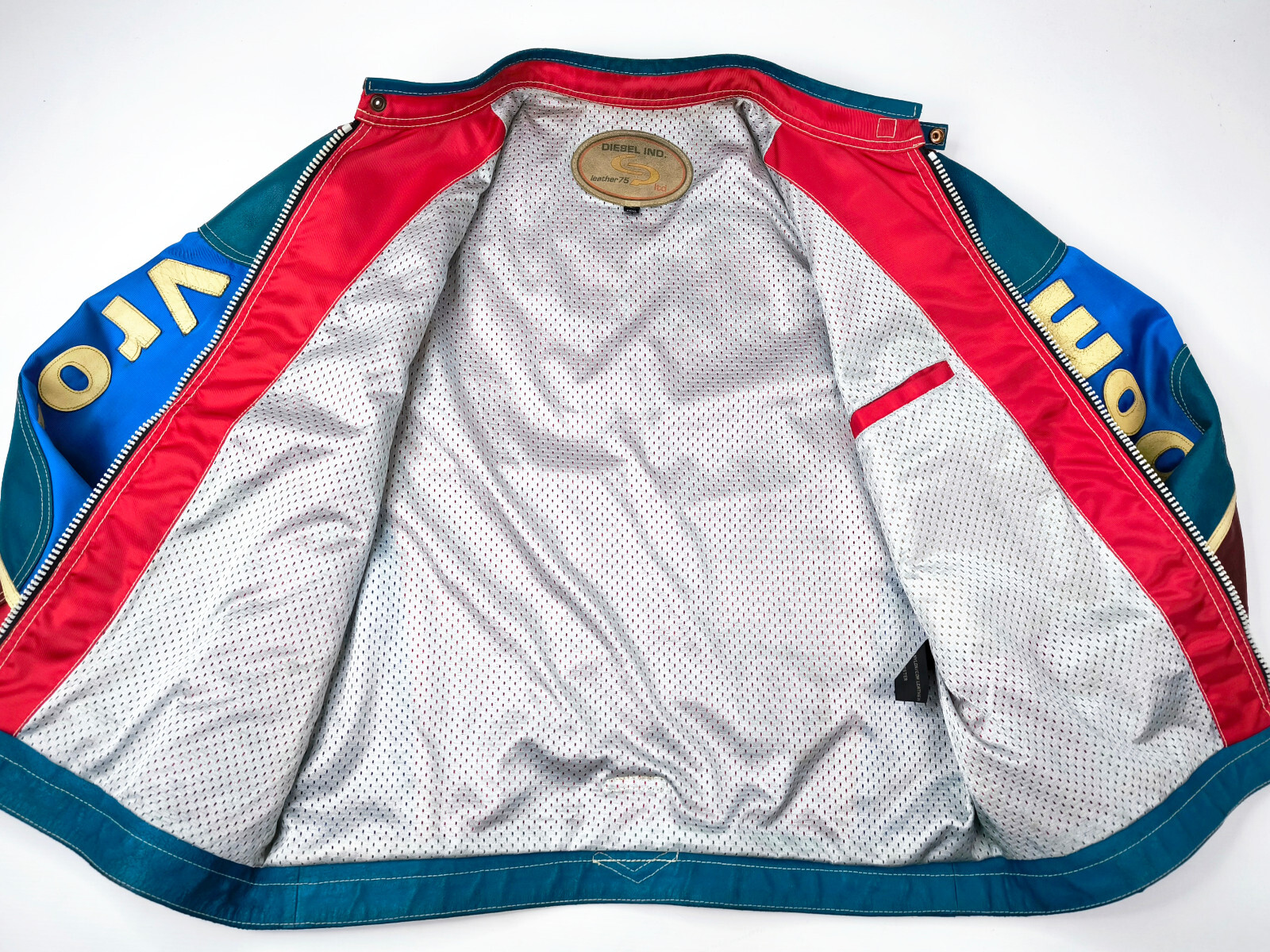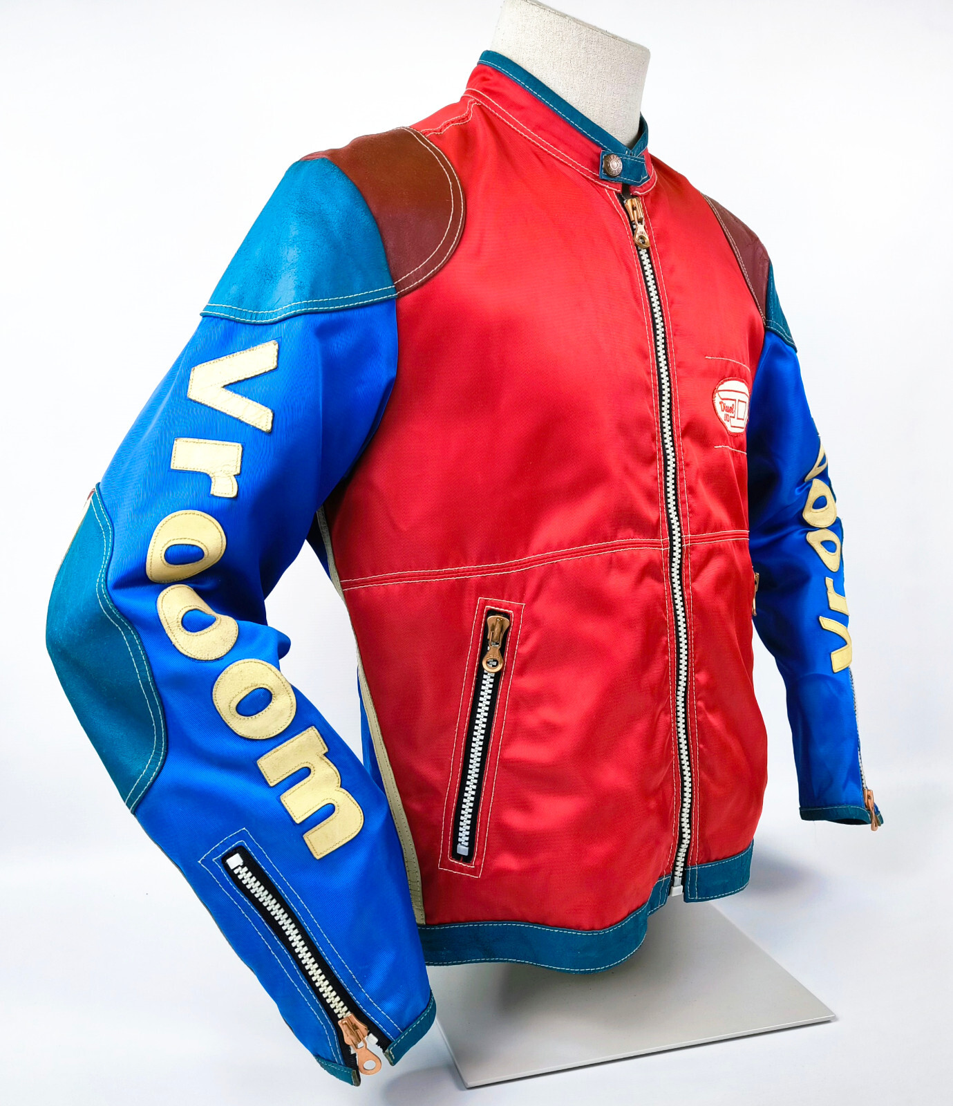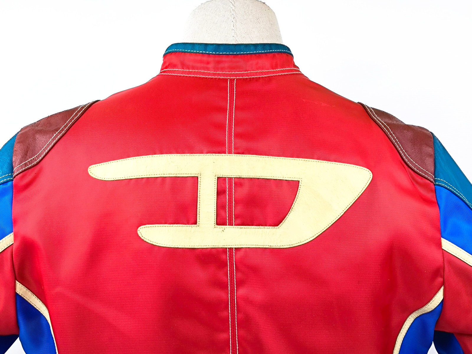 "Diesel Jacke Vrooom Leder Nylon Mix Gr. L rot / blau / creme 90er vintage Biker"
