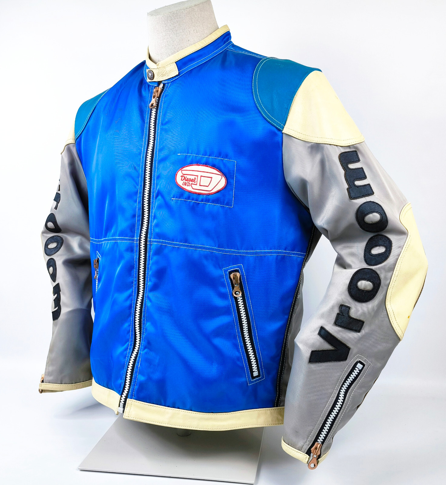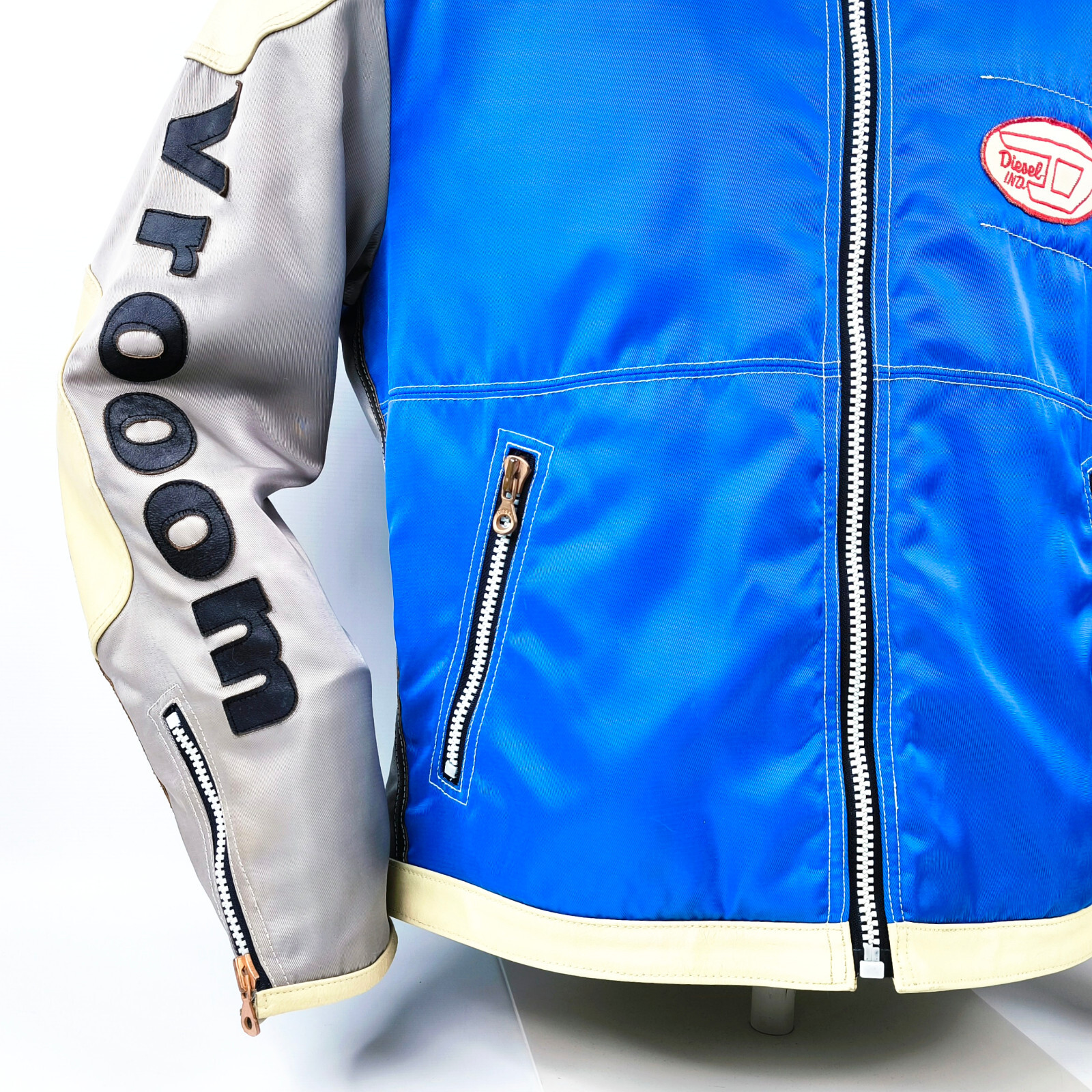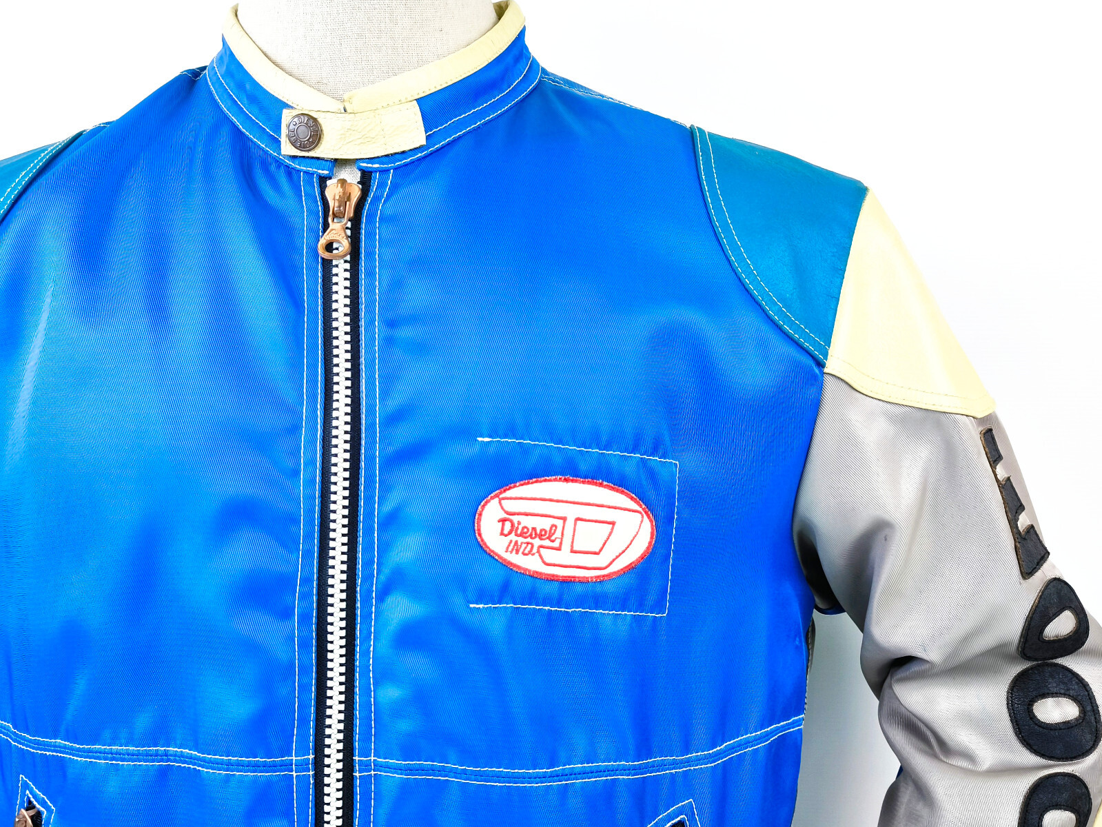 "Diesel Jacke Vrooom Leder Nylon Mix Gr. XL blau / silber 90er vintage Biker"