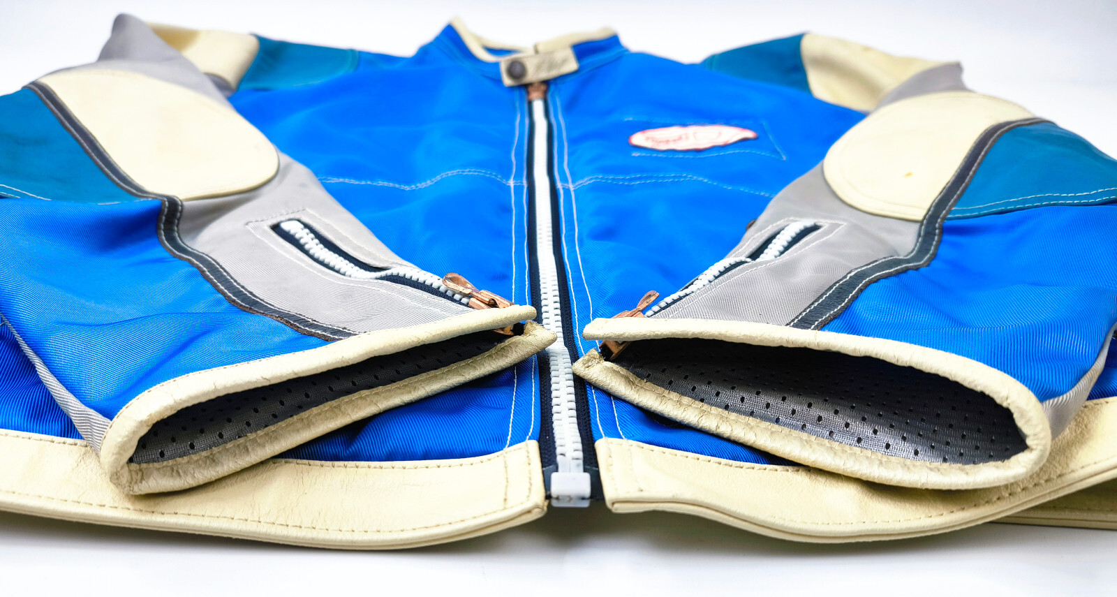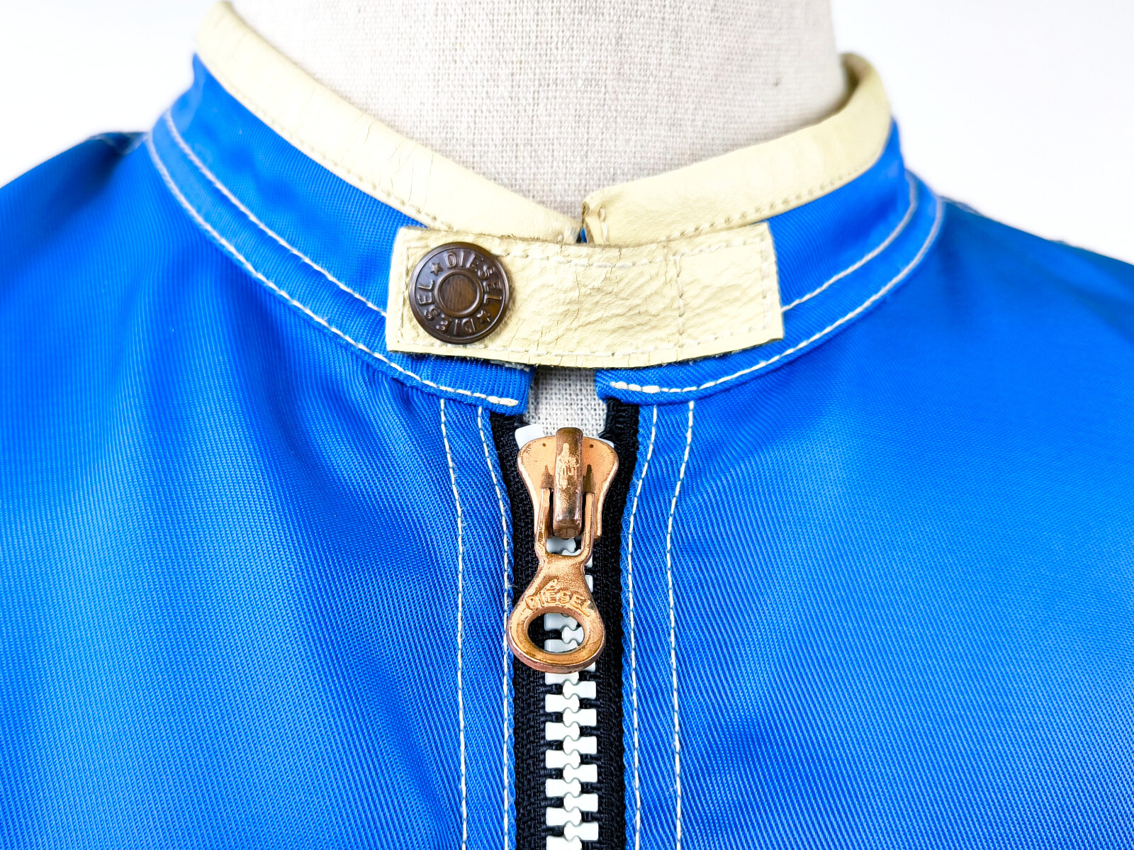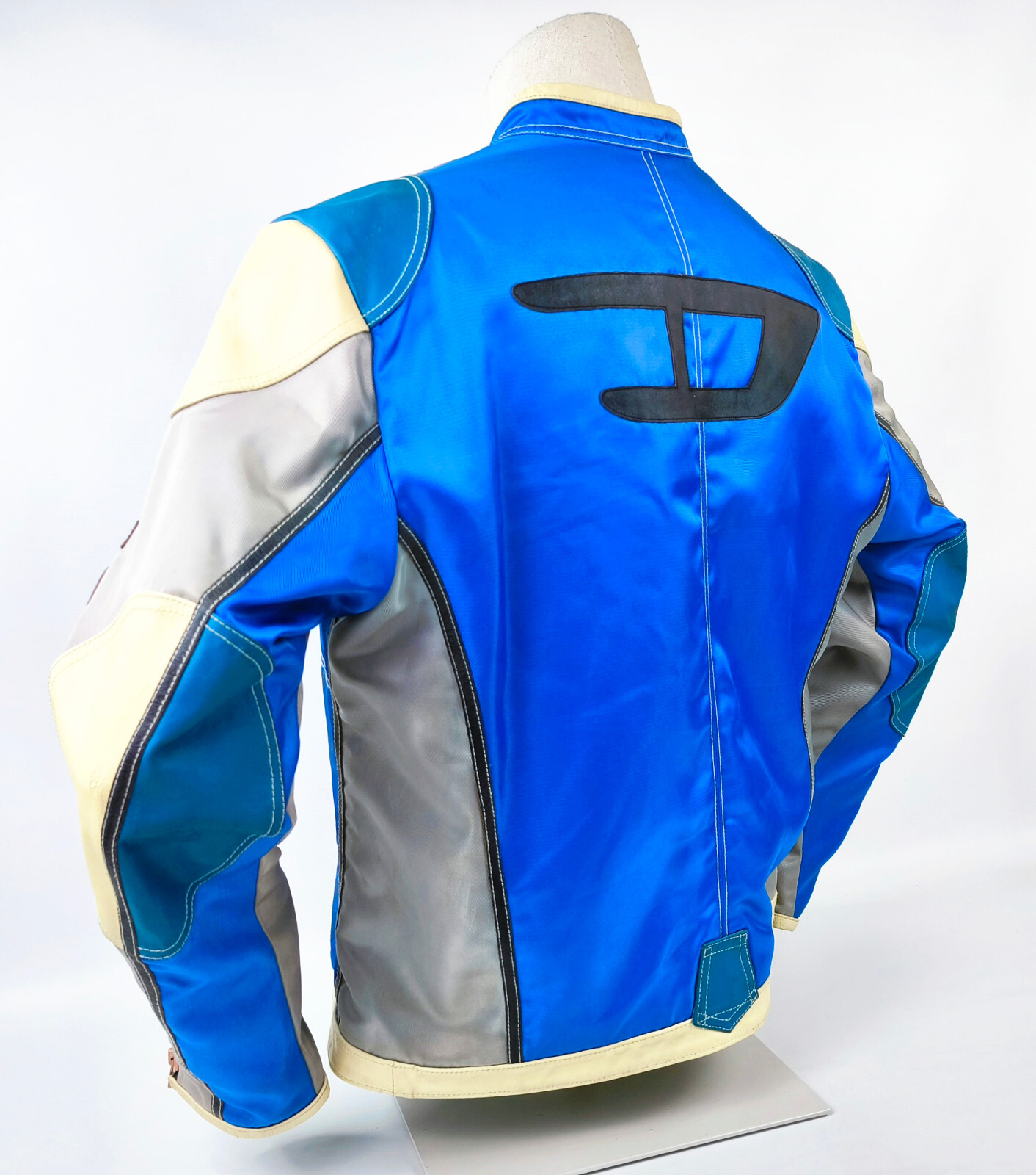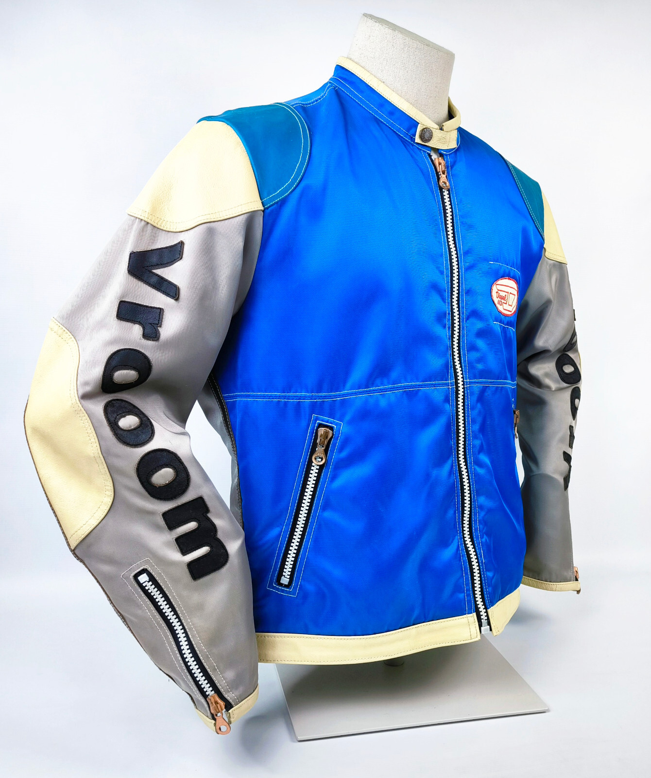 "Diesel Jacke Vrooom Leder Nylon Mix Gr. XL blau / silber 90er vintage Biker"