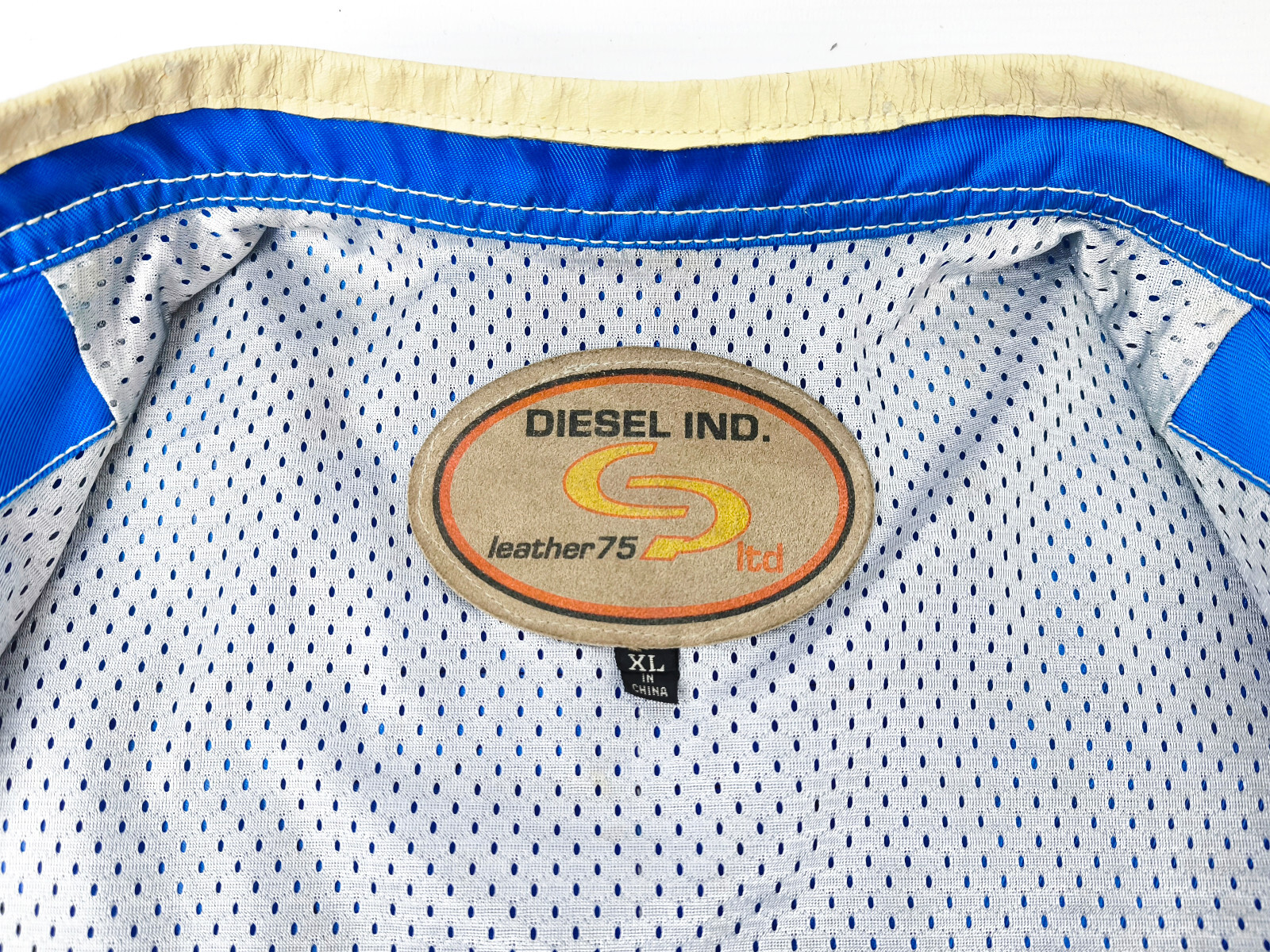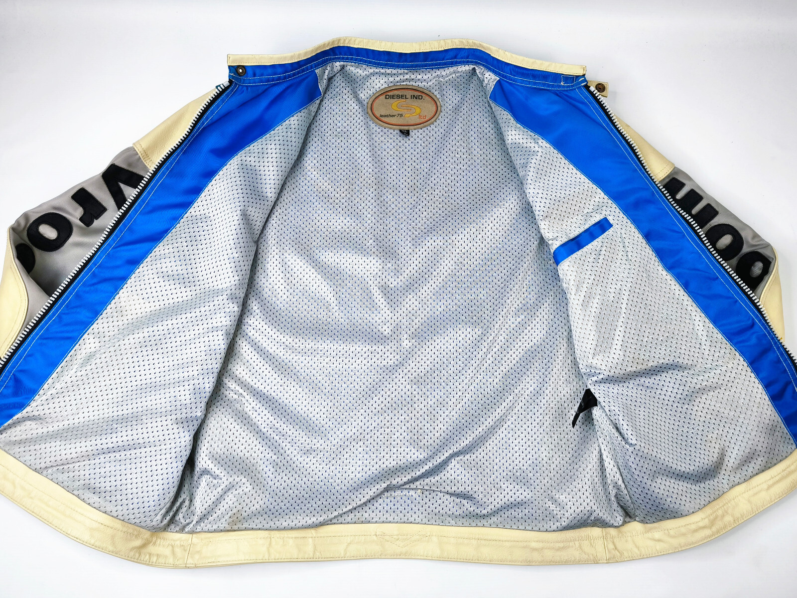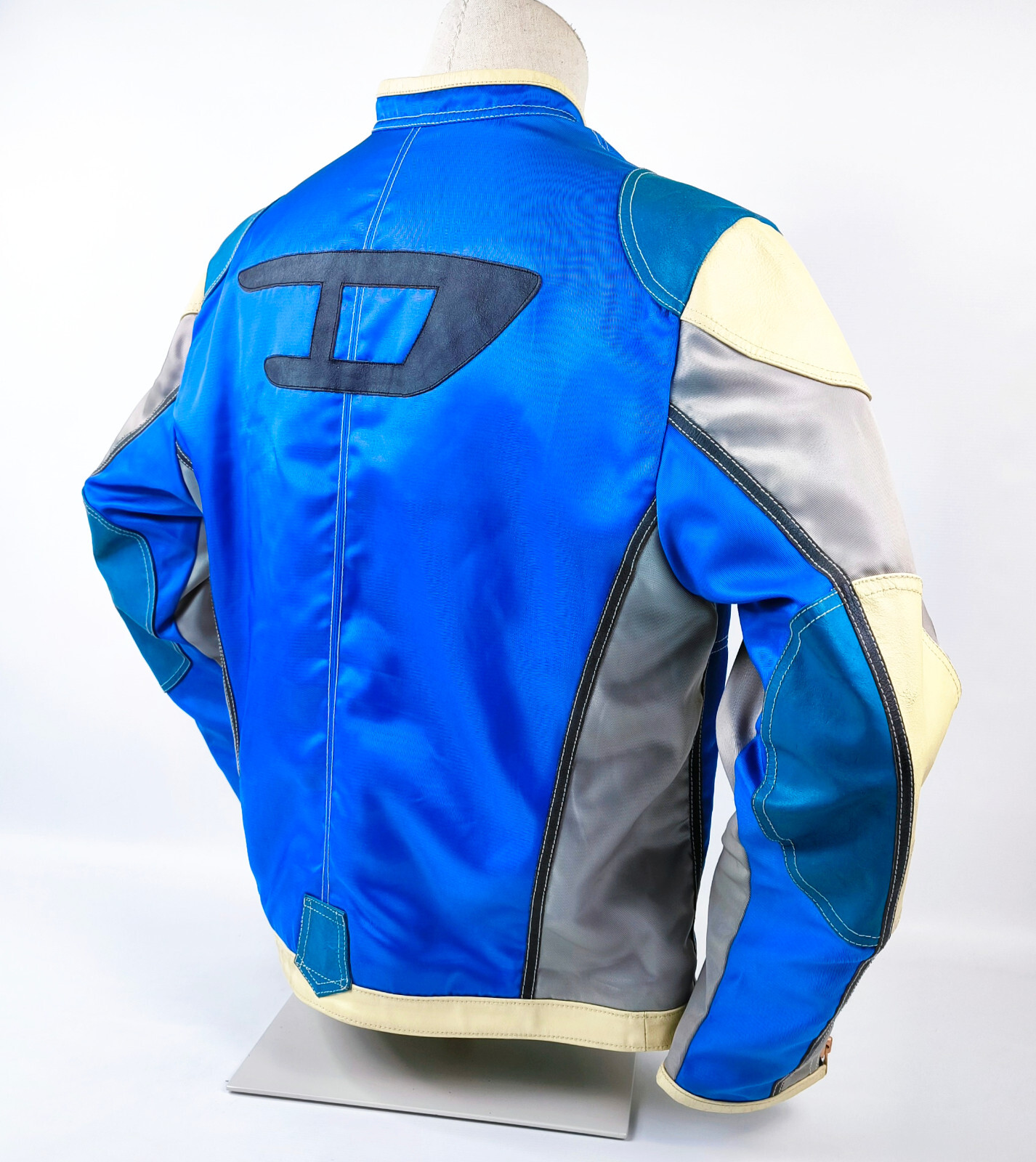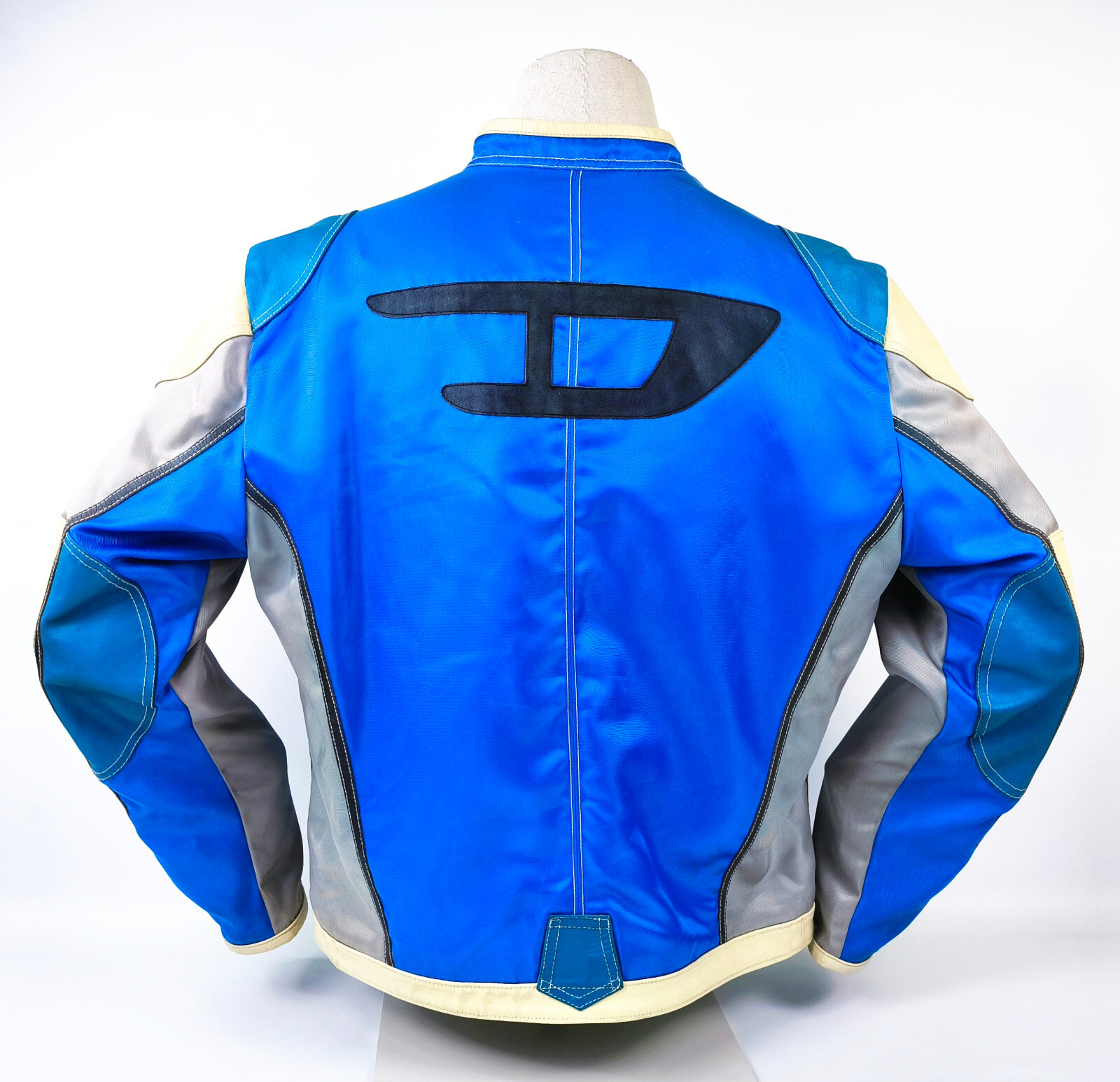 Preisvorschlag für Diesel Jacke Vrooom Leder Nylon Mix Gr. XL blau / silber 90er vintage Biker