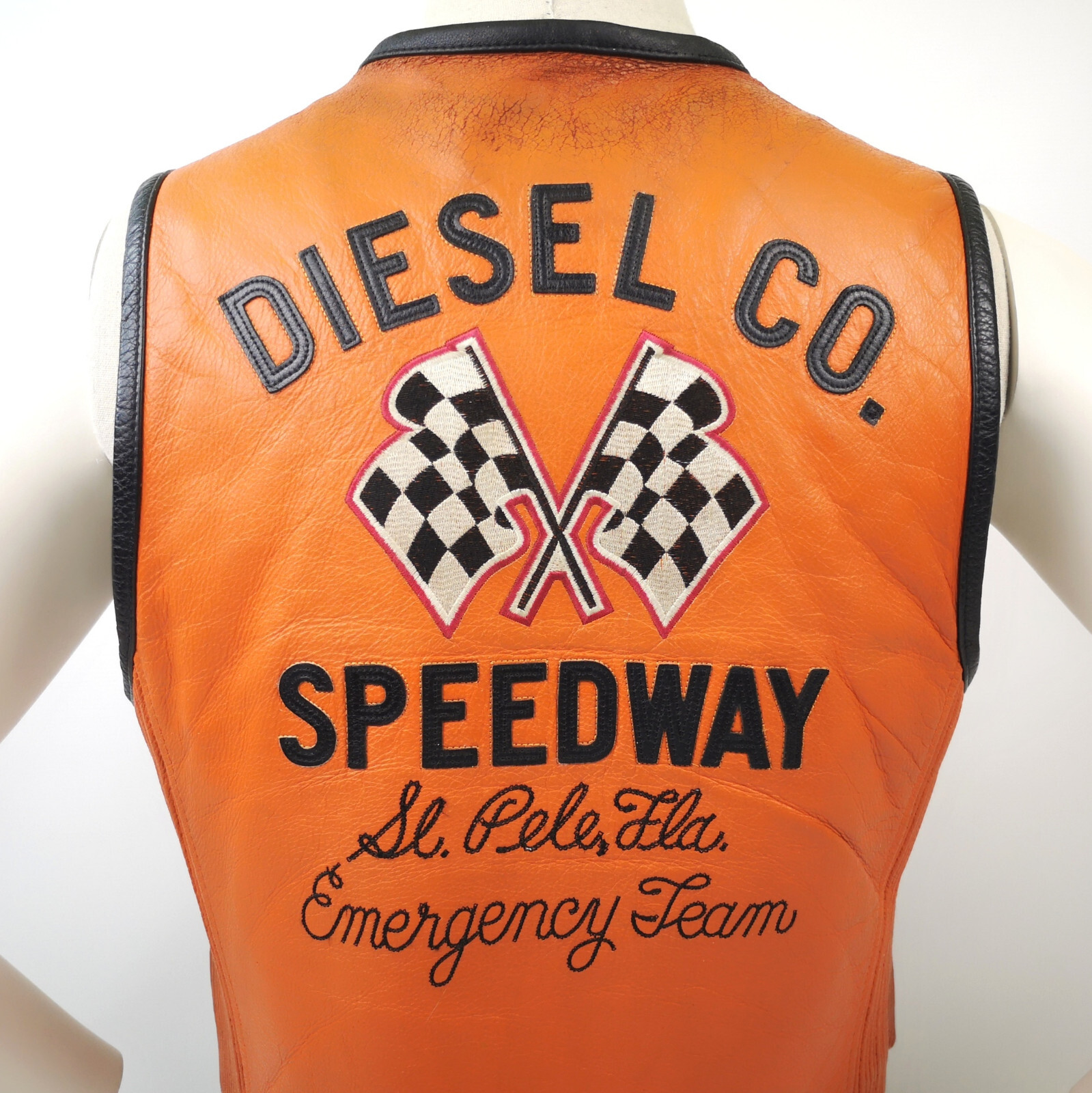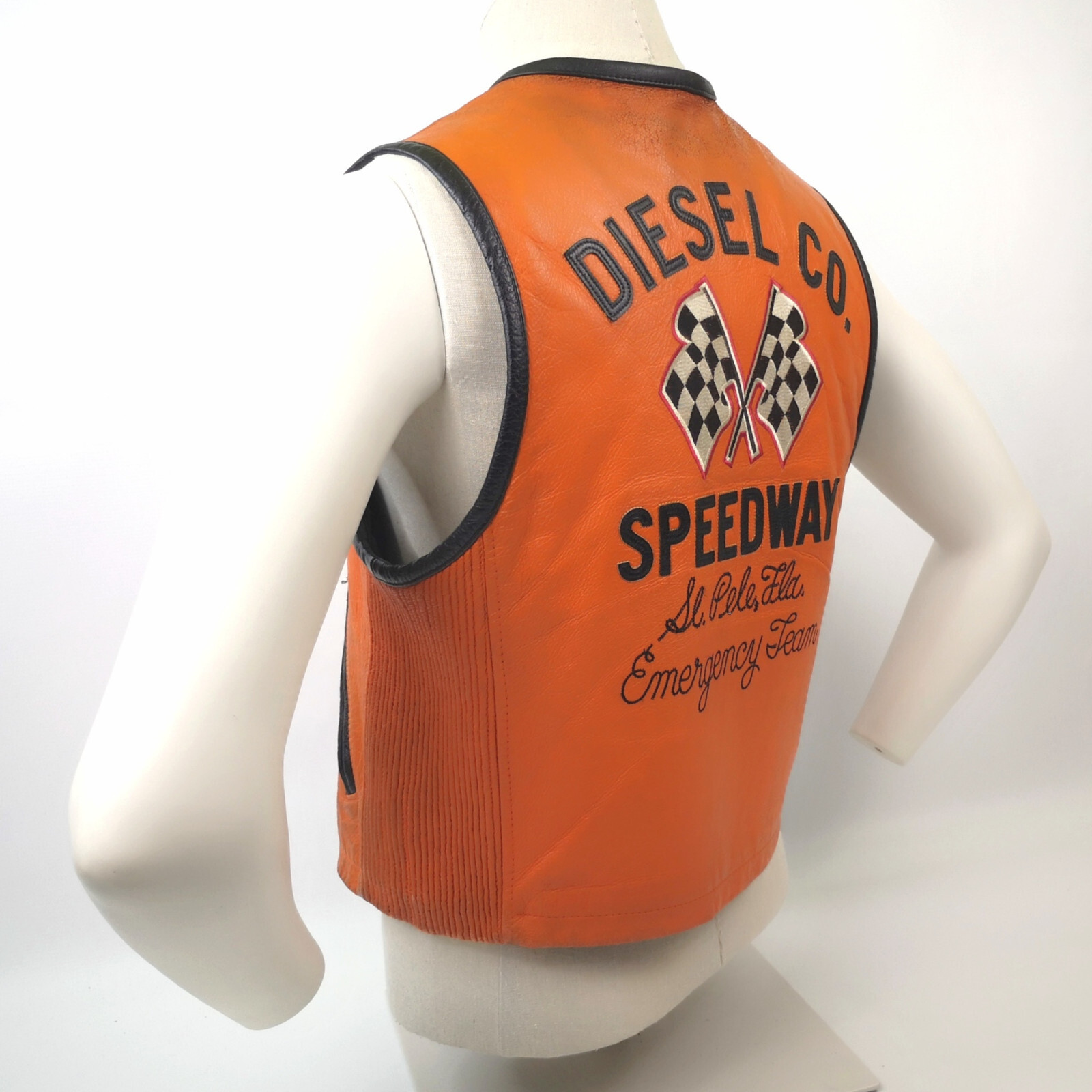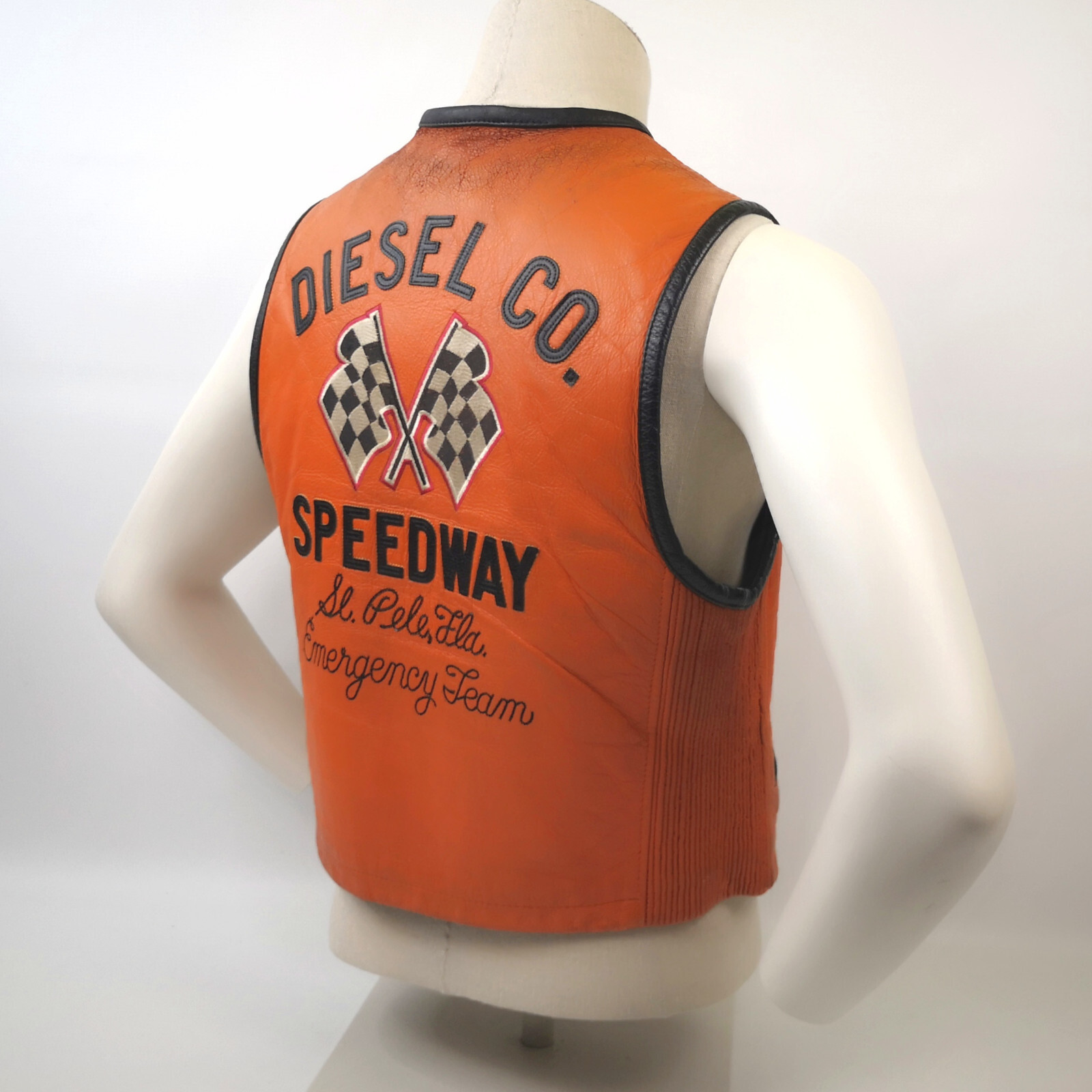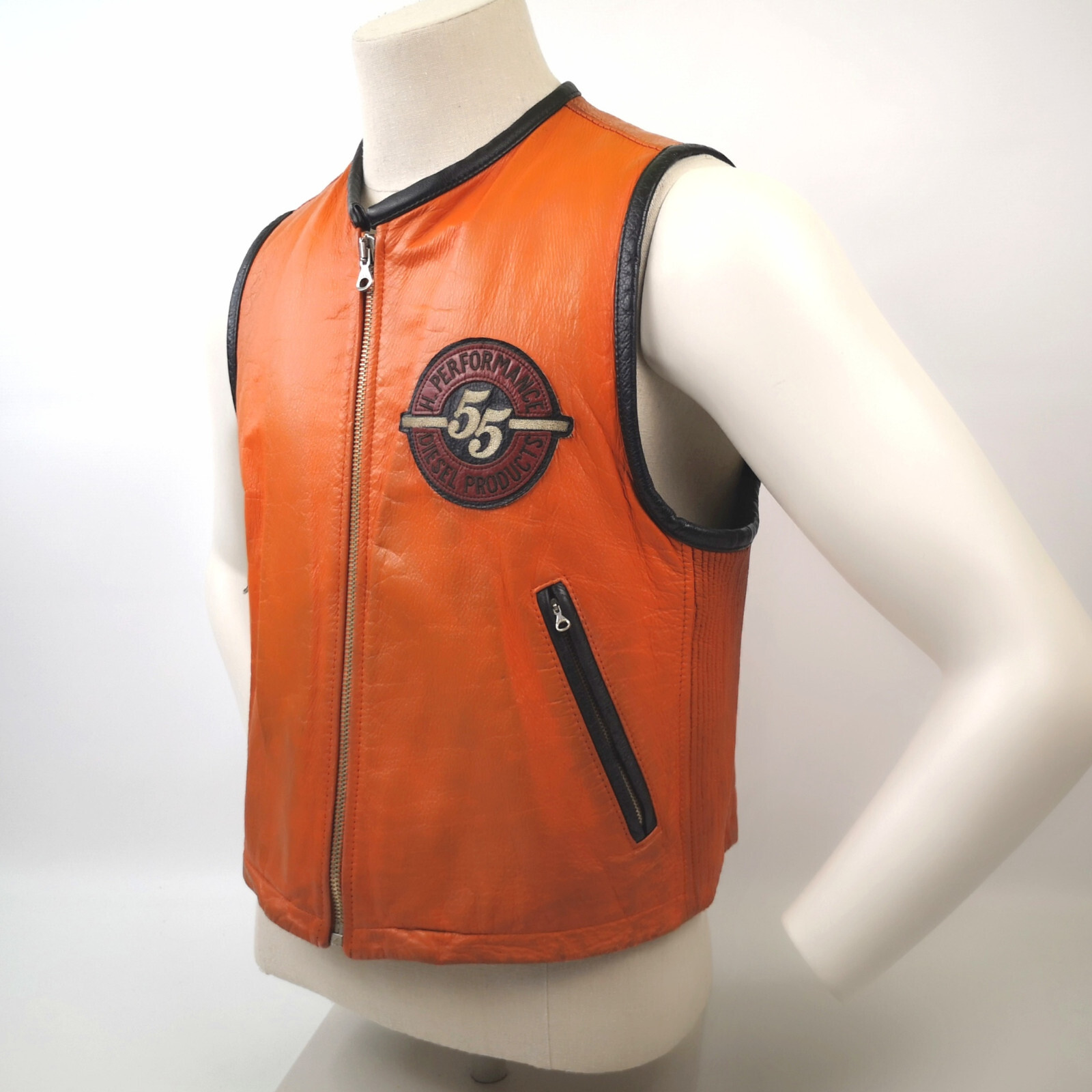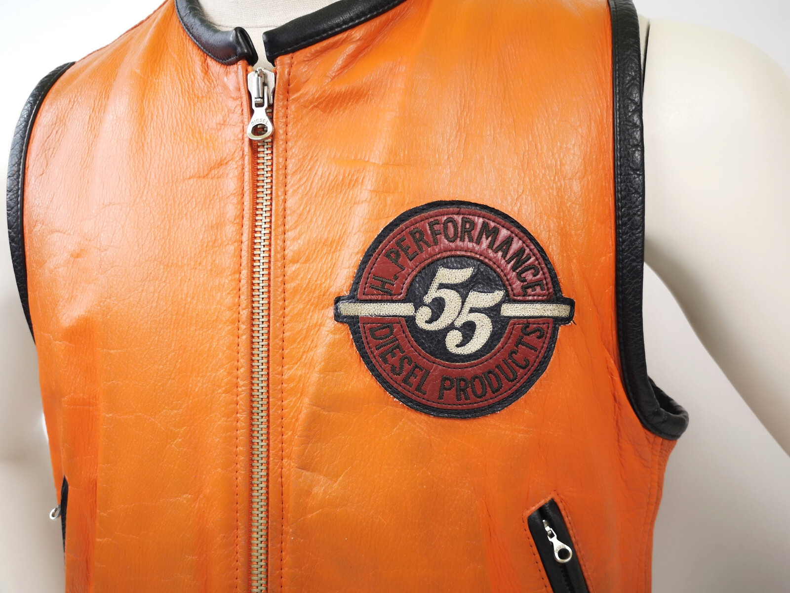 Diesel Leder Weste Performance 55 Speedway orange Gr. M 90er vintage