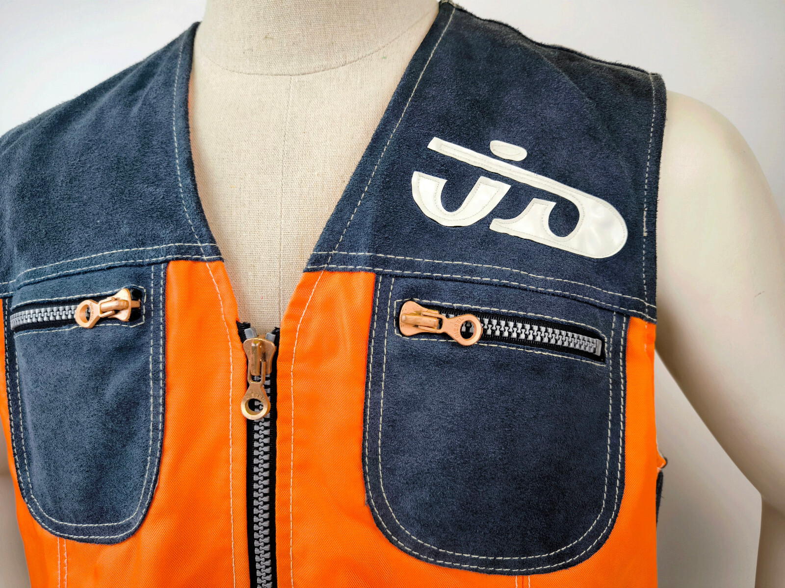 Diesel Weste Rebel Leder Nylon Mix orange Gr. L 90er vintage