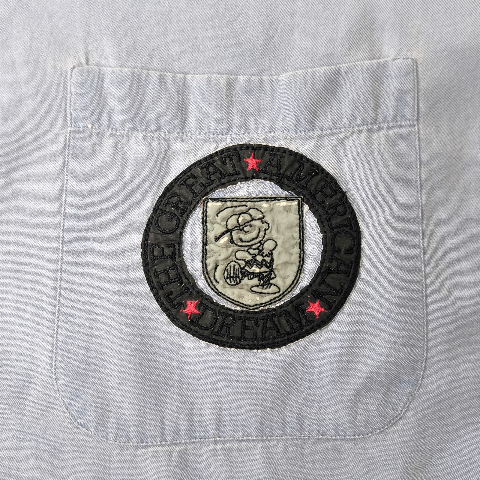 Tolles Iceberg Hemd der 1990er Jahre mit Charlie Brown Motiv auf der linken Brusttasche.