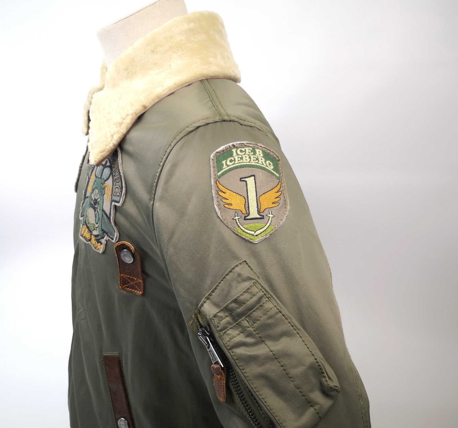 Preisvorschlag für Iceberg Herren Jacke The Boss oliv Gr. 52 (L) Webpelz Kragen