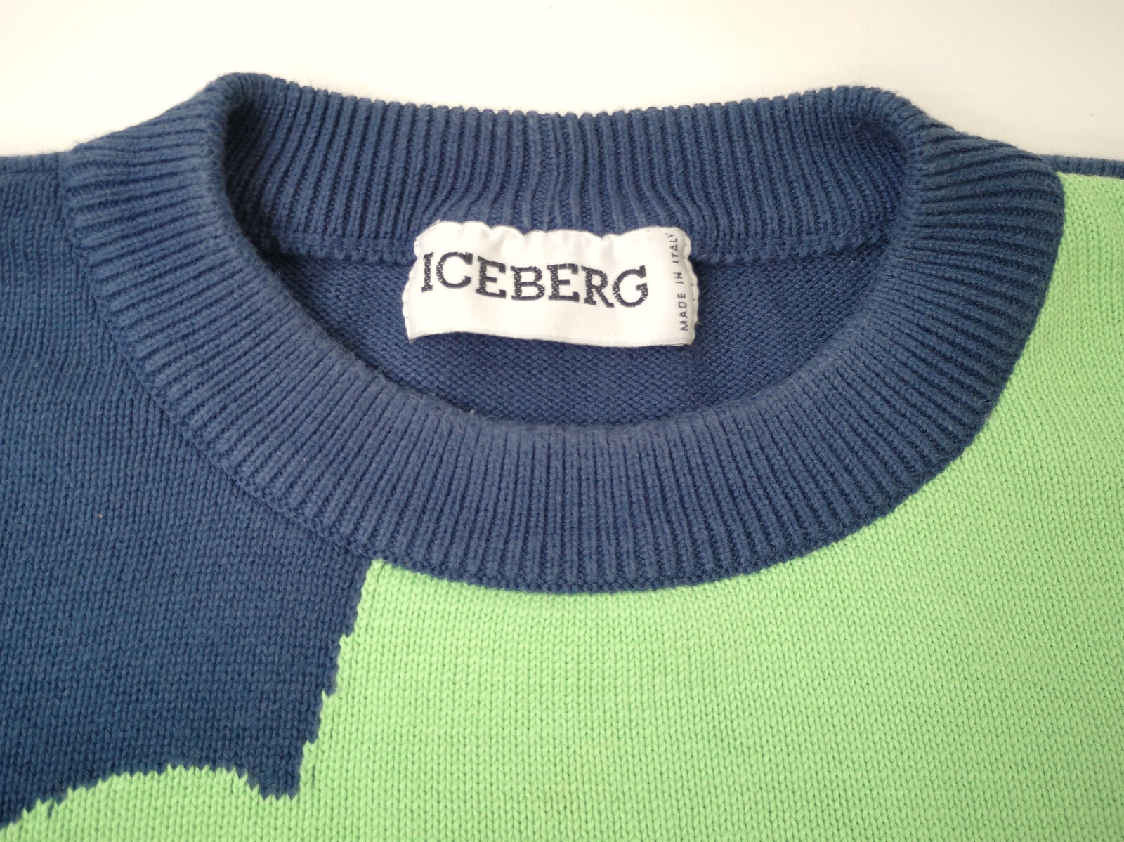 ________________________________________Marke: Iceberg (Sport Ice)Größe: V (XL)Farbe: mehrfarbig Zustand: neu ________________________________________Beschreibung:Der Pullover ist neu und ungetragen.Original Sport Ice / Iceberg Pullover der 1990er Jahre.Made in Italy.Absolut ungetragen !Im Pullover ist die Größe V angegeben. Im Vergleich mit anderen Iceberg Pullovern von uns fällt er wie eine sehr gute Größe XL.Bitte die Maße prüfen für eine perfekte Passform.________________________________________Die ca. Maße sind wie folgt:Brustbreite von Achsel zu Achsel: 60cmÄrmellänge ab Höhe Schulter: 72cmRückenlänge inkl. Kragen: 72cm________________________________________Material lt. Innenetikett:Oberstoff: 100% Schurwolle ________________________________________ Pflegeanleitung:Handwäsche kalt / professionelle Textilreinigung