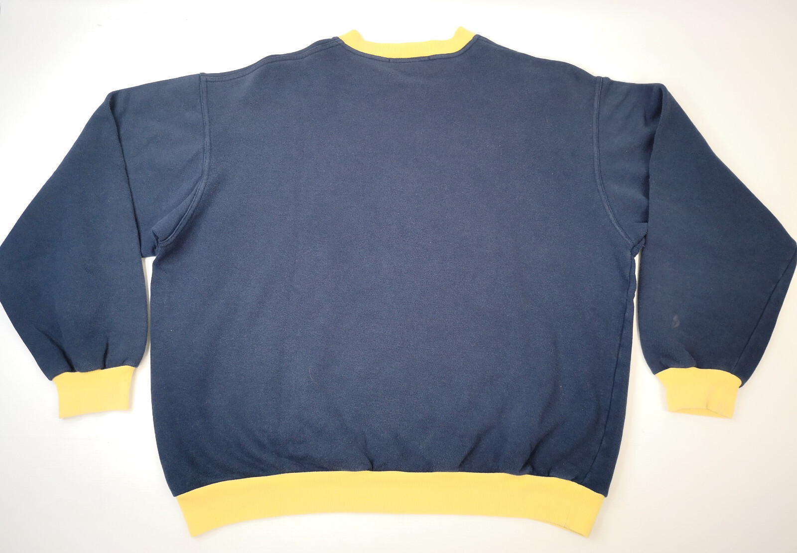 ________________________________________Marke: Iceberg Größe: M / LFarbe: dunkelblau / gelb Zustand: getragen________________________________________Beschreibung:Der Pullover wurde getragen und befindet sich in einem super schönen Zustand.Es sind nur wenige und dann kleine Trage- und Gebrauchsspuren zu erkennen.Am linken Ärmel zusätzlich mit kleinem Iceberg Logo.Made in Italy.Im Pullover ist die Größe L angegeben. Im Vergleich mit anderen Iceberg Pullovern von uns, fällt er etwas kleiner und hat eine ganz leichte Tendenz zur Größe M.Bitte die Maße prüfen für eine perfekte Passform.________________________________________Die ca. Maße sind wie folgt:Brustbreite von Achsel zu Achsel: 61cmÄrmellänge ab Höhe Schulter: 67cmRückenlänge inkl. Kragen: 68cm________________________________________Material lt. Innenlabel:Oberstoff: 85% Baumwolle / 15% ViscosePflegeanleitung:Maschinenwäsche 30 Grad