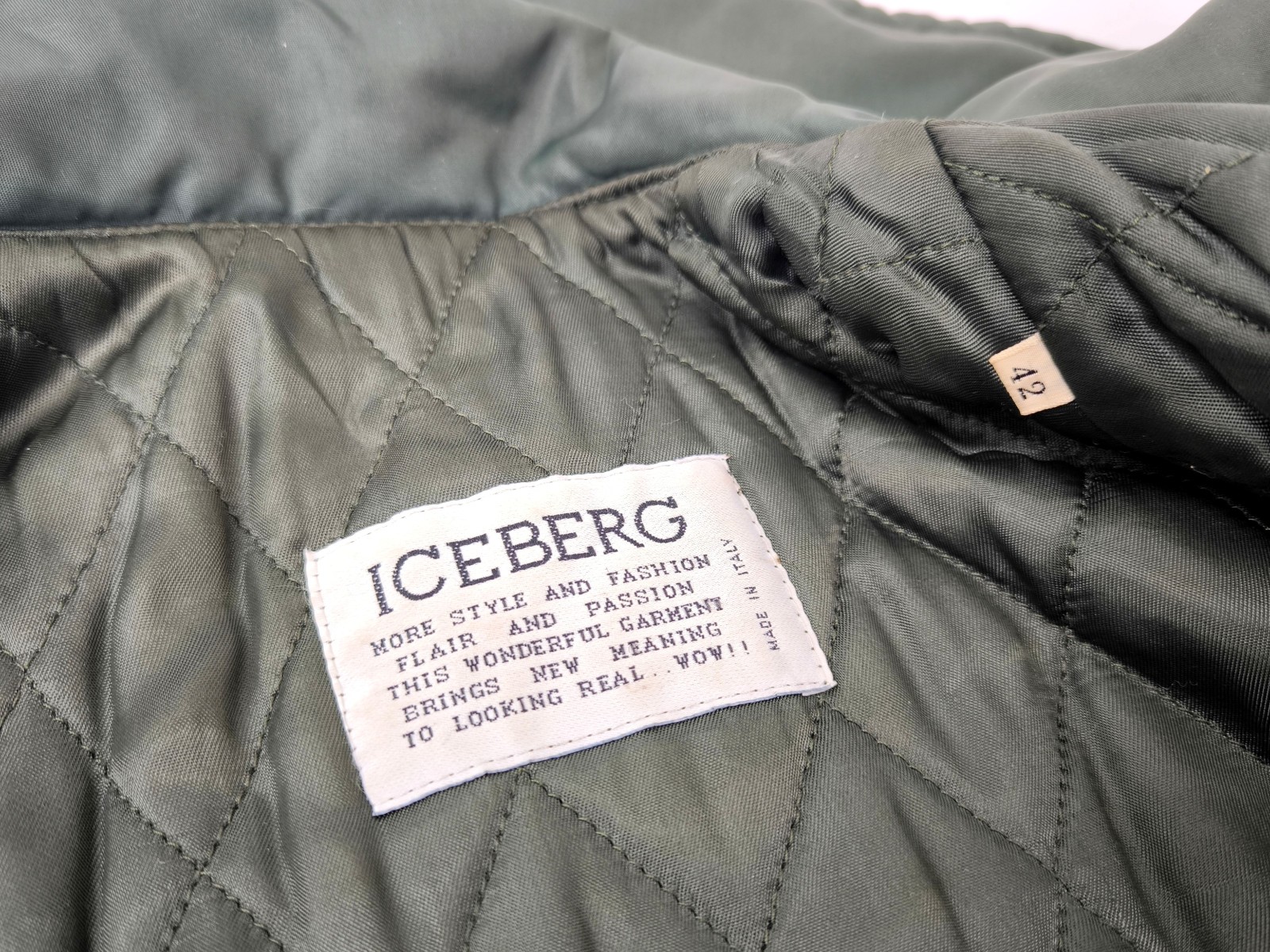 _______________________________________Marke: IcebergGröße: LFarbe: braun / grün Zustand: sehr gut_______________________________________Beschreibung:Die Jacke / der Parka befindet sich in einem sehr guten Zustand mit nur wenigen und kleinen Tragespuren.Außen am Lammleder mit leichter und wunderschöner Patina und sehr schön erhalten.Die Außenärmel sind im Innenbereich noch zusätzlich noch mit Wildleder verarbeitet.Innenfutter sehr gut im Zustand.Eine der teuersten Iceberg Modelle der 1990er Jahre im super schönen Zustand !In der Jacke steht keine Größe.Im Vergleich mit ähnlichen Iceberg Jacken / Parka von uns, fällt sie wie eine Größe L. Bitte die Maße prüfen für eine perfekte Passform._______________________________________Die ca. Maße sind wie folgt: Brustbreite von Achsel zu Achsel: 61cm Ärmellänge ab Höhe Schulter: 70cm Rückenlänge inkl. Kragen und Bund: 85cm _______________________________________Material lt. Etikett: Oberstoff:39% Lammleder, 33% Baumwolle, 24% Leder, 4% andere MaterialienInnenfutter:100% ViscoseFüllung / Wattierung:100% Polyester_______________________________________Pflegeanleitung: professionelle Textilreinigung