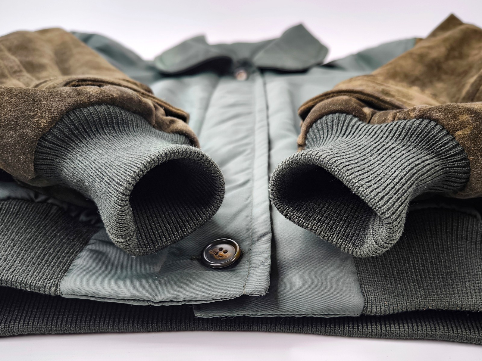 Wildleder außen an den Ärmeln mit minimaler Patina und auch hier sehr gut erhalten.