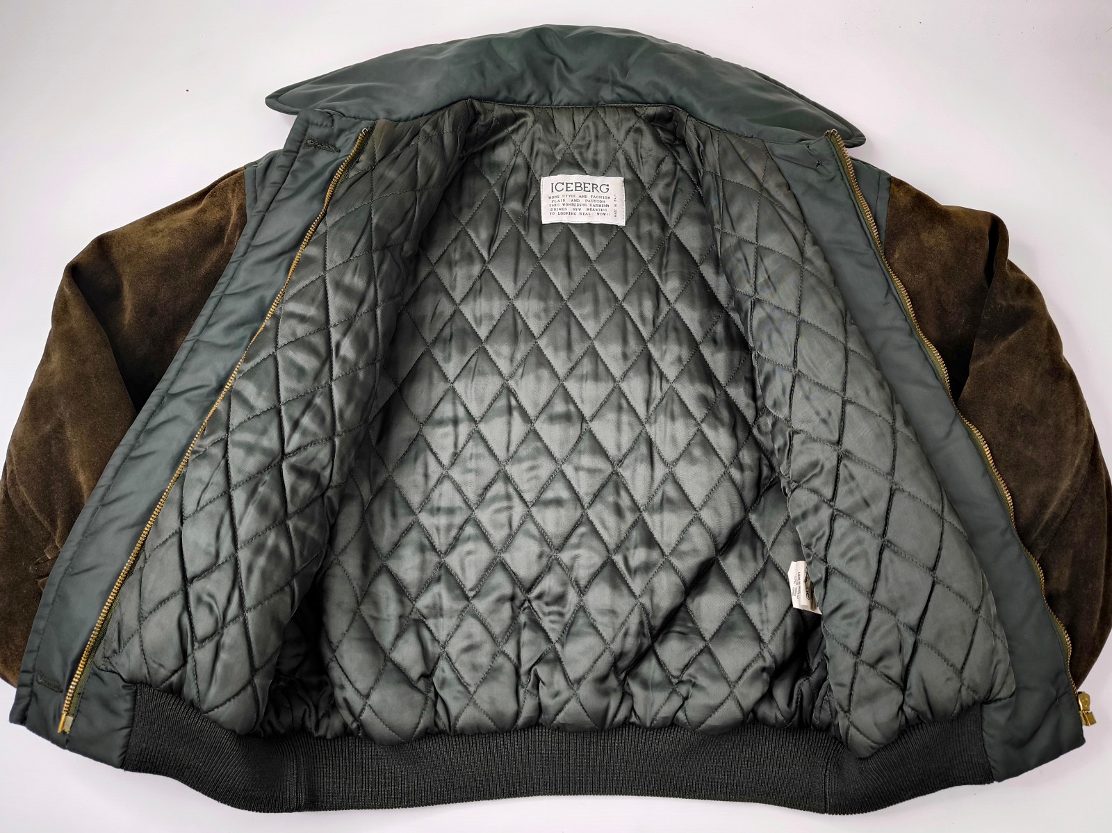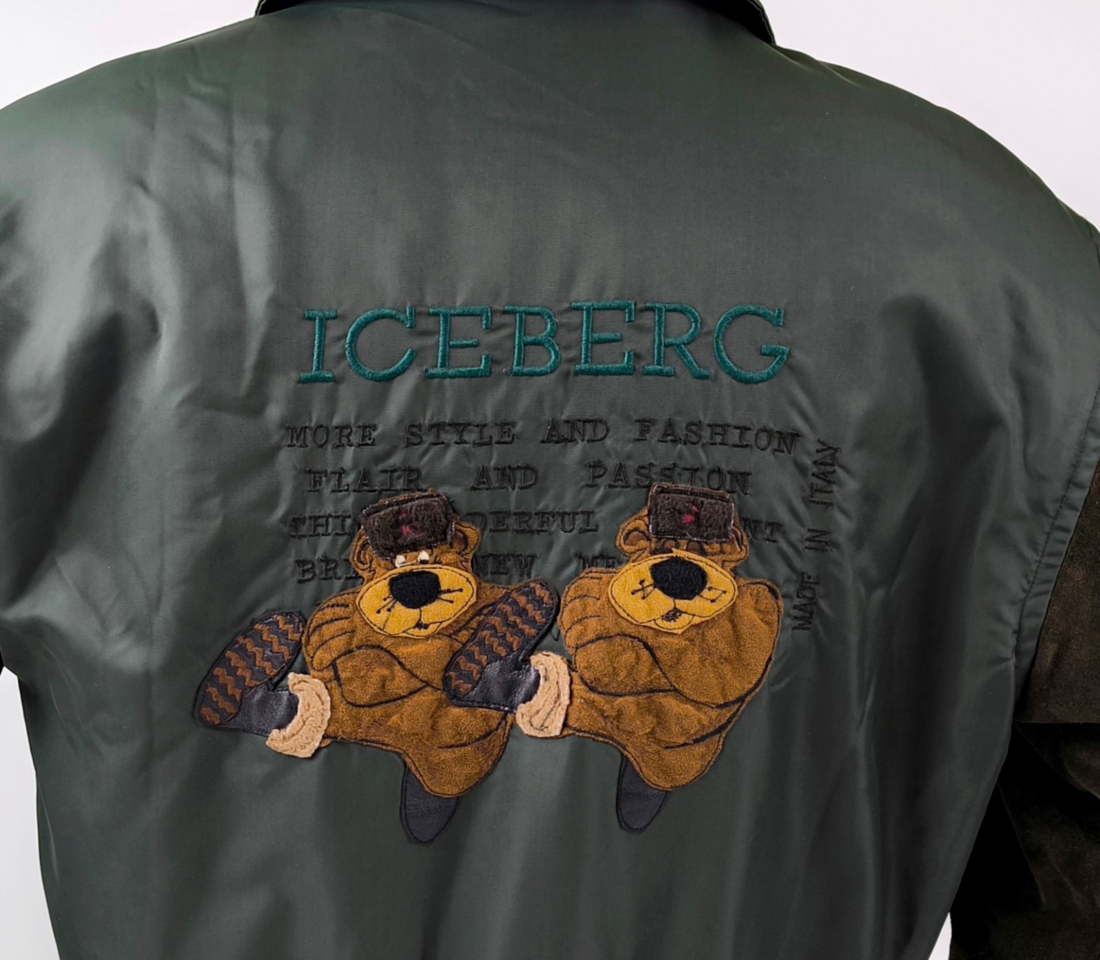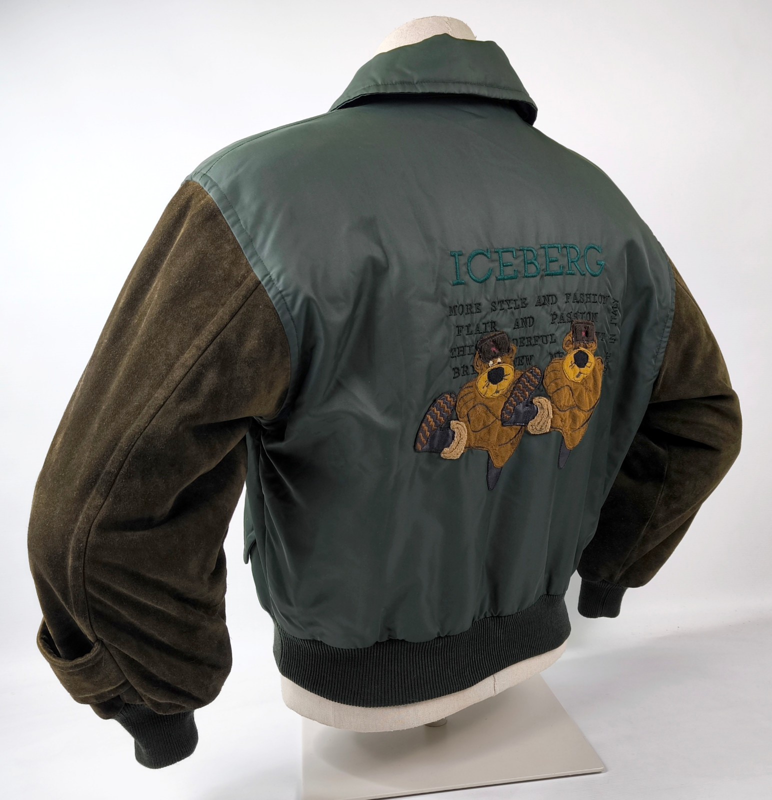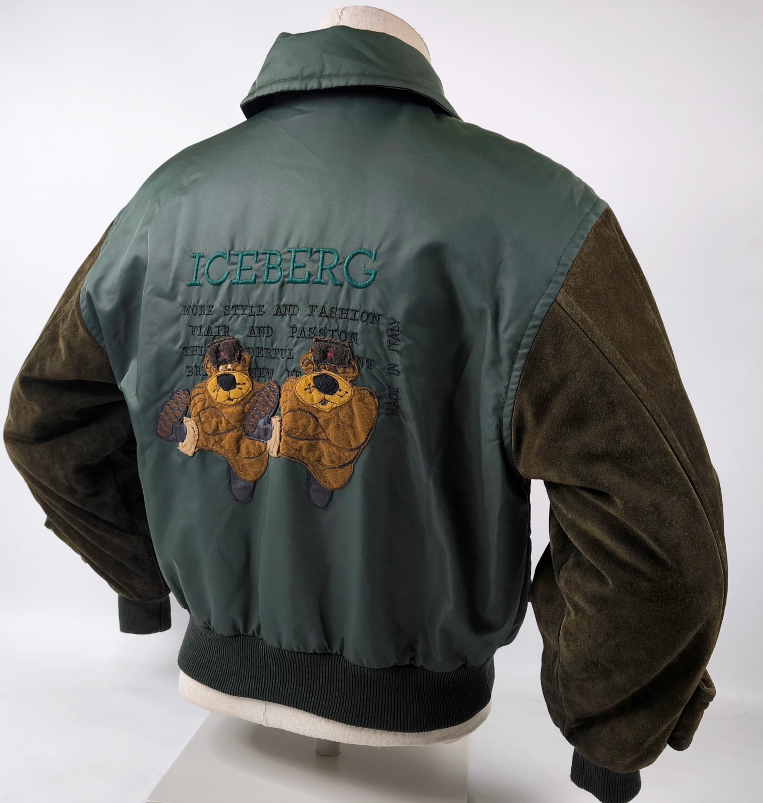 Preisvorschlag für Iceberg Jacke Bären Gr. S/M Leder Wildleder Nylon Mix Italy vintage 90s
