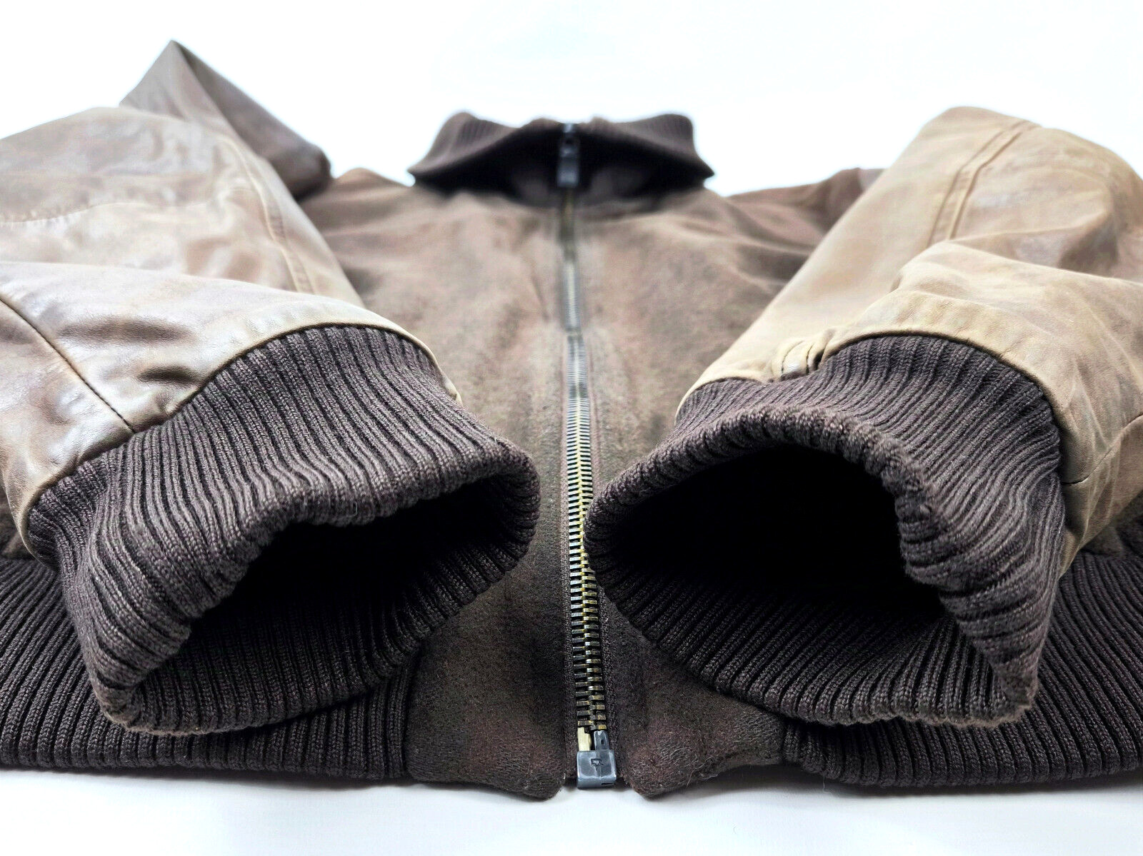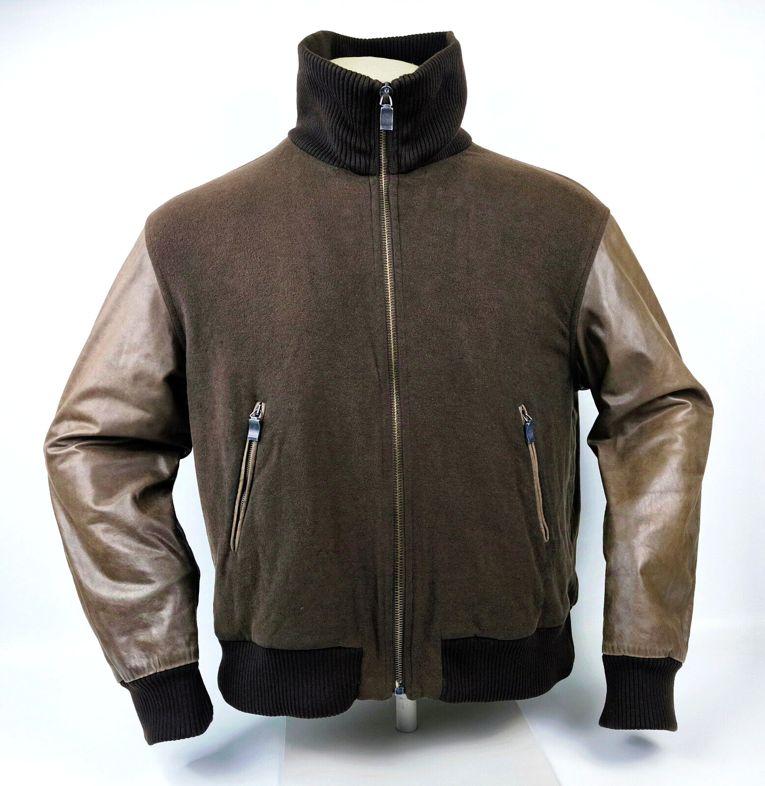 ________________________________________Marke: ChevignonGröße: L (M)Farbe: braun / braun meliert Zustand: sehr gut________________________________________Beschreibung:Die Jacke befindet sich in einem sehr guten Zustand.Es sind nur wenige und dann sehr kleine Tragespuren zu erkennen.Außenbereich Wolle innen sehr gut erhalten.Lederärmel in braun mit sehr kleinen Tragespuren und auch hier, sehr schön im Zustand.Innenfutter sehr guter Zustand.Bündchen mit leichten Tragespuren und ebenfalls, super gut erhalten.Der Hauptreißverschluß, die darüberliegende Druckknopfleiste und die Druckköpfe an den Taschen funktionieren tadellos.In der Jacke ist die Größe L angegeben. Im Vergleich mit anderen Chevignon Jacken von uns, fällt sie kleiner und fällt ganz klar aus wie eine Größe M.Die Jacke fällt recht schmal.Bitte die Maße prüfen für eine perfekte Passform.________________________________________Die ca. Maße sind wie folgt:Brustbreite von Achsel zu Achsel: 54cmÄrmellänge ab Höhe Schulter: 71cmRückenlänge inkl. Kragen und Bund: 68cm________________________________________Material lt. Innenlabel:Oberstoff Ärmel / Innenbereich: 100% Leder / 70% Wolle + 30% andere Materialien_______________________________________Pflegeanleitung:professionelle Textilreinigung