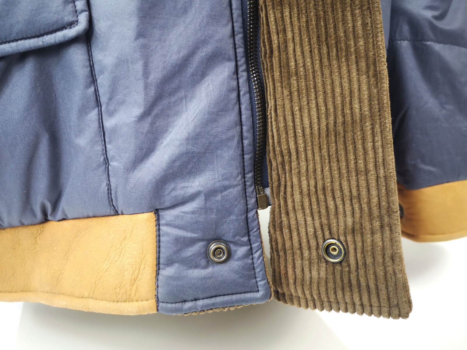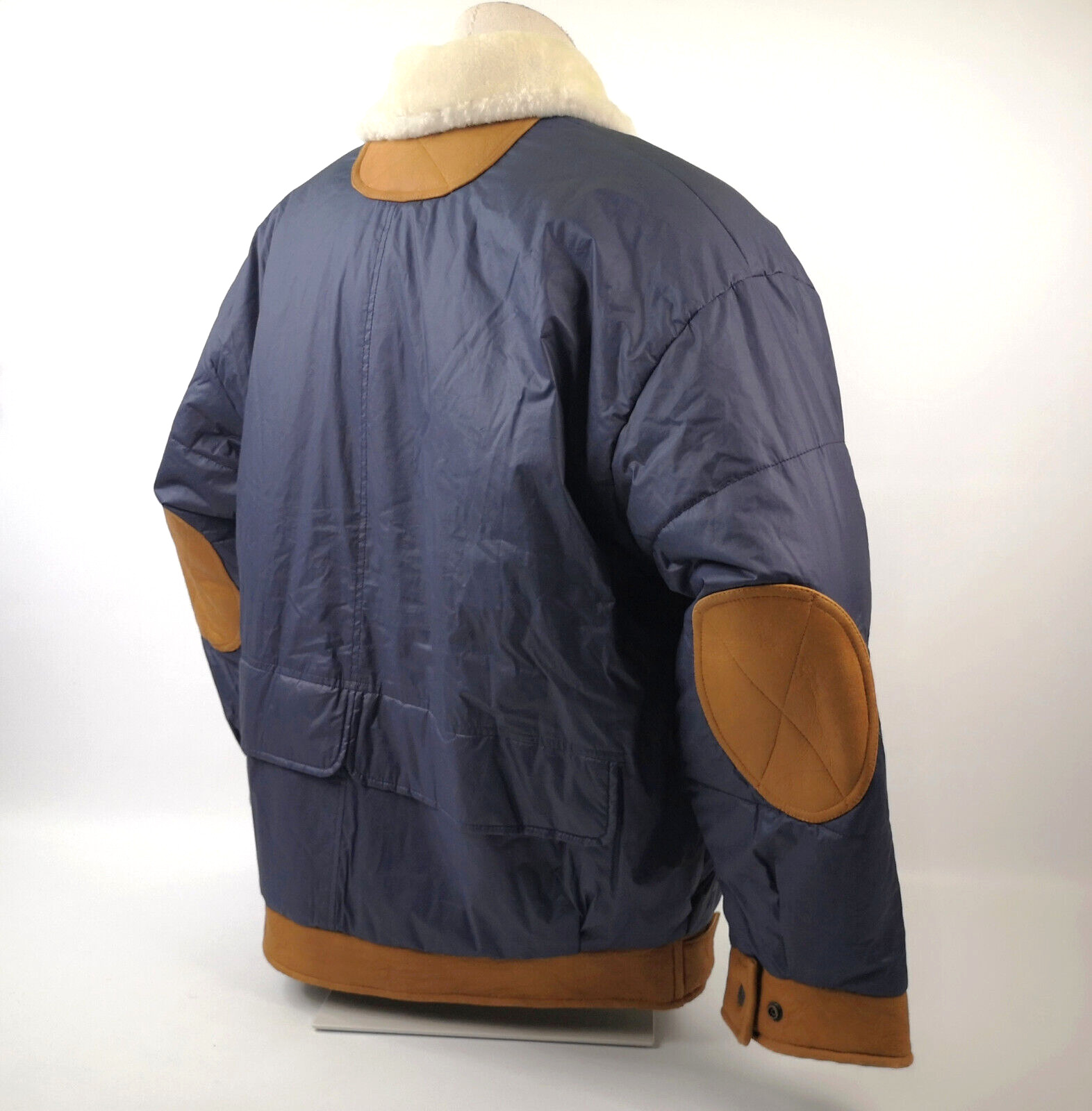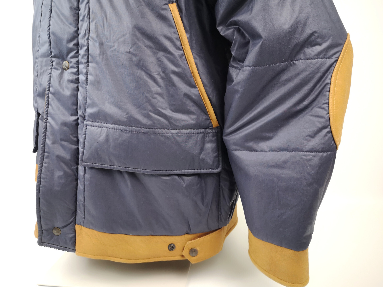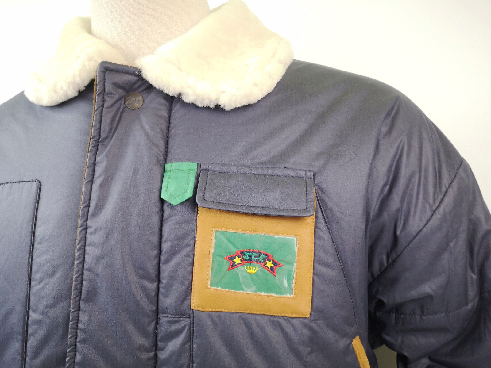 ________________________________________Marke: ChevignonFarbe: dunkelblauGröße: M Zustand: getragen_______________________________________Beschreibung:Die Jacke wurde getragen und befindet sich in einem sehr schönen Zustand. Es sind nur wenige und dann kleine Trage- und Gebrauchsspuren zu erkennen.Außen mit wenigen und kleinen Trage- und Gebrauchsspuren und super gut erhalten.Innenfutter im sehr guten Zustand.Ebenfalls die Bündchen, ganz leichte Trage- und Gebrauchsspuren und super gut erhalten.Reißverschluß funktioniert tadellos. Zwei Außen- und eine Innentasche.Lammfell / Lammleder im Kragenbereich.Lederabsetzung in schwarz an den Schultern und den Außentaschen mit wunderschöner leichter Patina.Typisch der Schnitte der damaligen Zeit, ist die Jacke im Brustbereich breit und vom Rücken her recht kurz geschnitten.Die Größe ist keine Größe zu finden. Im Vergleich mit anderen Chevignon Jacken von uns, fällt sie wie eine Größe M.Bitte die Maße prüfen für eine perfekte Passform._____________________________________Die ca. Maße sind wie folgt:Brustbreite von Achsel zu Achsel: 63cmÄrmellänge ab Höhe Schulter: 68cmRückenlänge inkl. Kragen und Bund: 67cm_______________________________________Material:Außen+Futter / Kragen / Schultern: 100% Nylon - 100% Baumwolle / 100% Lammleder / 100% Leder (Rind)_______________________________________Pflegeanleitung:professionelle Textilreinigung