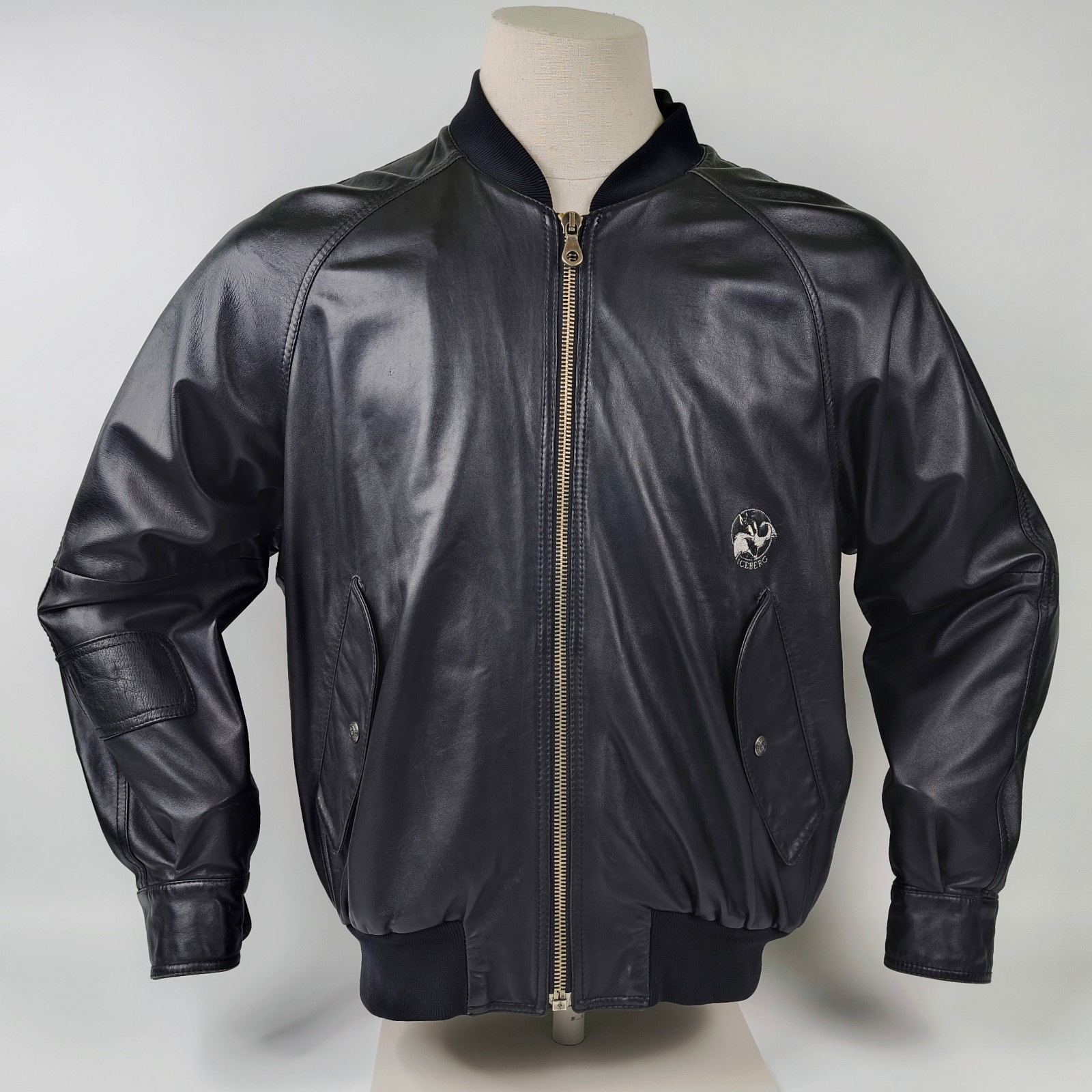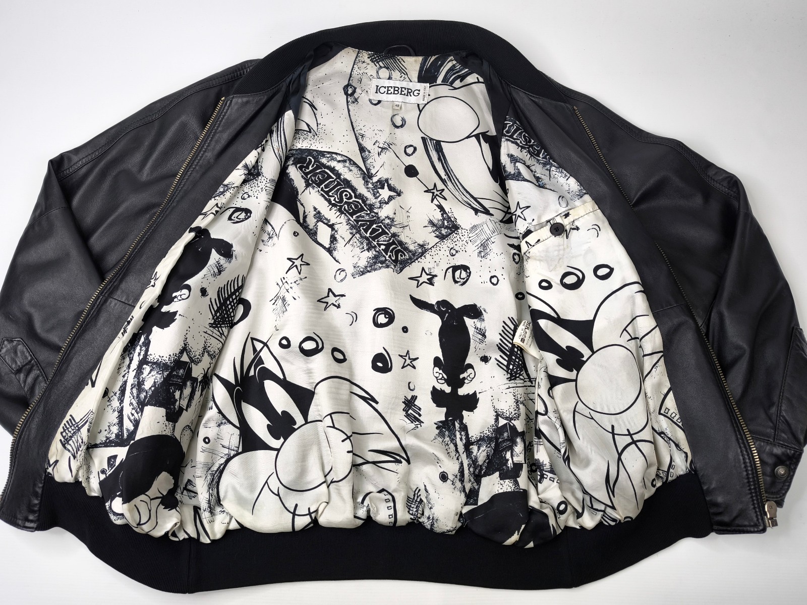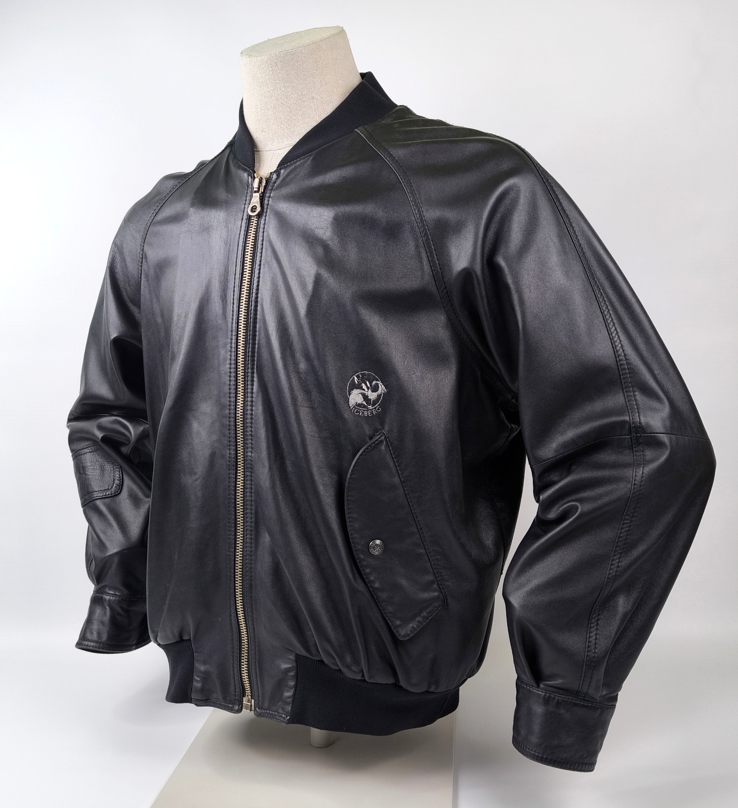 Preisvorschlag für Iceberg Lederjacke Kater Sylvester schwarz Gr. 48 (M) Italy vintage 90s
