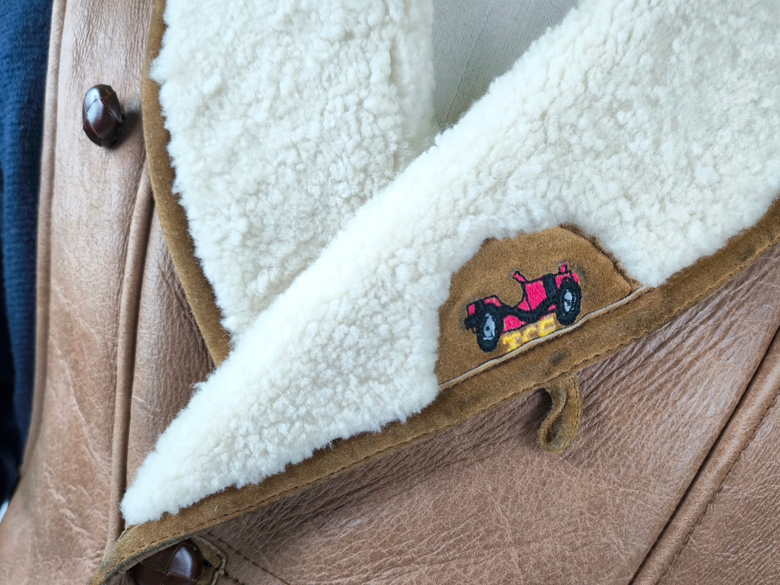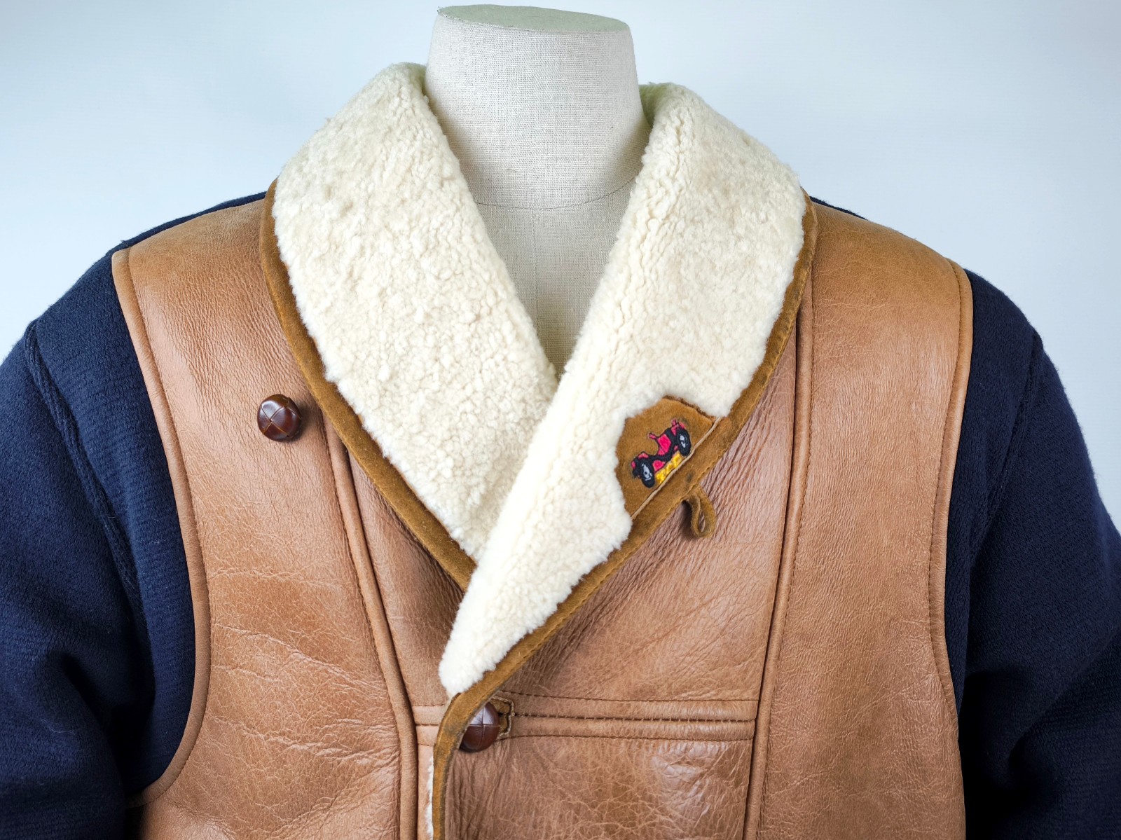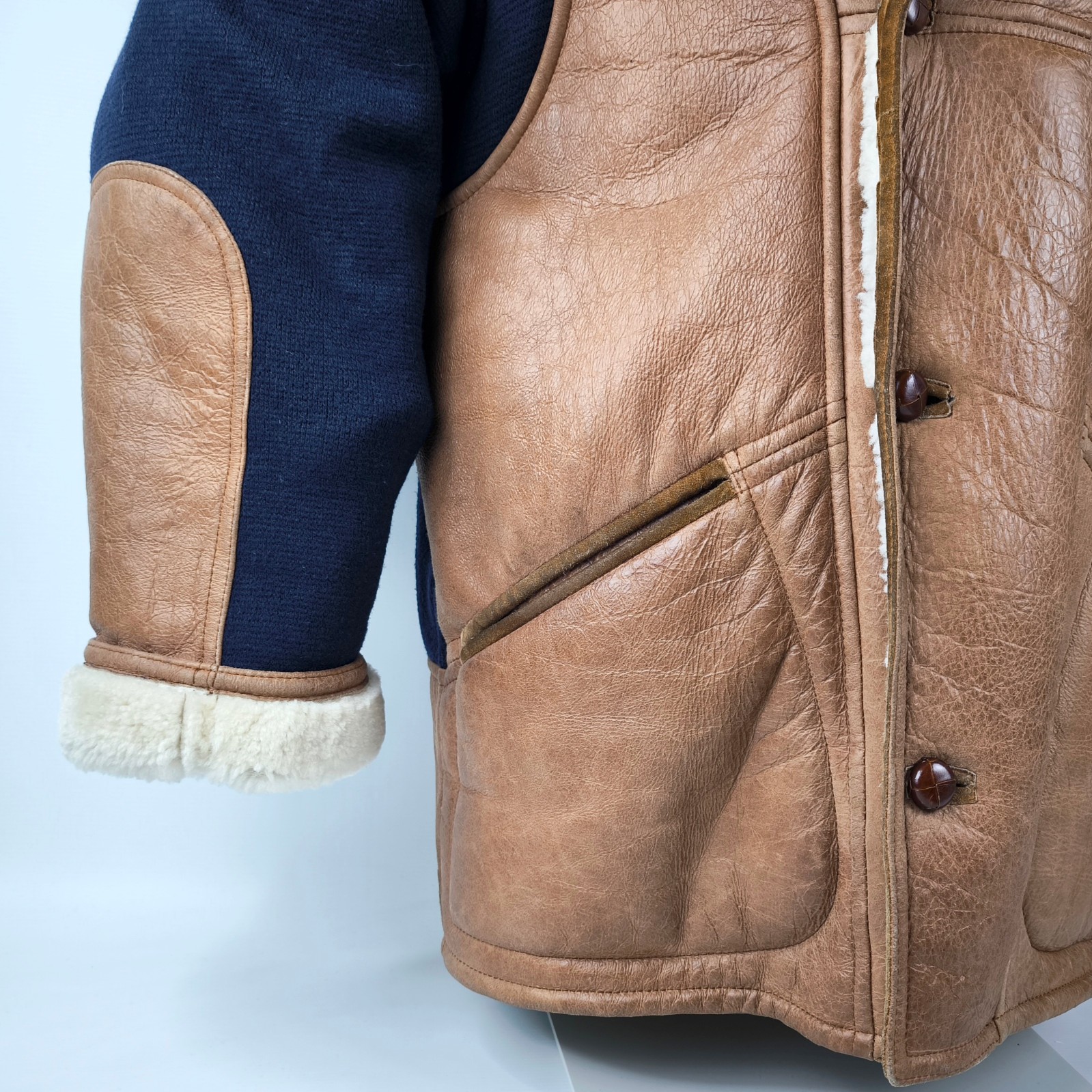 ________________________________________Marke: ChevignonFarbe: dunkelblauGröße: M Zustand: getragen_______________________________________Beschreibung:Die Jacke wurde getragen und befindet sich in einem sehr schönen Zustand. Es sind nur wenige und dann kleine Trage- und Gebrauchsspuren zu erkennen.Außen mit wenigen und kleinen Trage- und Gebrauchsspuren und super gut erhalten.Innenfutter im sehr guten Zustand.Ebenfalls die Bündchen, ganz leichte Trage- und Gebrauchsspuren und super gut erhalten.Reißverschluß funktioniert tadellos. Zwei Außen- und eine Innentasche.Lammfell / Lammleder im Kragenbereich.Lederabsetzung in schwarz an den Schultern und den Außentaschen mit wunderschöner leichter Patina.Typisch der Schnitte der damaligen Zeit, ist die Jacke im Brustbereich breit und vom Rücken her recht kurz geschnitten.Die Größe ist keine Größe zu finden. Im Vergleich mit anderen Chevignon Jacken von uns, fällt sie wie eine Größe M.Bitte die Maße prüfen für eine perfekte Passform._____________________________________Die ca. Maße sind wie folgt:Brustbreite von Achsel zu Achsel: 63cmÄrmellänge ab Höhe Schulter: 68cmRückenlänge inkl. Kragen und Bund: 67cm_______________________________________Material:Außen+Futter / Kragen / Schultern: 100% Nylon - 100% Baumwolle / 100% Lammleder / 100% Leder (Rind)_______________________________________Pflegeanleitung:professionelle Textilreinigung