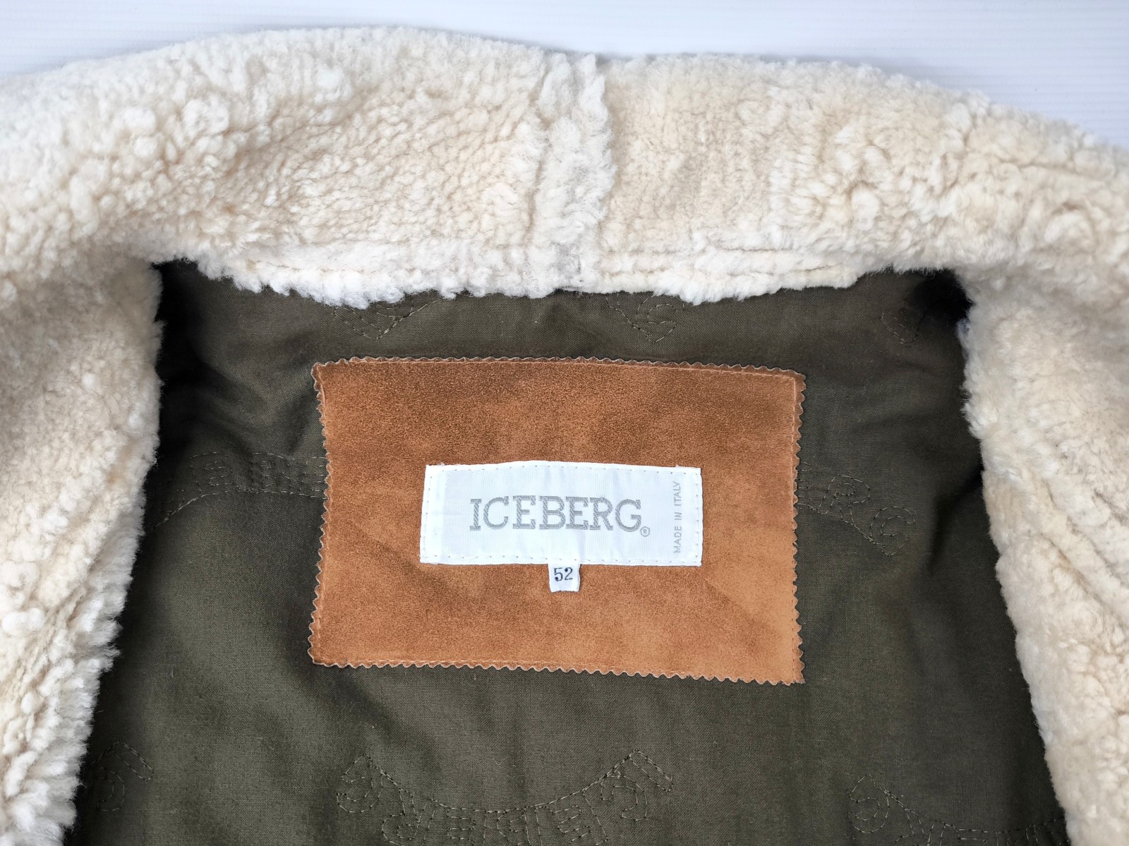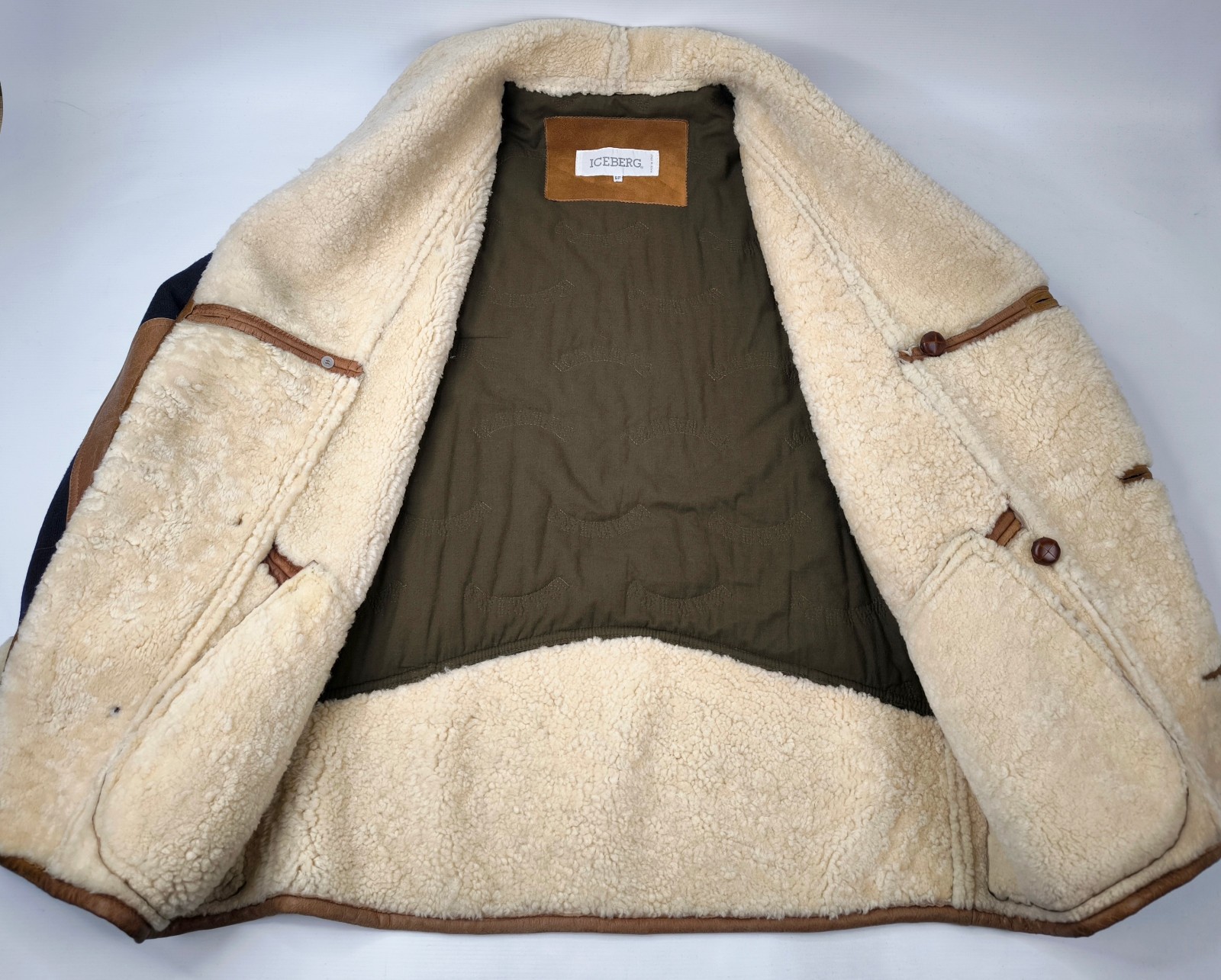 _______________________________________Marke: IcebergGröße: LFarbe: braun / grün Zustand: sehr gut_______________________________________Beschreibung:Die Jacke / der Parka befindet sich in einem sehr guten Zustand mit nur wenigen und kleinen Tragespuren.Außen am Lammleder mit leichter und wunderschöner Patina und sehr schön erhalten.Die Außenärmel sind im Innenbereich noch zusätzlich noch mit Wildleder verarbeitet.Innenfutter sehr gut im Zustand.Eine der teuersten Iceberg Modelle der 1990er Jahre im super schönen Zustand !In der Jacke steht keine Größe.Im Vergleich mit ähnlichen Iceberg Jacken / Parka von uns, fällt sie wie eine Größe L. Bitte die Maße prüfen für eine perfekte Passform._______________________________________Die ca. Maße sind wie folgt: Brustbreite von Achsel zu Achsel: 61cm Ärmellänge ab Höhe Schulter: 70cm Rückenlänge inkl. Kragen und Bund: 85cm _______________________________________Material lt. Etikett: Oberstoff:39% Lammleder, 33% Baumwolle, 24% Leder, 4% andere MaterialienInnenfutter:100% ViscoseFüllung / Wattierung:100% Polyester_______________________________________Pflegeanleitung: professionelle Textilreinigung