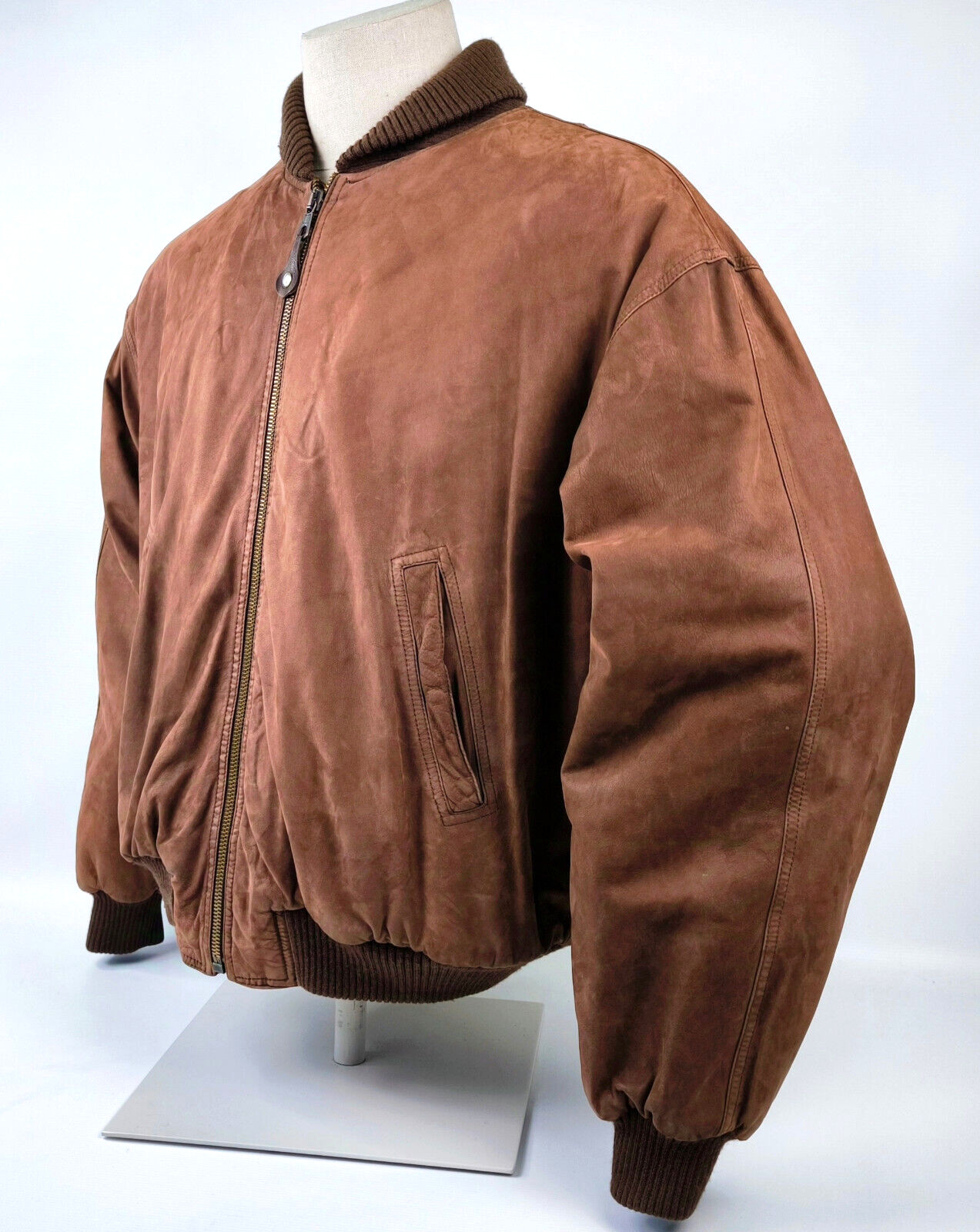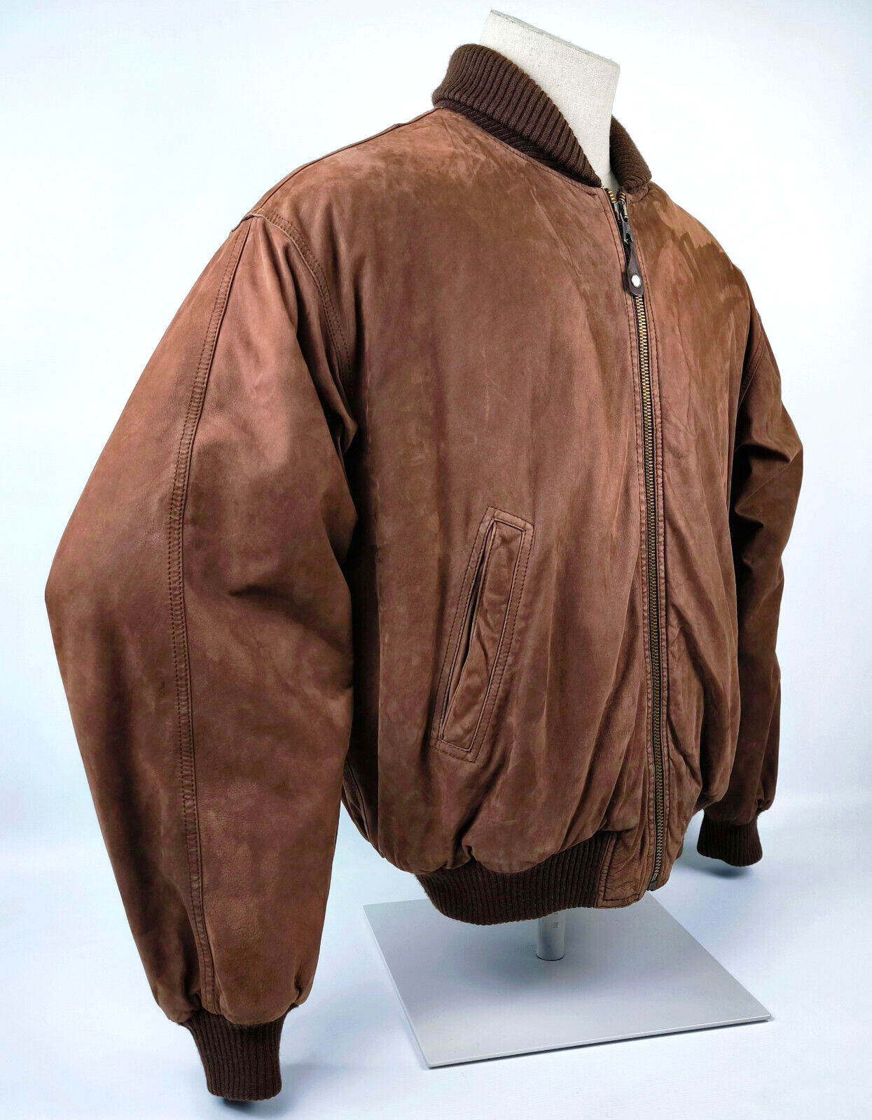 ________________________________________Marke: ChevignonGröße: XXL (L/XL)Farbe: braun Zustand: getragen_______________________________________Beschreibung:Die Jacke wurde getragen und befindet sich in einem guten Zustand.Leder außen mit wunderschöner leichter Patina und super schön erhalten.Sehr weiches, anschmiegsames und offenporiges Leder. Absolut atmungsaktiv.Innenfutter mit leichten Trage- und Gebrauchsspuren und ebenfalls absolut gut erhalten.Innenfutter an den Bündchen mit deutlicheren Trage- und Gebauchsspuren aber unsichtbar beim Tragen.Reißverschluß und Druckknöpfe an den Taschen funktionieren tadellos.Ein Chevignon Pilot´s Blouson aus den 1980er Jahren.In der Jacke ist die Größe XXL angegeben. Chevignon typisch dieser Jahrgänge, fällt auch diese Jacke kleiner aus. Im Vergleich mit ähnlichen Chevignon Lederjacken von uns, ist es hier ganz deutlich eher eine L bis kleine XL.Auch fällt sie ganz typisch der damaligen Zeit vom Rücken her recht kurz aus.Bitte die Maße prüfen für eine perfekte Passform._______________________________________Die ca. Maße sind wie folgt:Brustbreite von Achsel zu Achsel: 61cmÄrmellänge ab Höhe Schulter: 70cmRückenlänge inkl. Kragen und Bund: 66cm_______________________________________Material lt. Etikett:Außen / Innen:100% Leder / 100% Baumwolle-SatinFüllung: 100% Polyester_______________________________________Pflegeanleitung: professionelle Textilreinigung