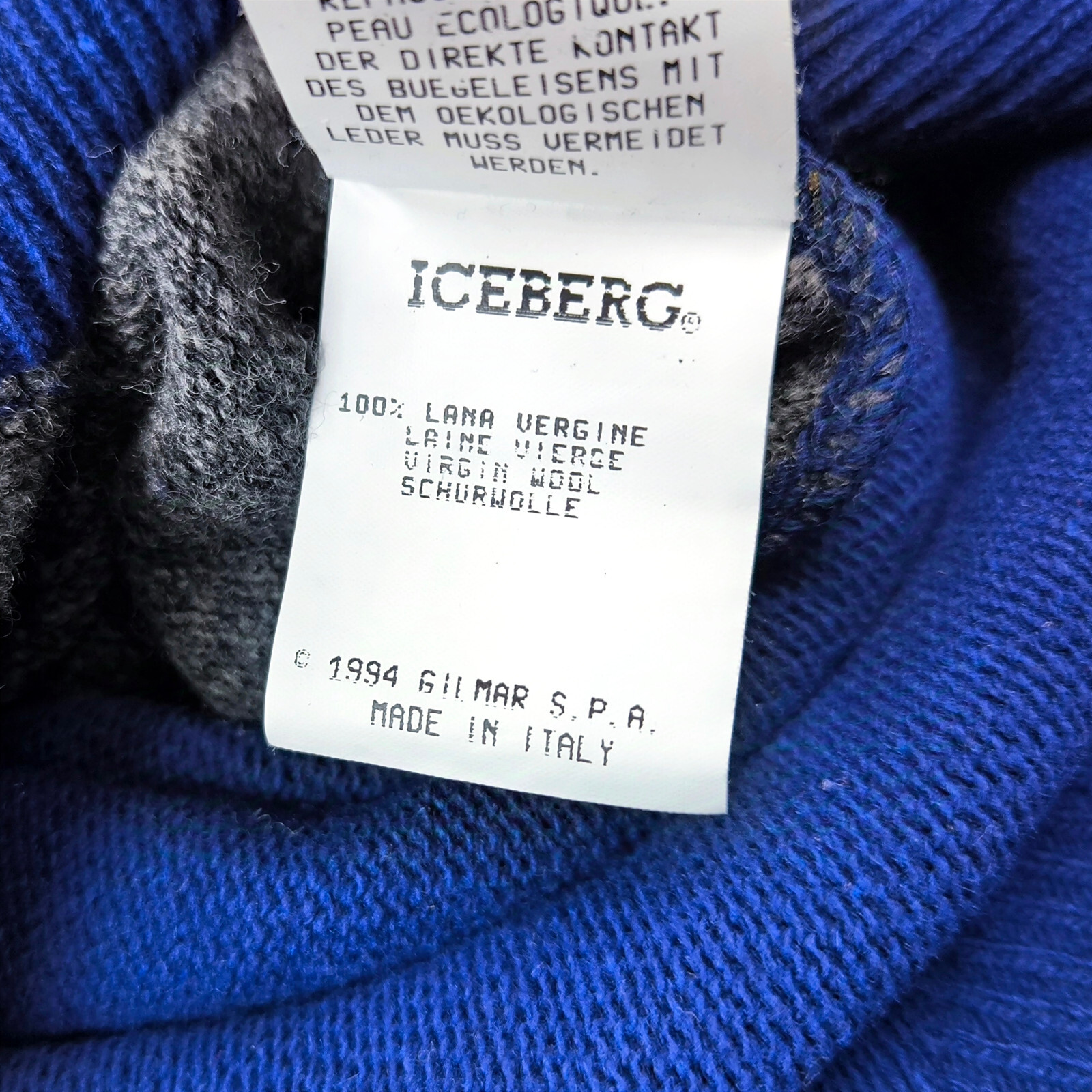 ________________________________________Marke: Iceberg (Sport Ice)Größe: MFarbe: blau meliert Zustand: sehr gut________________________________________Beschreibung:Der Pullover befindet sich in einem sehr guten Zustand.Es sind nur minimalste und kaum sichtbare Tragespuren zu erkennen.Original Sport Ice / Iceberg Pullover der frühen 1990er Jahre.Made in Italy.Im Pullover ist keine Größe angegeben. Im Vergleich mit anderen Iceberg Pullovern von uns, fällt er wie eine Größe M.Bitte die Maße prüfen für eine perfekte Passform.________________________________________Die ca. Maße sind wie folgt:Brustbreite von Achsel zu Achsel: 62cmÄrmellänge ab Höhe Schulter: 67cmRückenlänge inkl. Kragen: 63cm________________________________________Material lt. Innenetikett:Oberstoff: 55% Wolle / 28% Baumwolle / 10% Polyamid / 7% Viscose ________________________________________ Pflegeanleitung:Handwäsche kalt / professionelle Textilreinigung