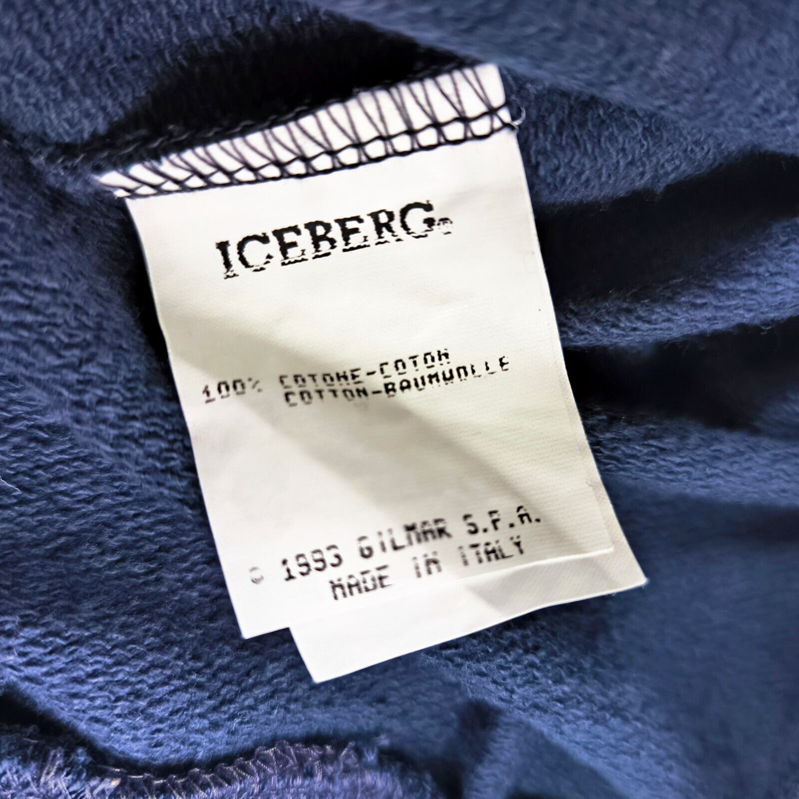 ________________________________________Marke: Iceberg Größe: M / LFarbe: dunkelblau / gelb Zustand: getragen________________________________________Beschreibung:Der Pullover wurde getragen und befindet sich in einem super schönen Zustand.Es sind nur wenige und dann kleine Trage- und Gebrauchsspuren zu erkennen.Am linken Ärmel zusätzlich mit kleinem Iceberg Logo.Made in Italy.Im Pullover ist die Größe L angegeben. Im Vergleich mit anderen Iceberg Pullovern von uns, fällt er etwas kleiner und hat eine ganz leichte Tendenz zur Größe M.Bitte die Maße prüfen für eine perfekte Passform.________________________________________Die ca. Maße sind wie folgt:Brustbreite von Achsel zu Achsel: 61cmÄrmellänge ab Höhe Schulter: 67cmRückenlänge inkl. Kragen: 68cm________________________________________Material lt. Innenlabel:Oberstoff: 85% Baumwolle / 15% ViscosePflegeanleitung:Maschinenwäsche 30 Grad